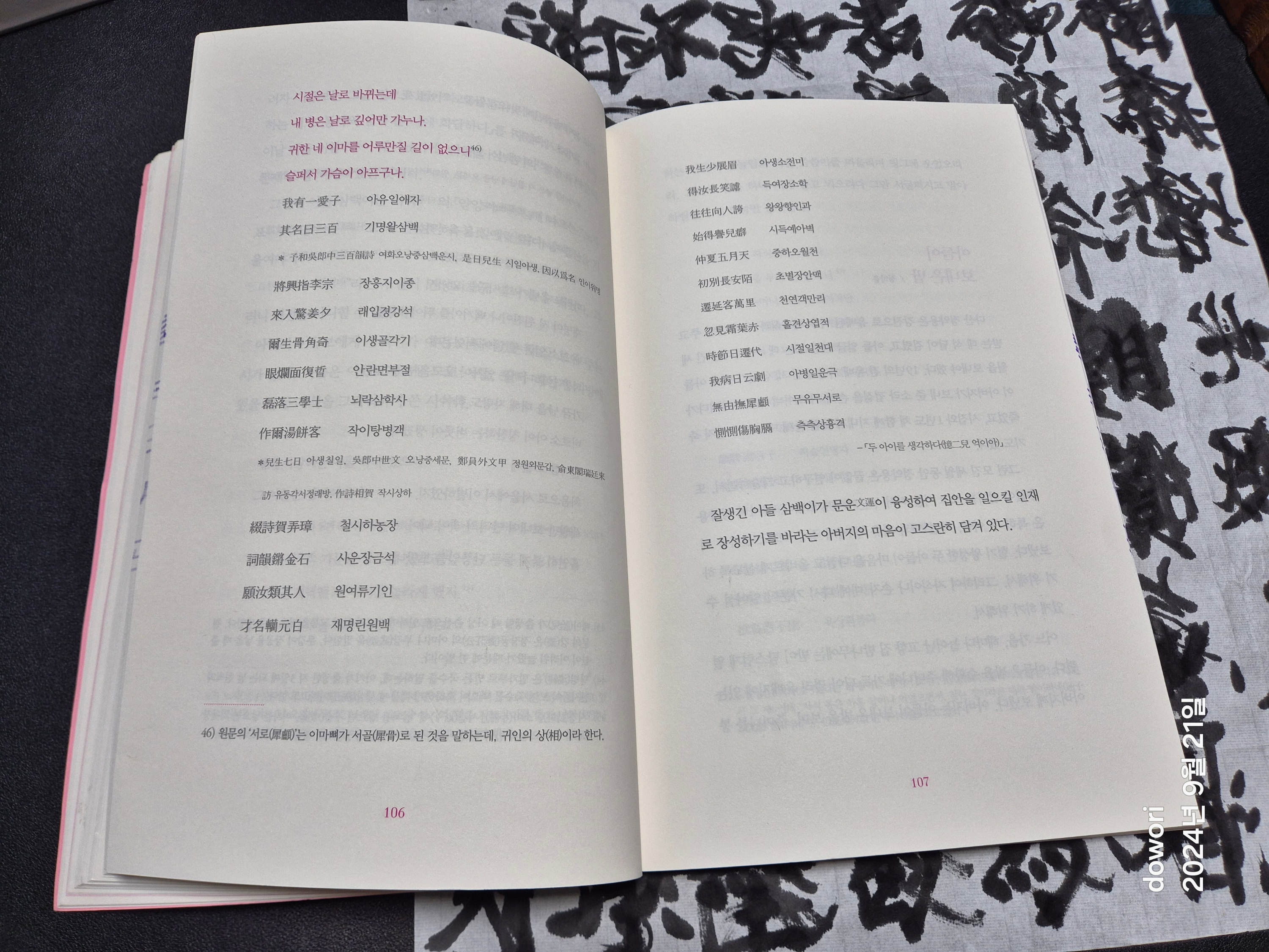 한시를 베껴쓰고는 그 해설과 뒷얘기를 읽어본다.
