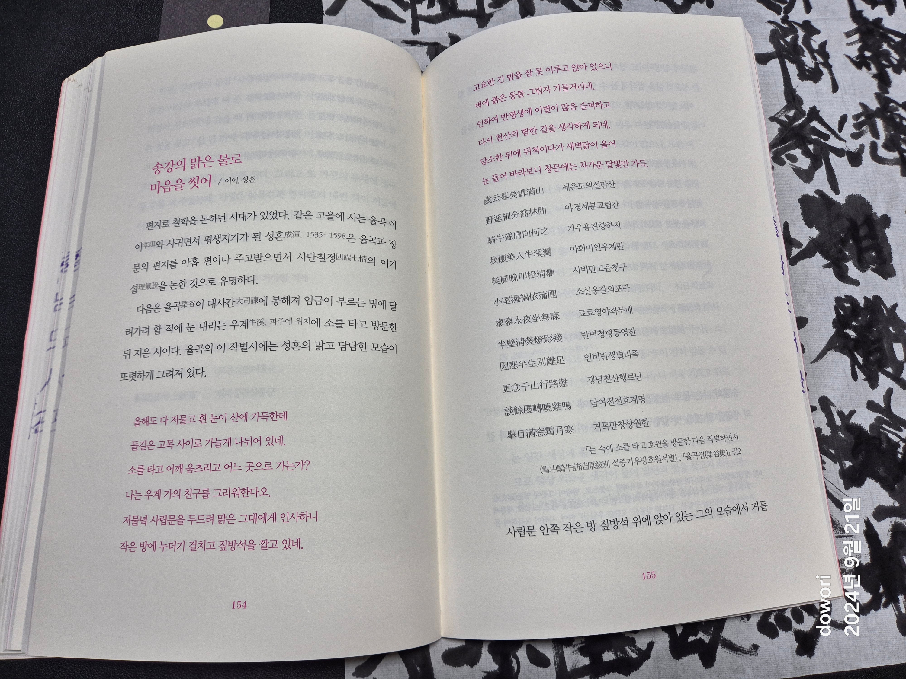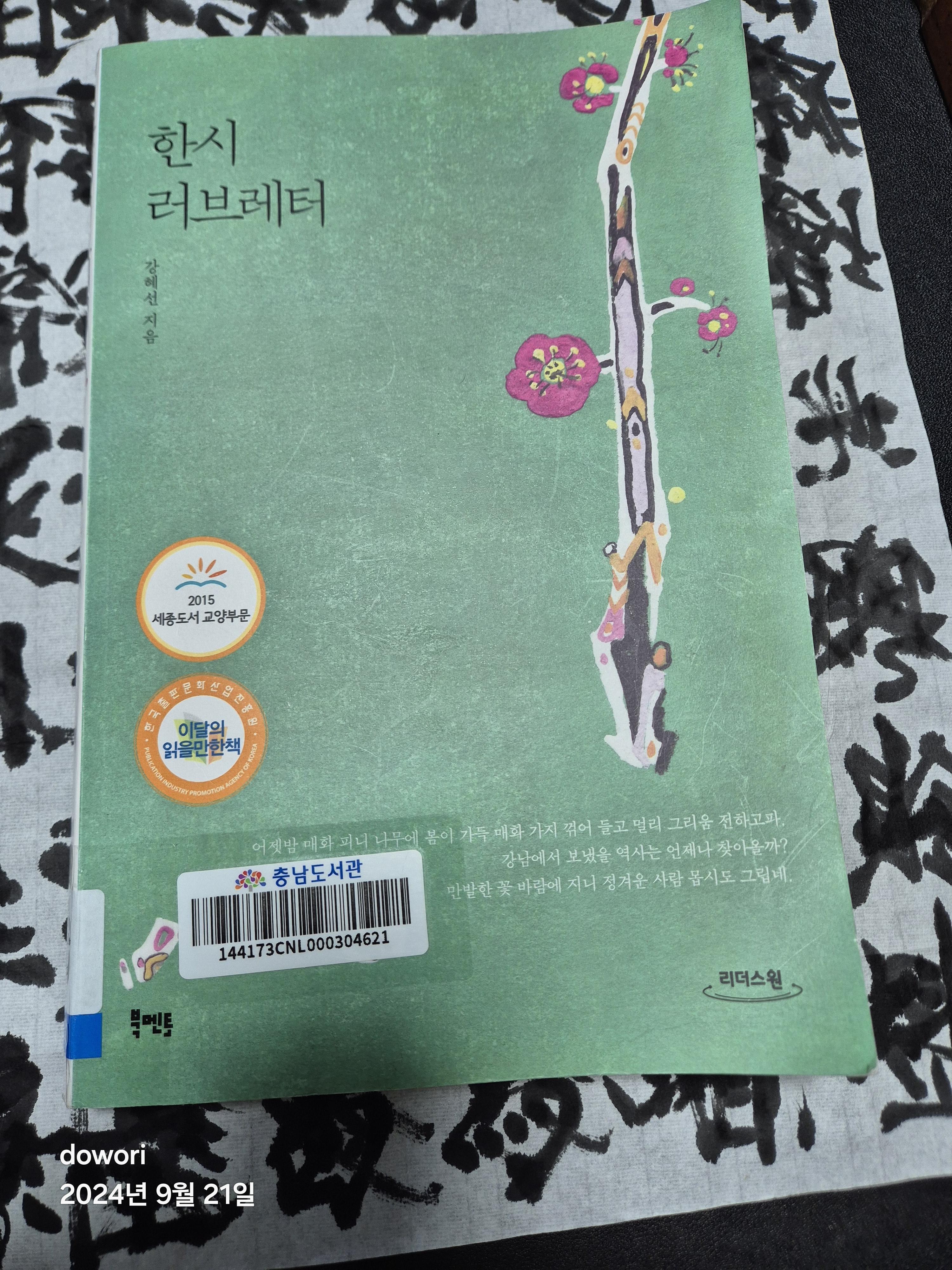 필사할 것을 찾던 중 도서관에서 빌린 강혜선이 쓴 한시 해설집.