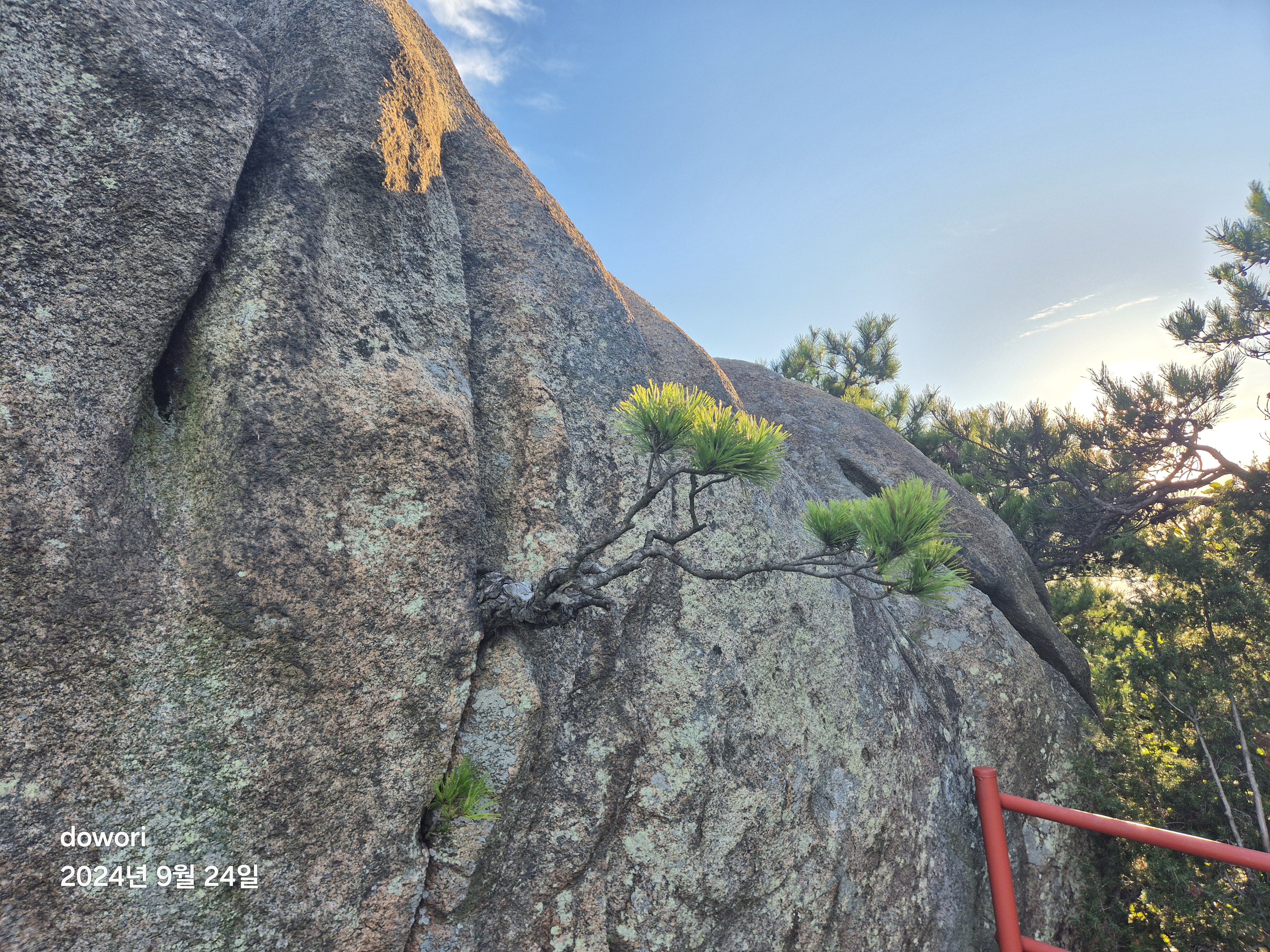 크는 소나무를 보고는 하산길로 접어든다.