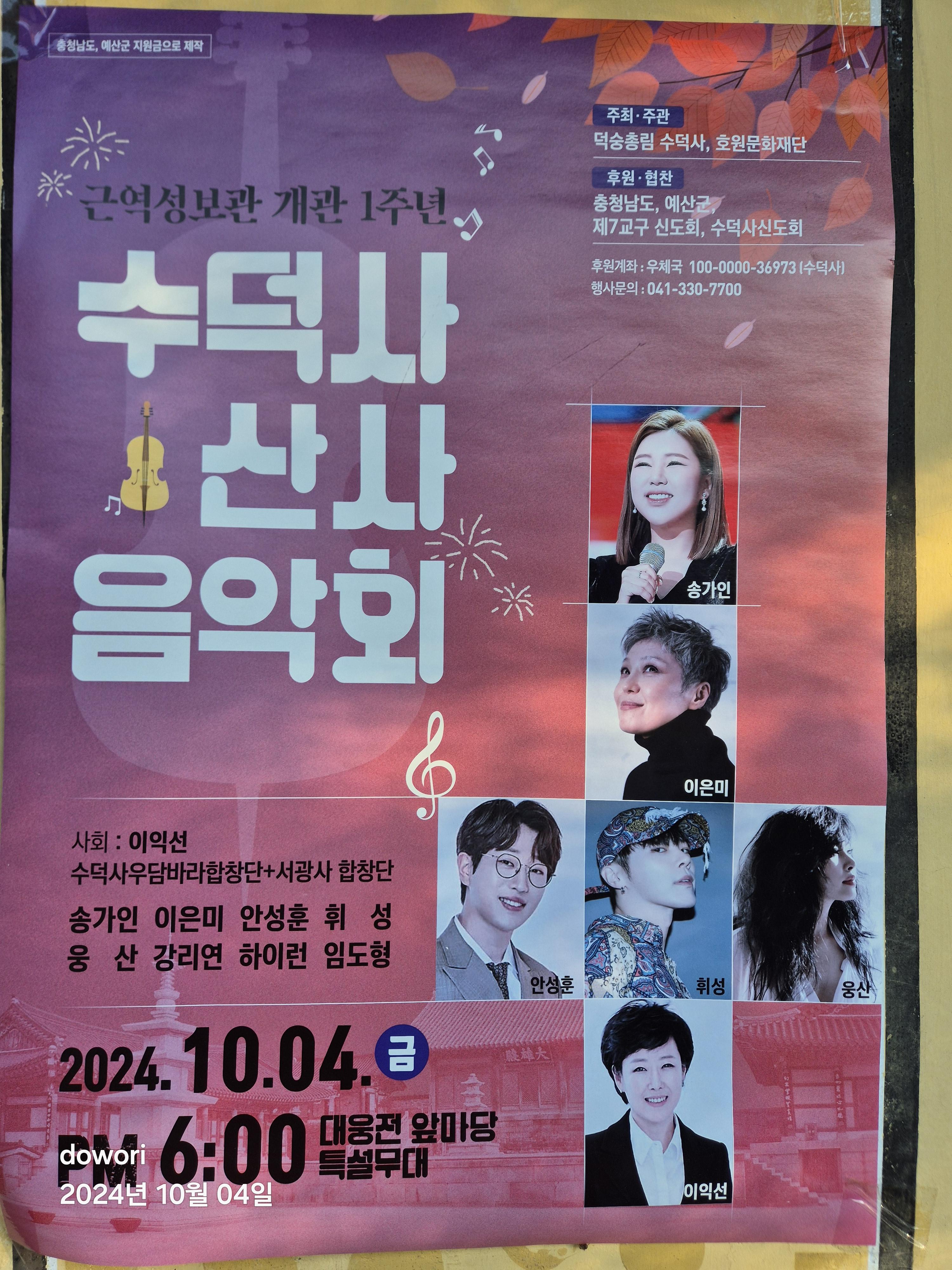 2011년 전등사 산사음악회를 보고난 후 13년만에 수덕사 산사음악회를 가 본다.
