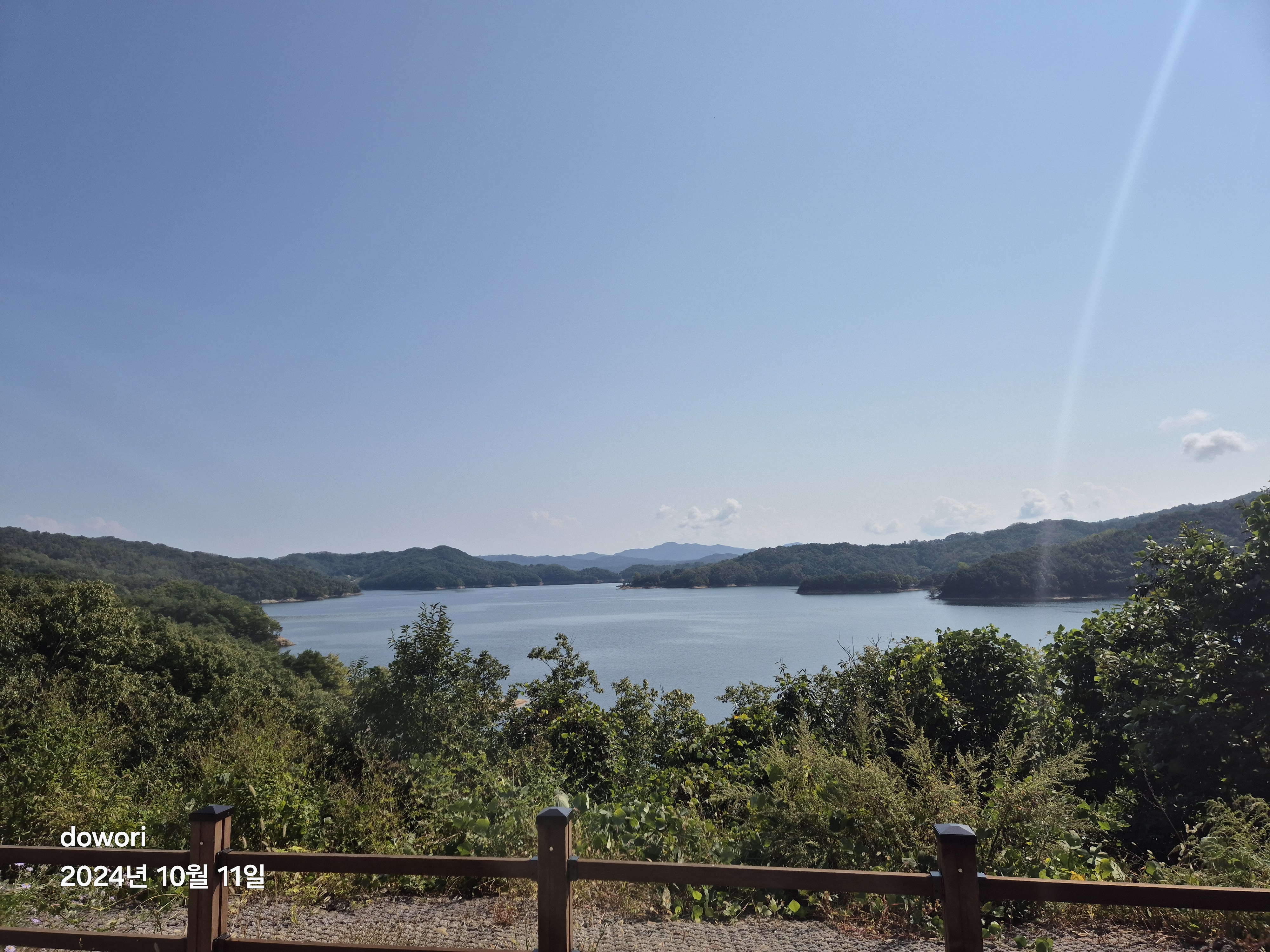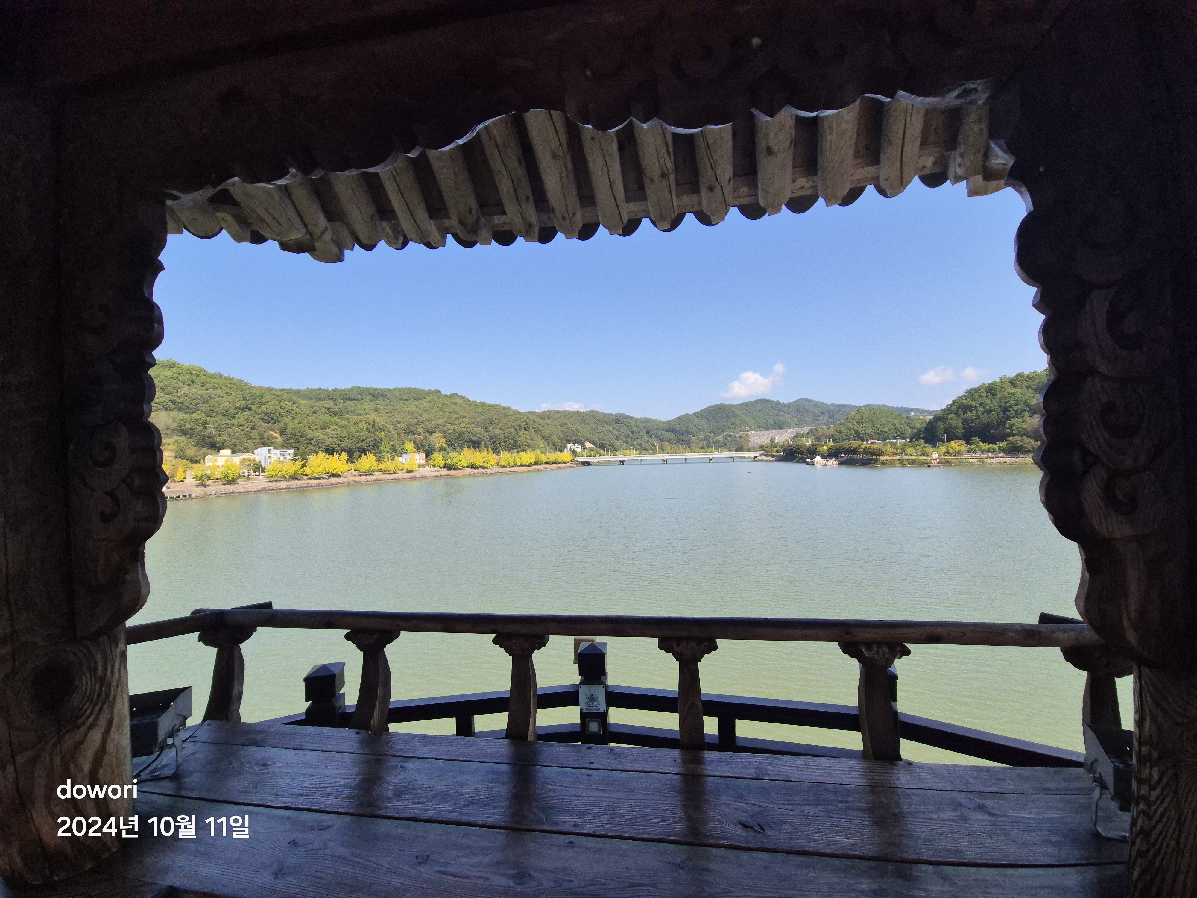 차를 몰아 댐상류를 드라이브하고 멋지게 지어진 정자에 앉아 커피한잔을