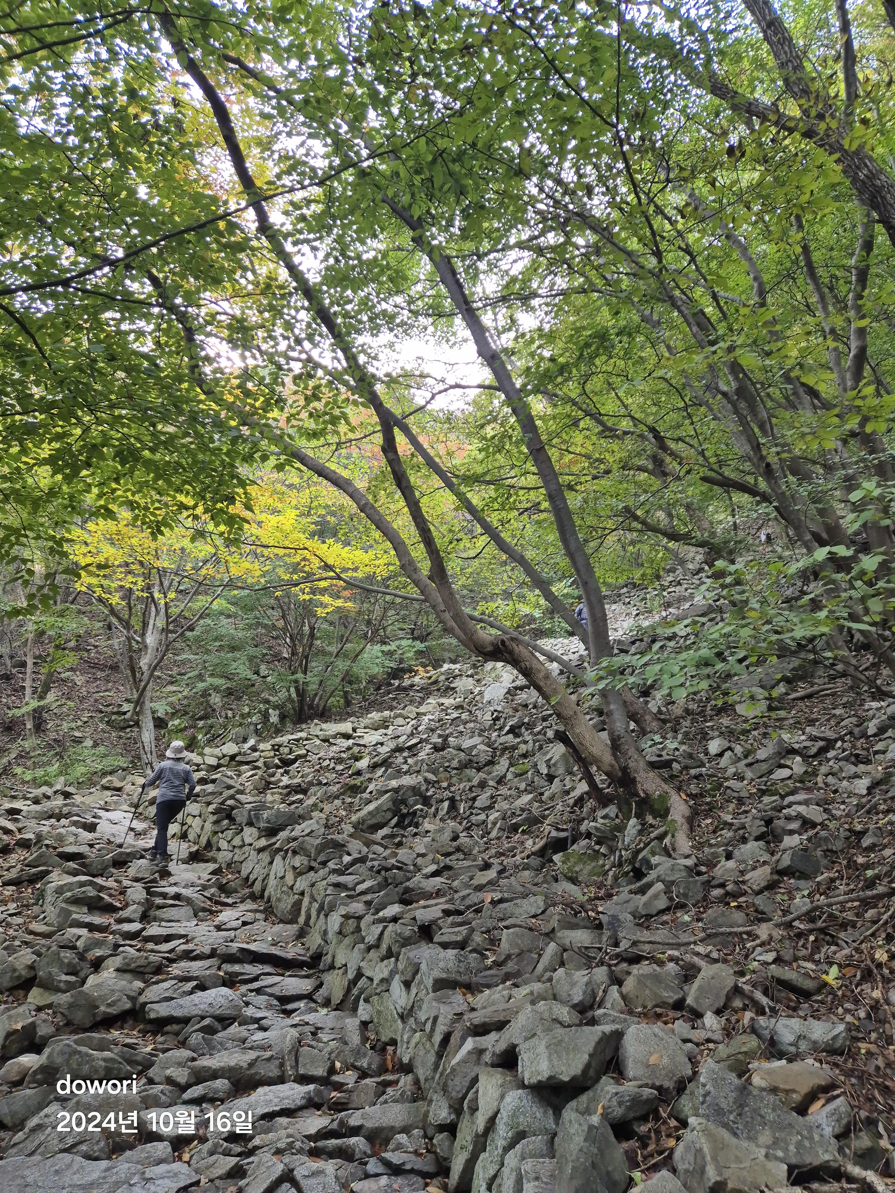 다시 남매탑코스로 하산길을 걷는데,돌길은 상당히 무릎에 충격을 준다.