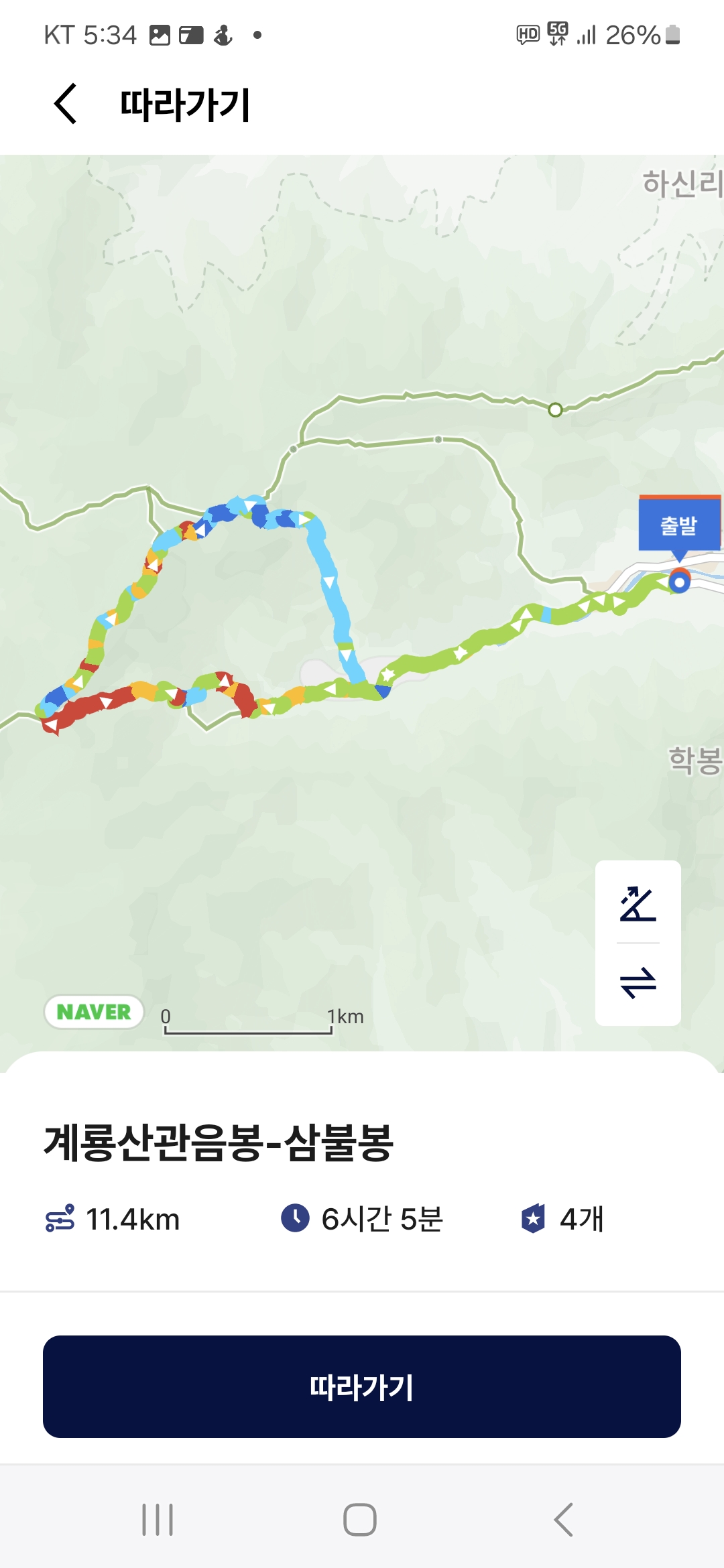 3.주차장-동학사-은선폭포-관음봉-삼불봉-남매탑-원점회귀,11.44km