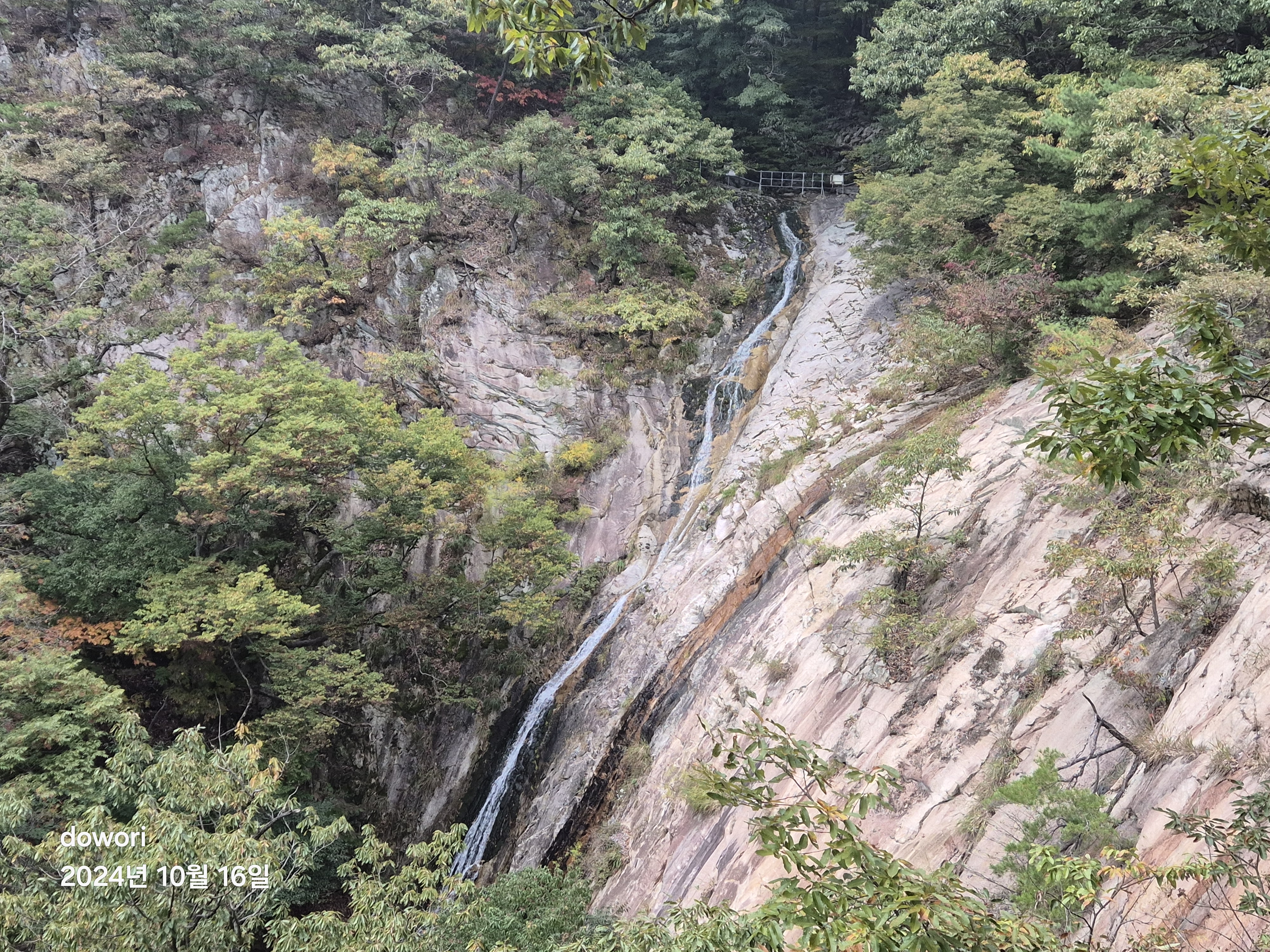 급경사를 오르니 힘도 들기는 하지만,폭포상단에 서니 하얀색갈의 폭포줄기가