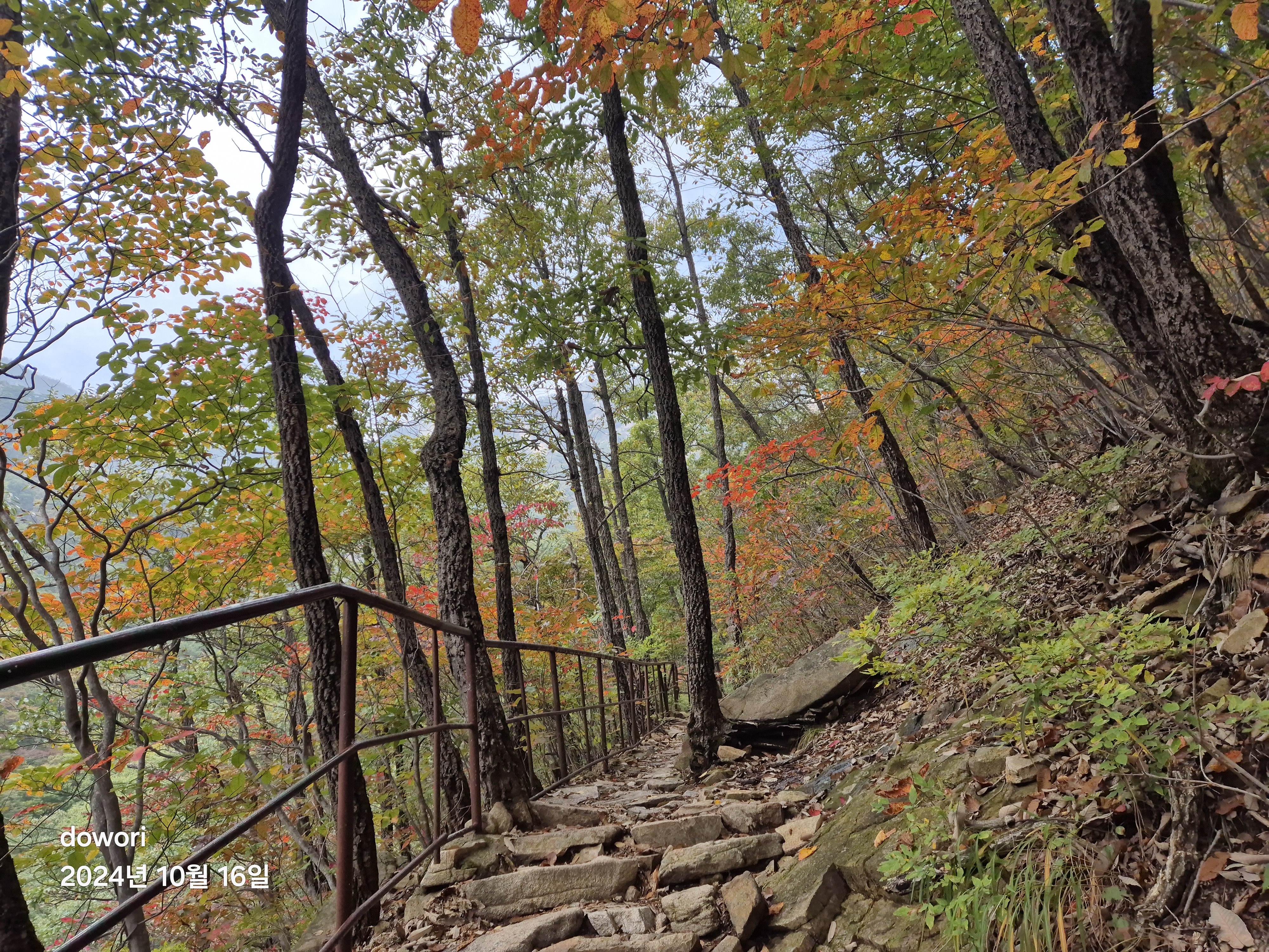 낭떠러지길을 안전하게 시설하여 여유롭게 걸을 수가 있어 좋다.