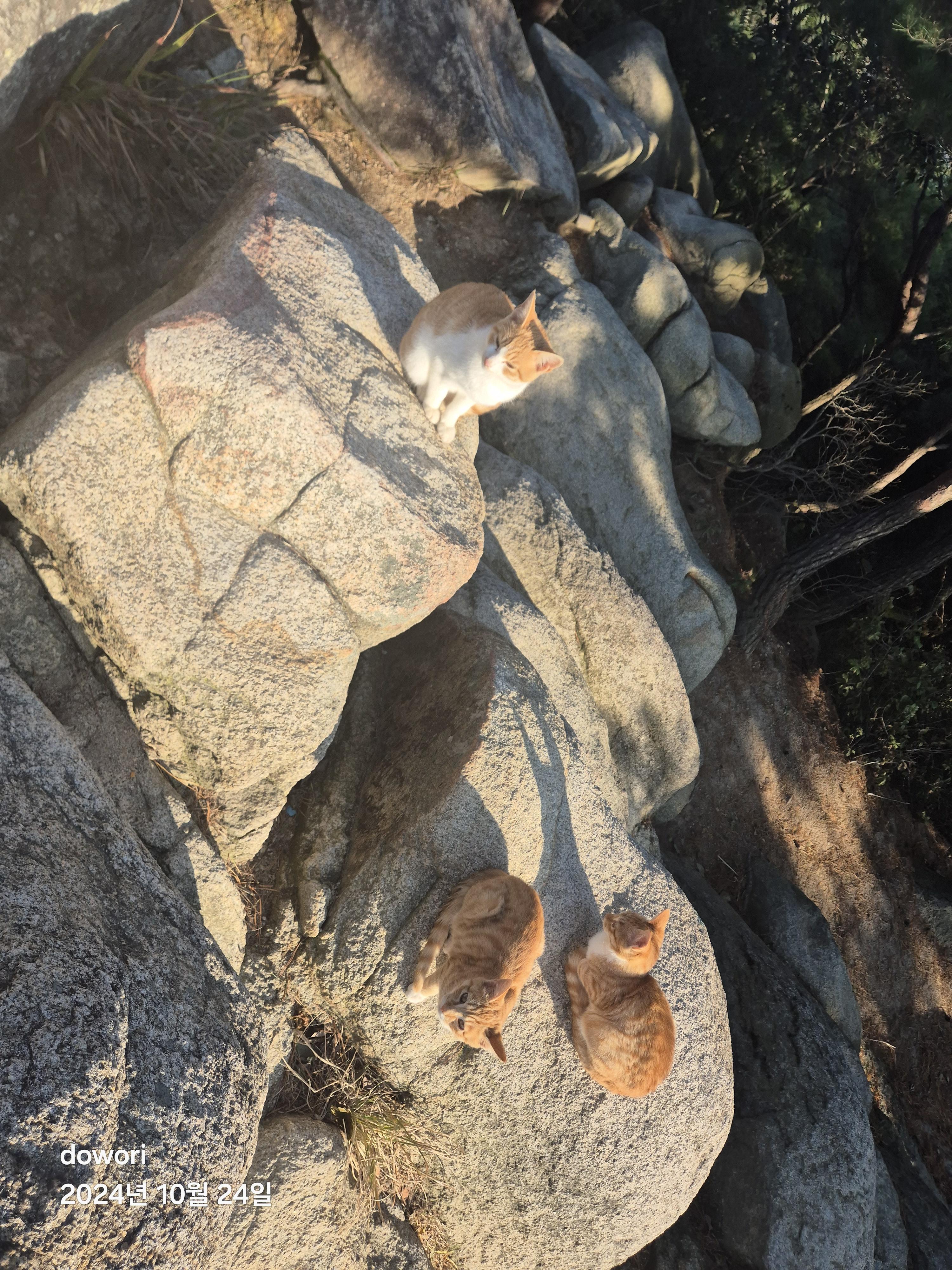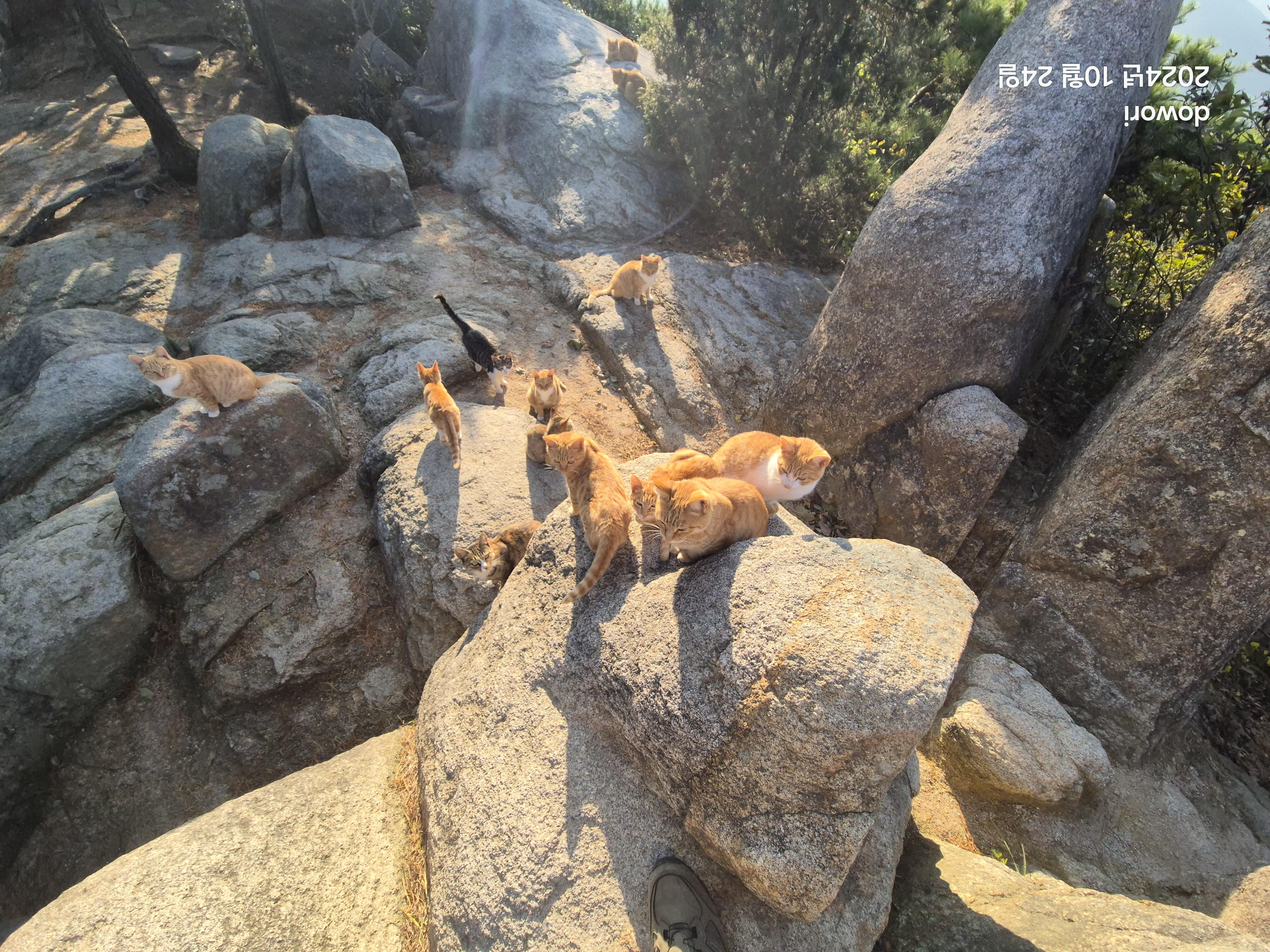 정상에 올라서니 냥이가족이 득실거리며 반겨준다.