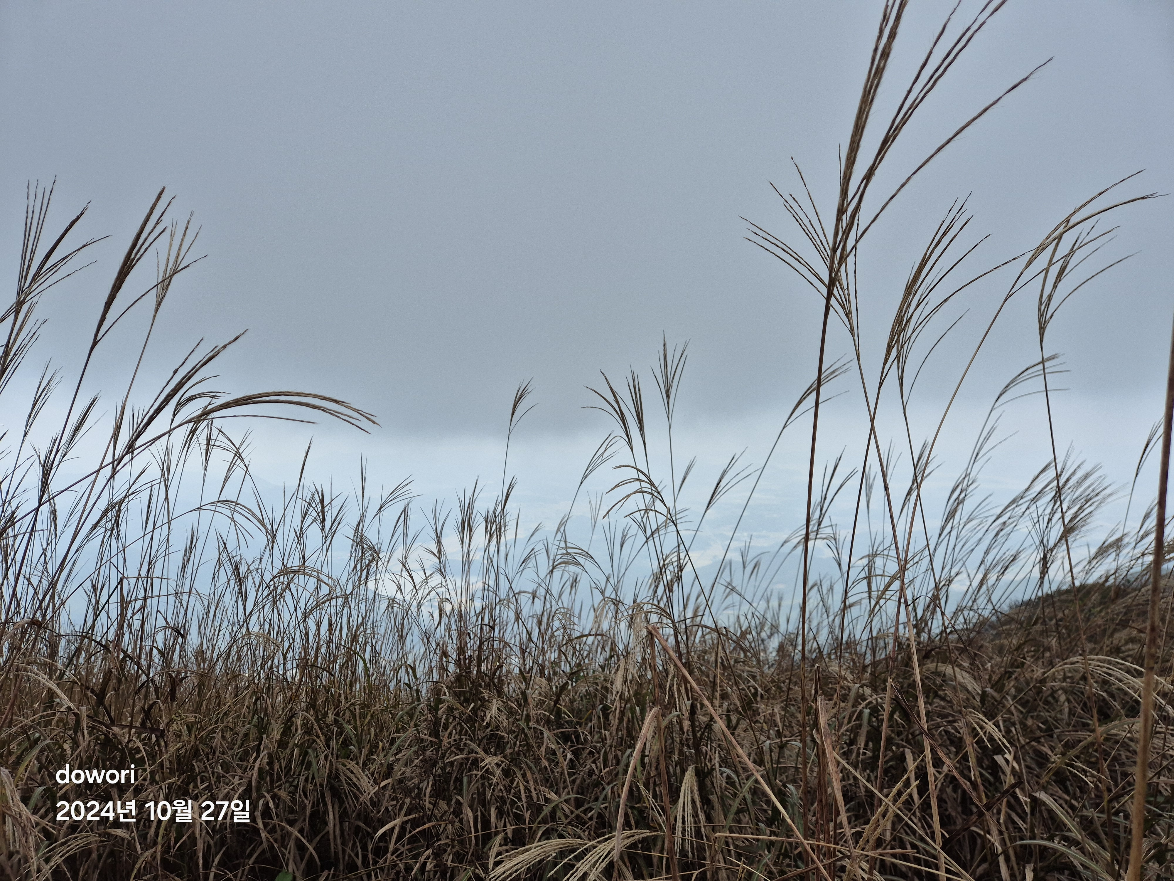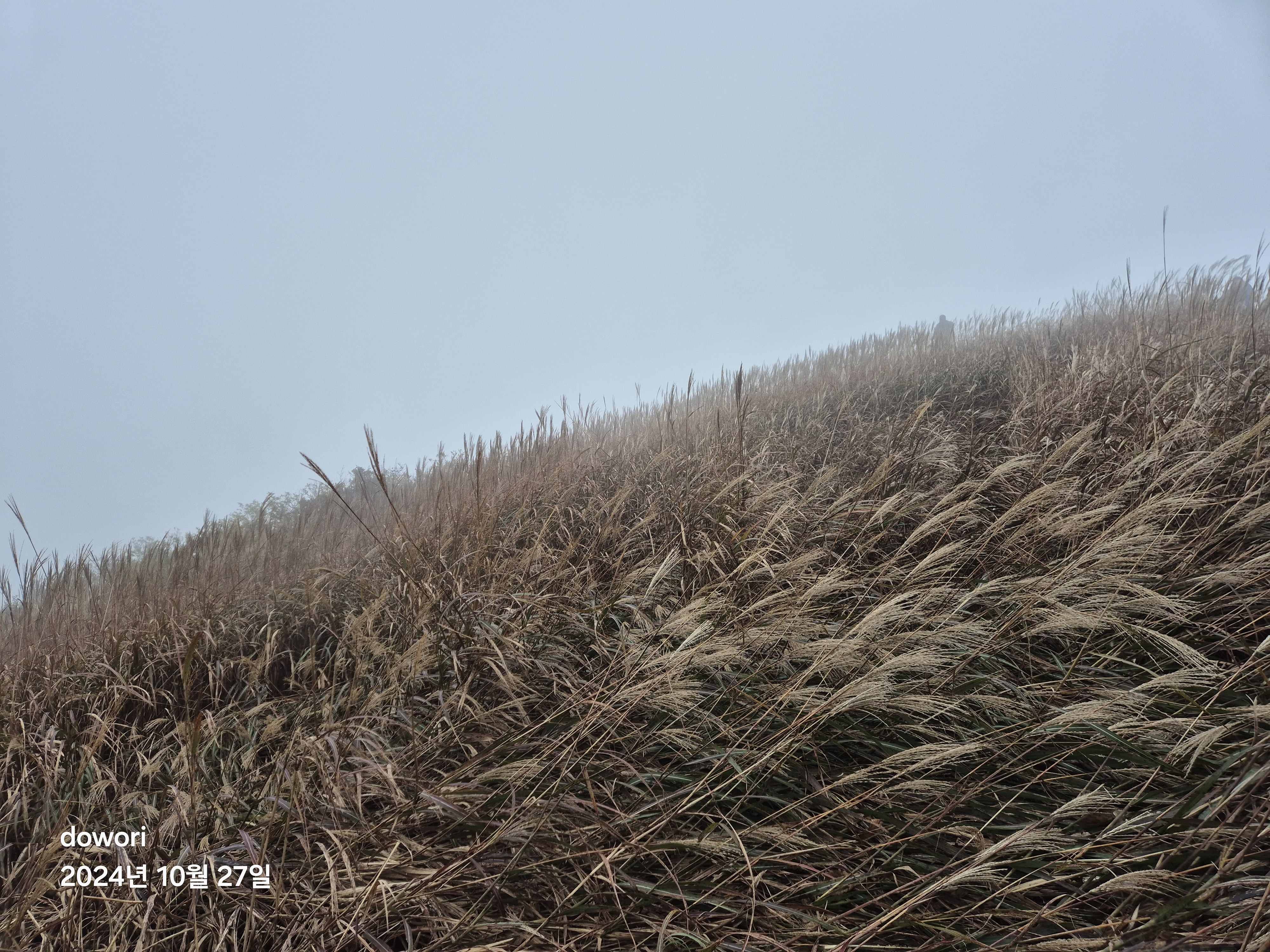 그래도 군데군데의 억새군락을 즐기며 능선길을 걷는데, 불어오는 바람에