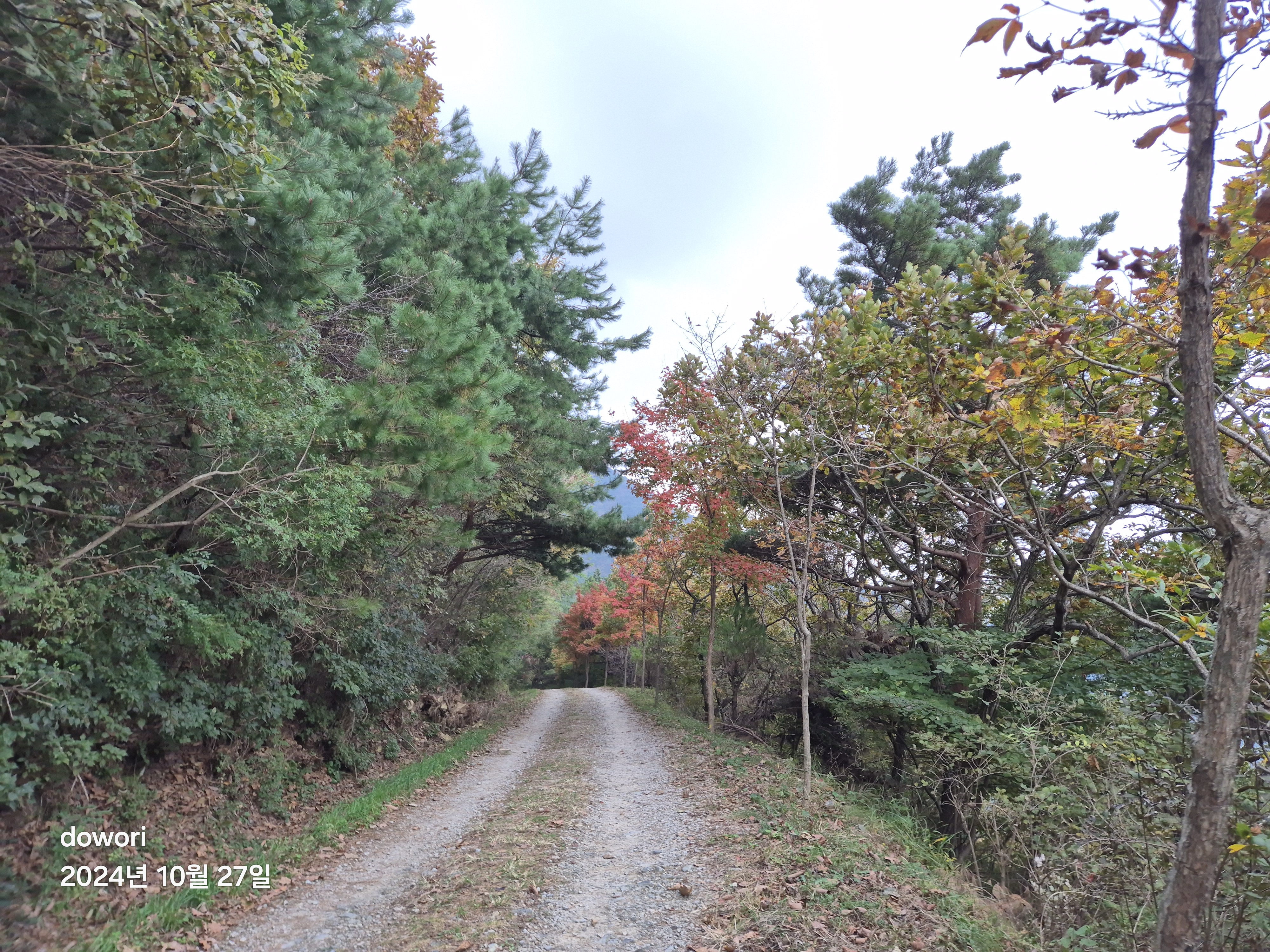 하산은 데크길을 따라 임도로 내려 조금은 우회하지만 한적한 길을 걷는다.