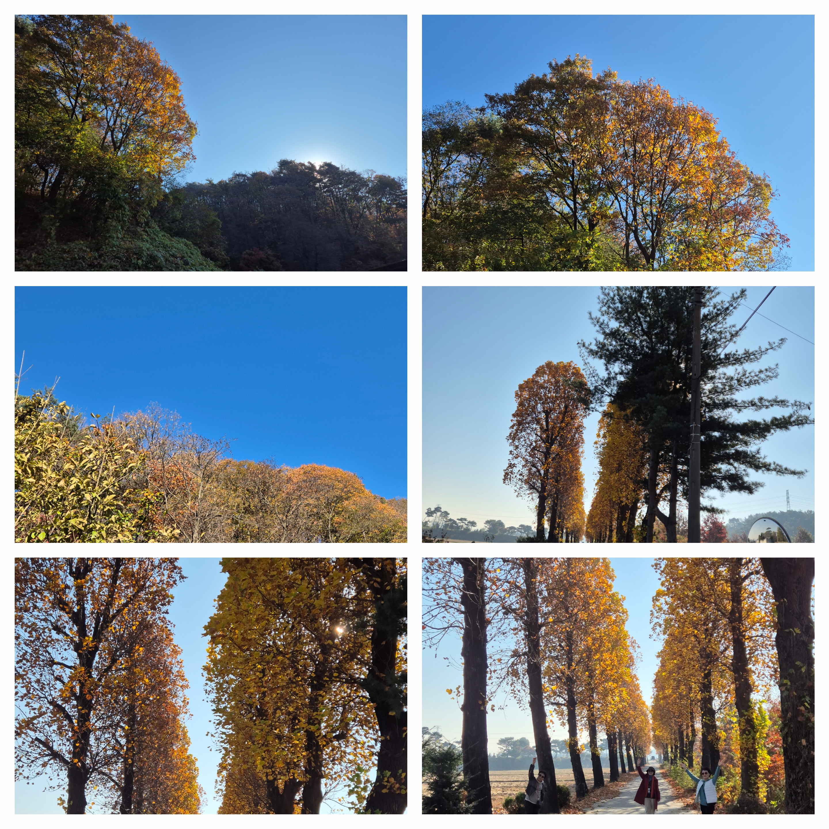 가는 도중 백곡저수지 아래의 플라타나스숲길이 아름다워 잠시 구경을 하고 사진을 찍는다.