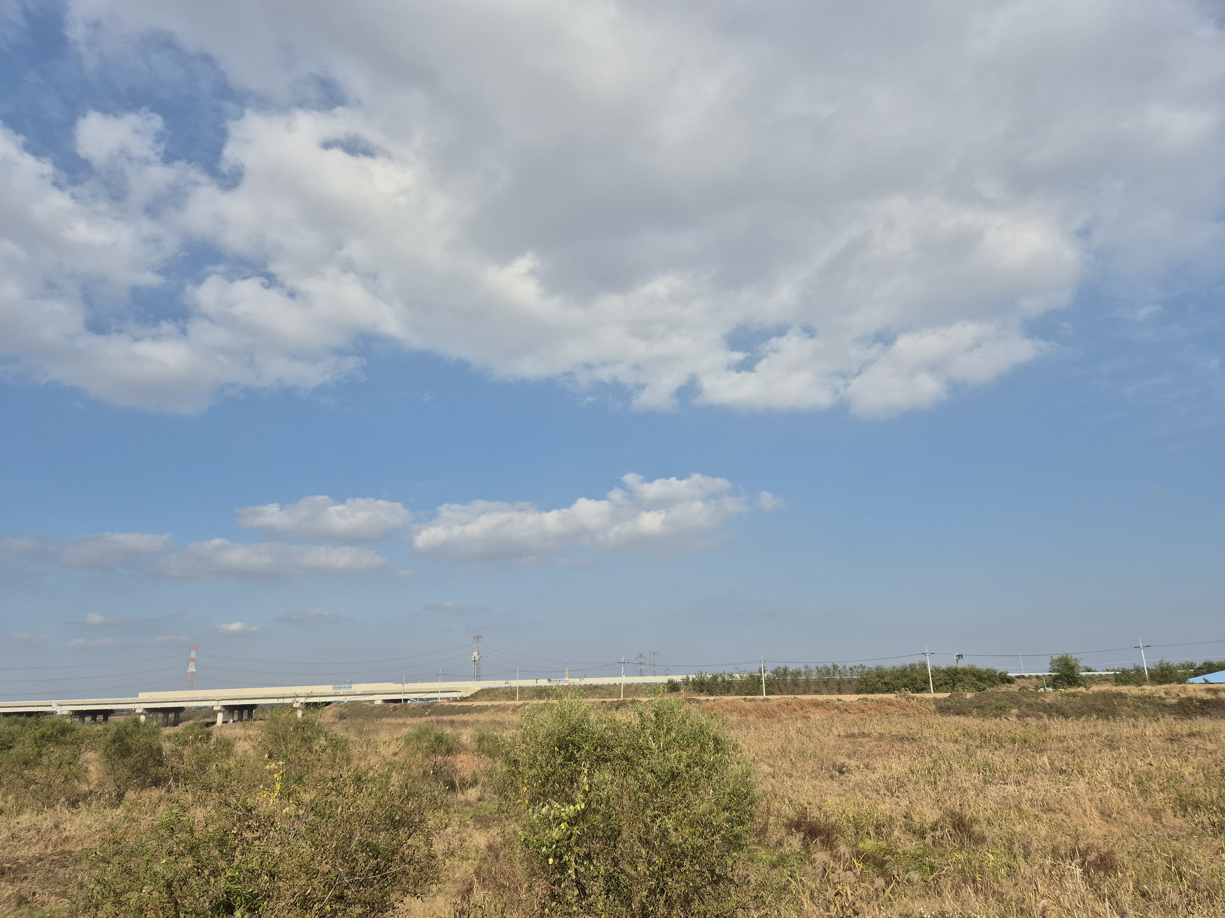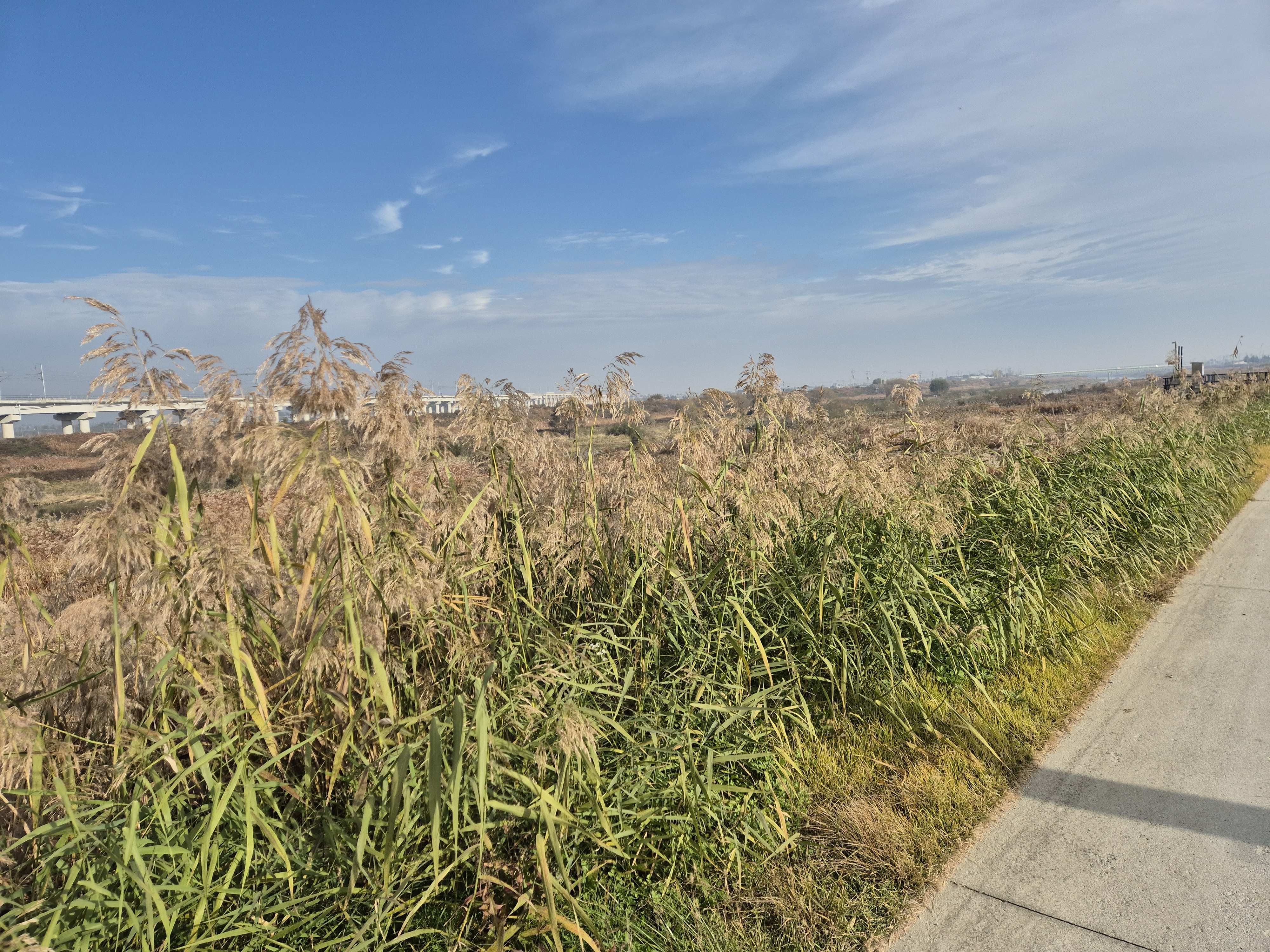 맑고 청명하나 멀리의 풍경은 스모그가 끼어 흐릿하다.