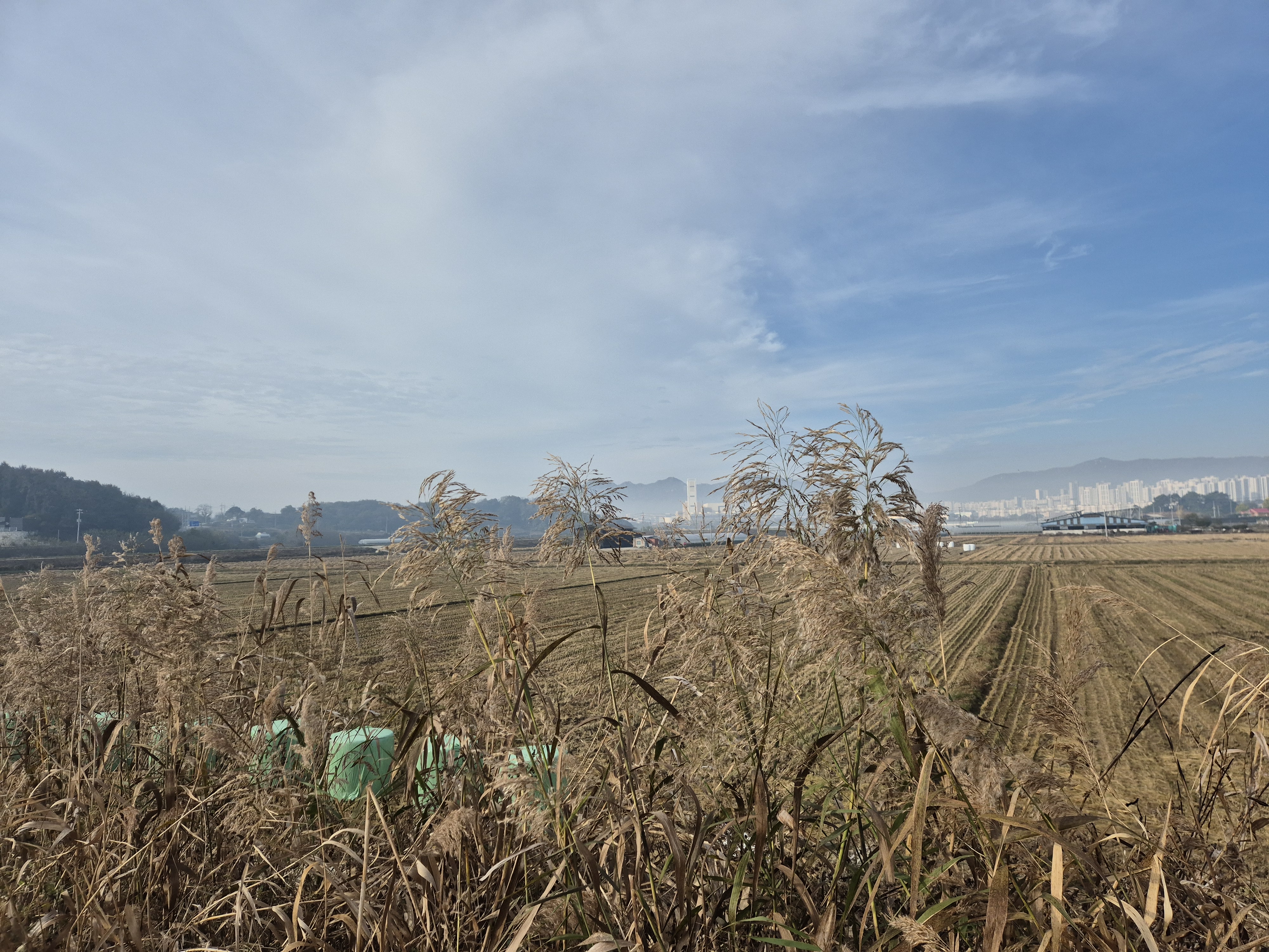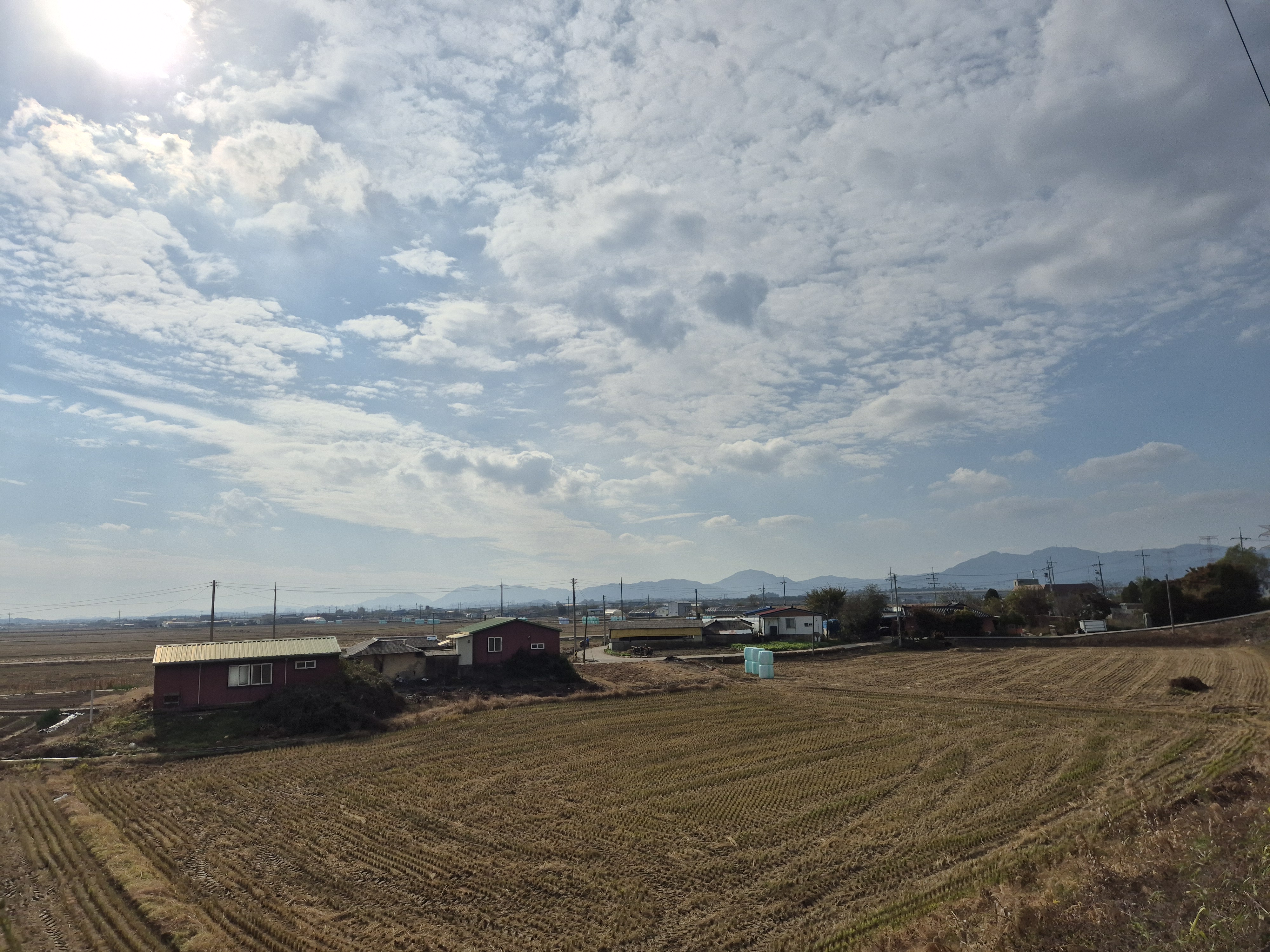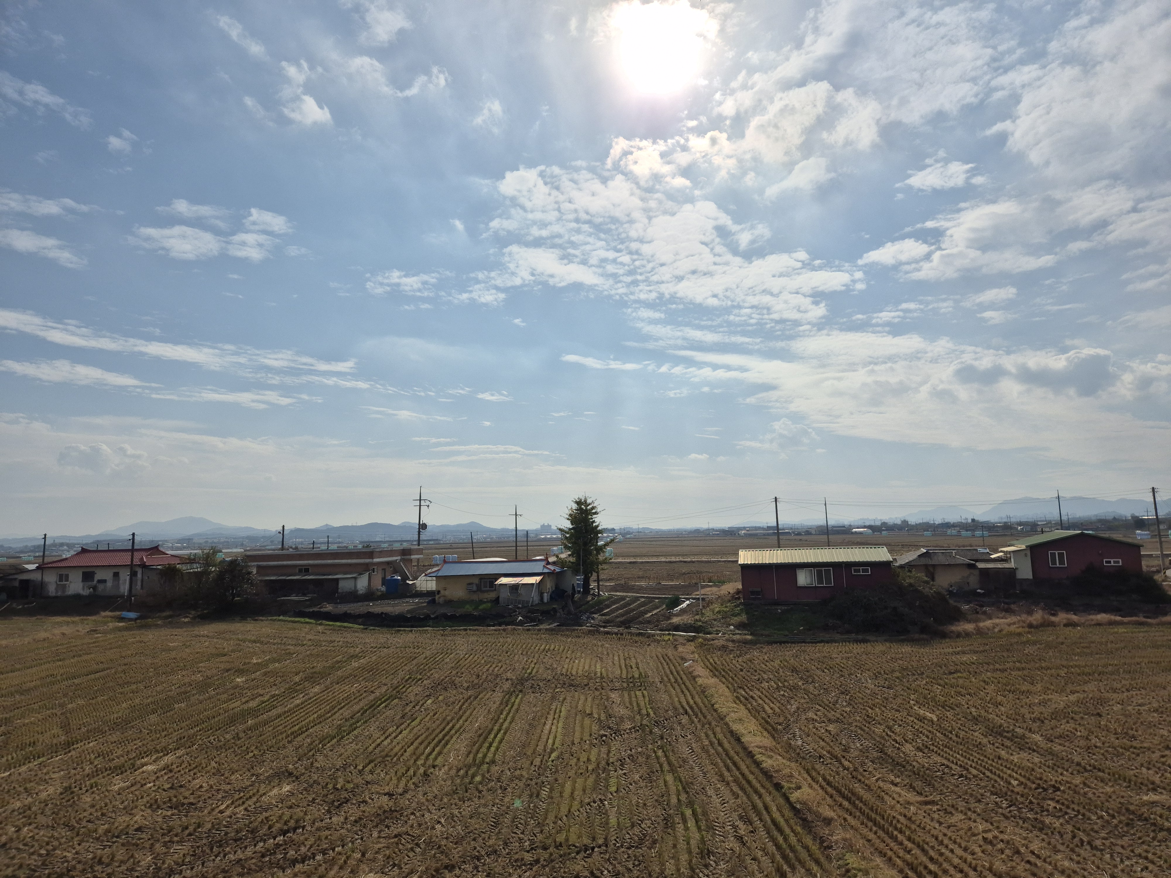 넓은 들판은 이미 추수가 끝나고 텅빈 논이 을씨년 스럽게 보이며 하늘은