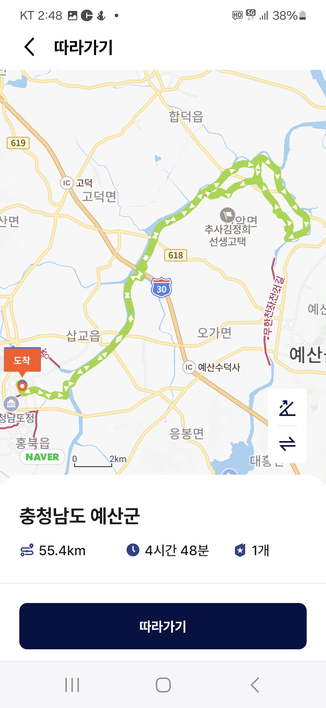 앱을 켜고 달려도 정확하게 안내하지를 않으니 당진의 신암부근에서