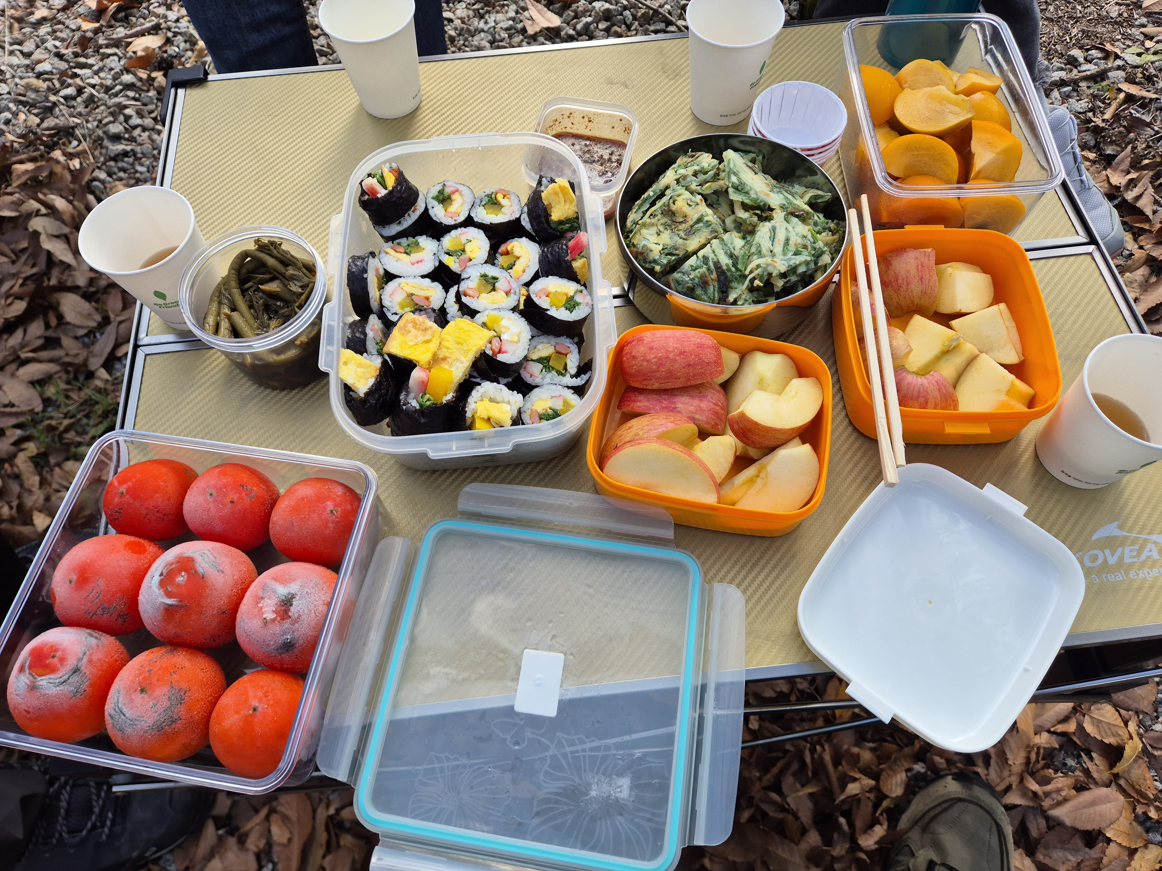 준비한 김밥과 과일,커피,차등으로 푸짐하게 점심을 먹는다.