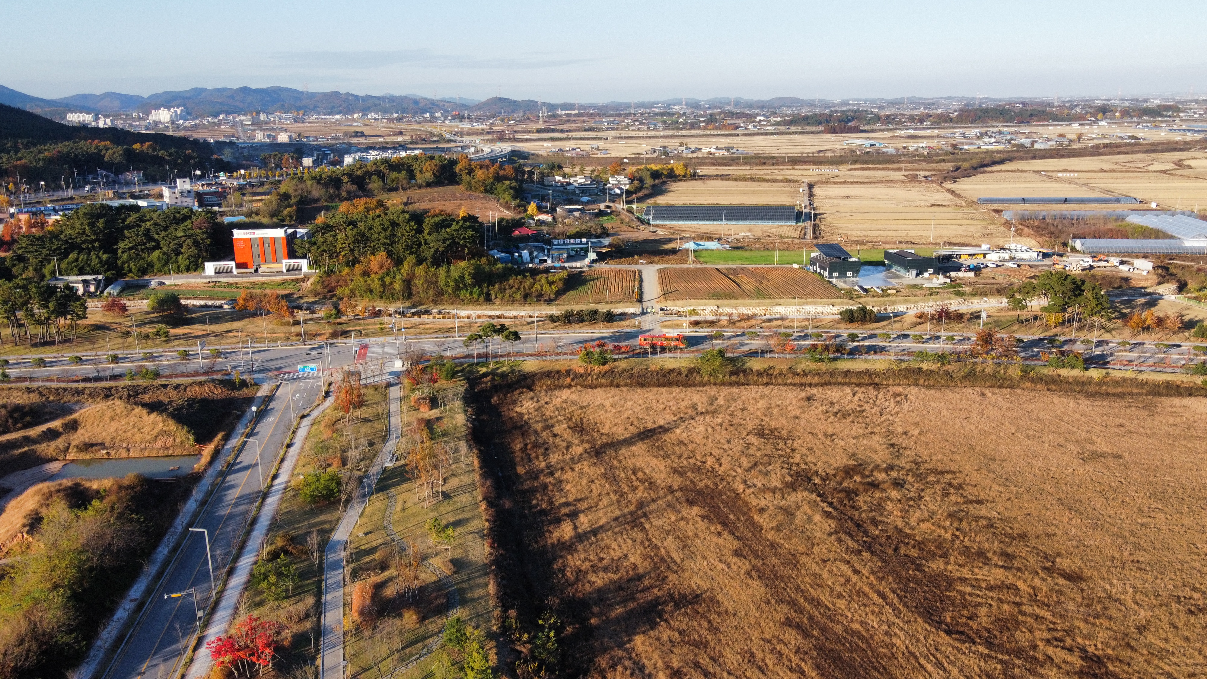낮시간. 잠시 드론을 띄워 주변의 가을모습을 담아본다.