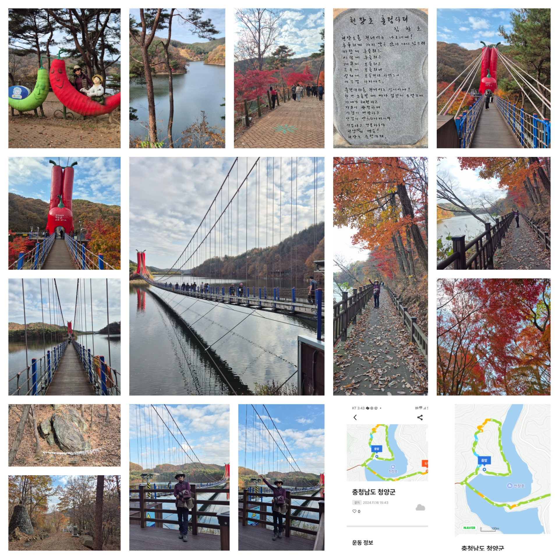 산행후 천장호로 이동하여 출렁다리를 건너 2키로가 넘는 코스를