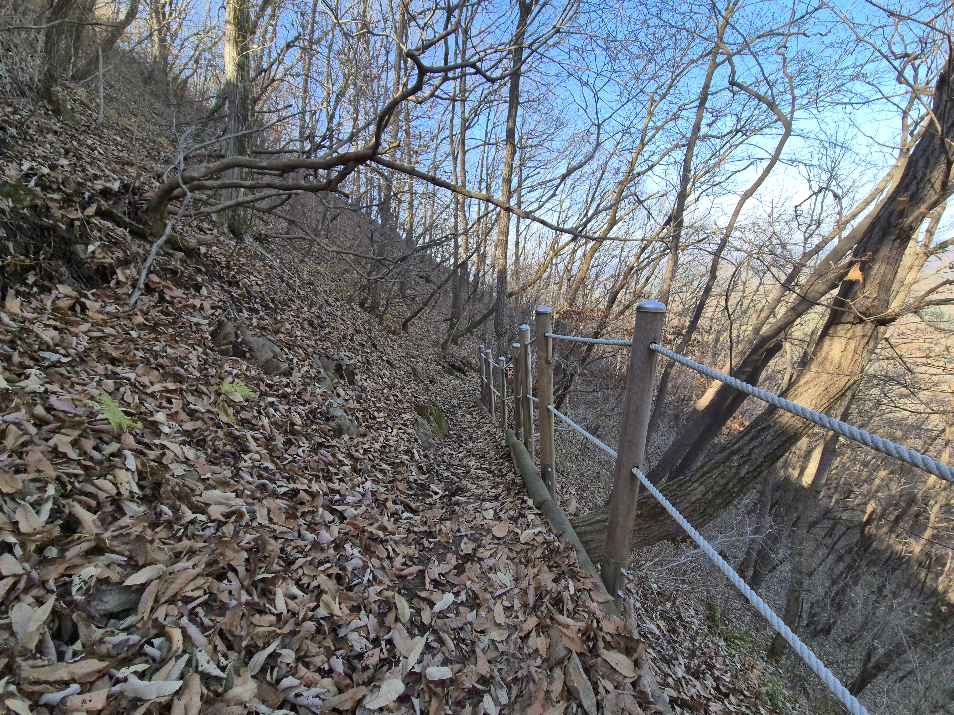 다시 길을 걸어 정상부에 다가서니 데크길이 가파르게 설치되어 그것을 오르는데