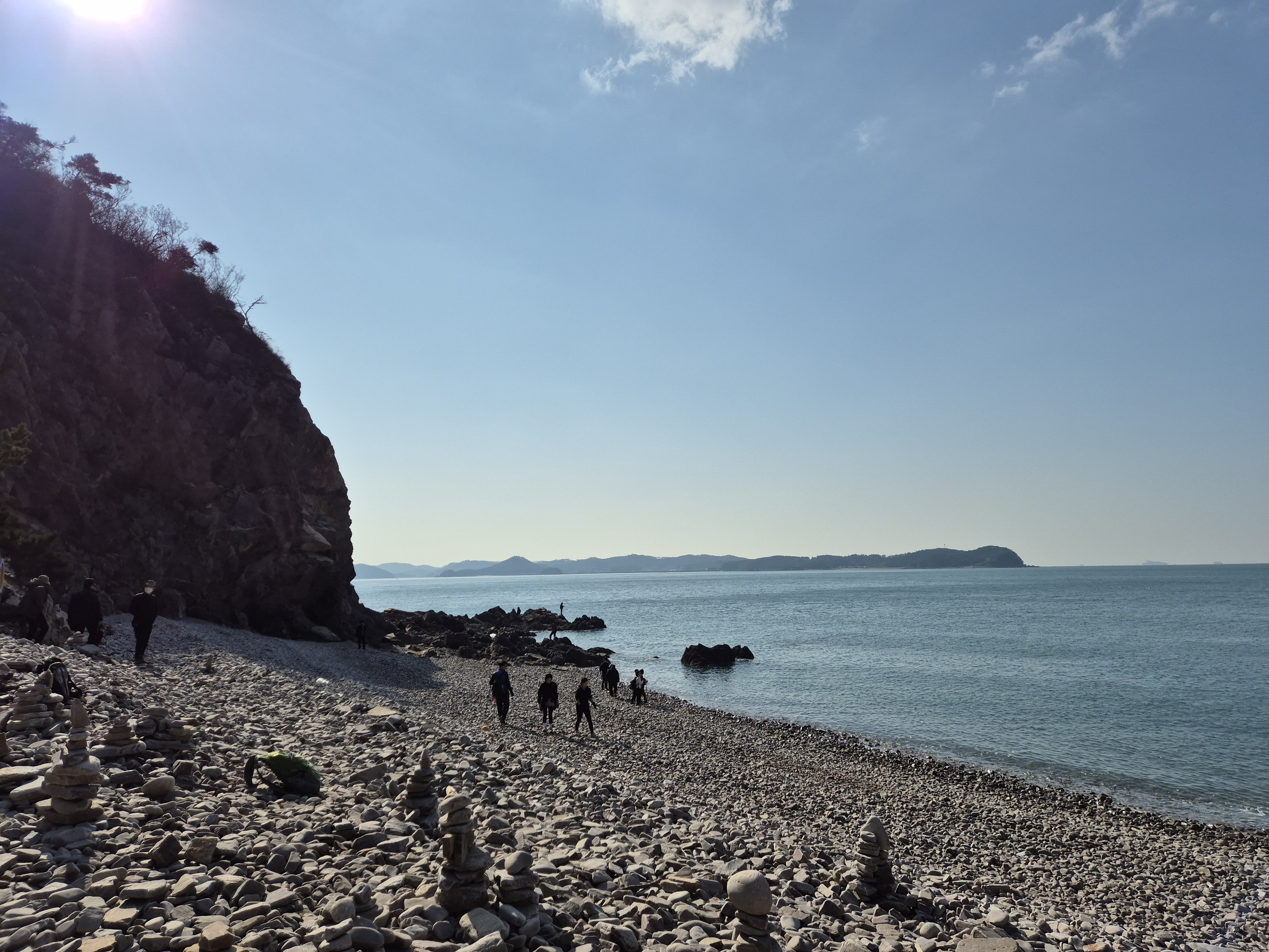 해변가로 내려서니 몽돌이 해안을 덮고있고 시원하게 서해바닷가이다.