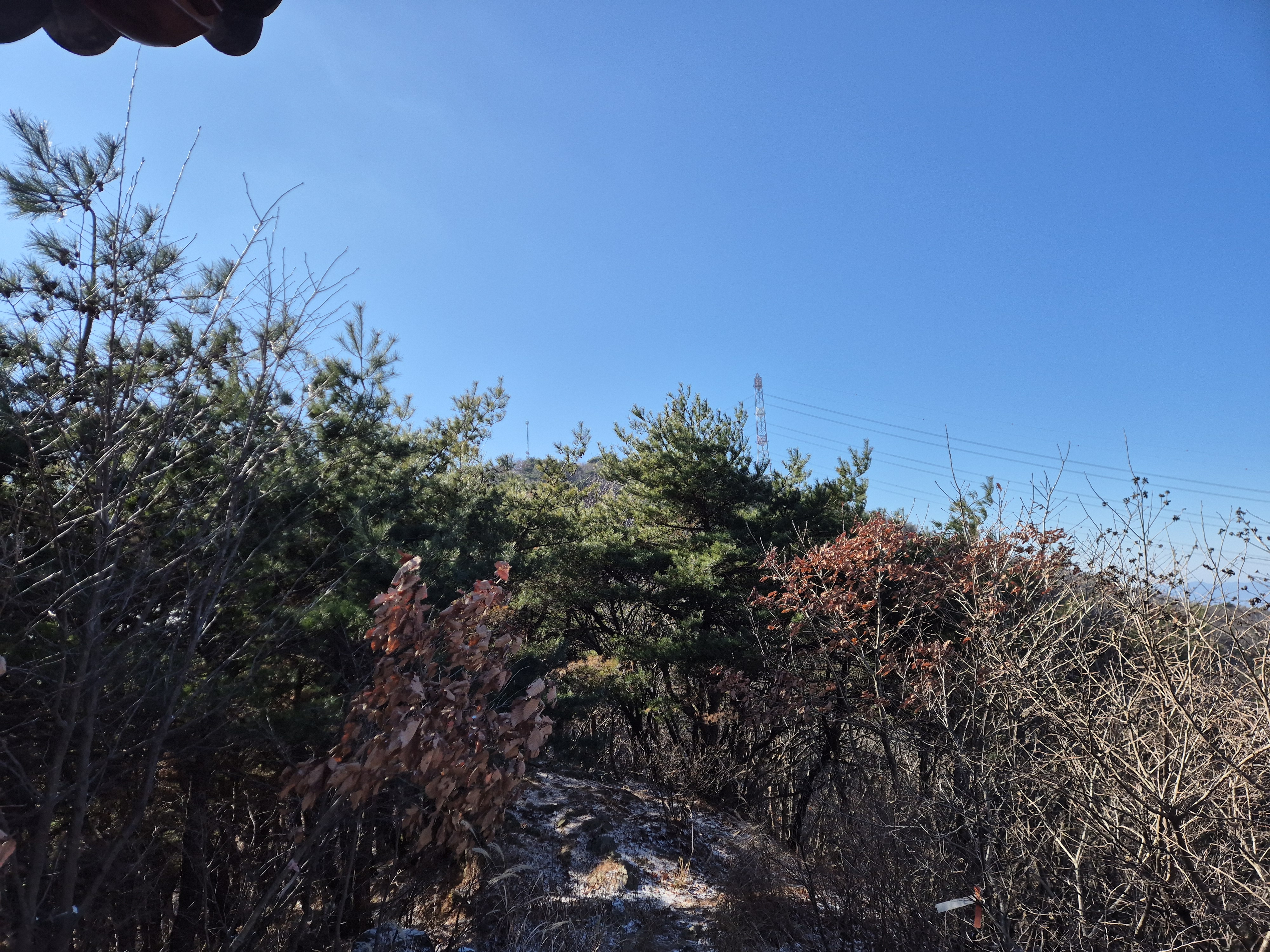 바람이 불고 군데군데 눈이 살포시 덮혀 근래 드물게 산길 오르기가 쉽지않다.