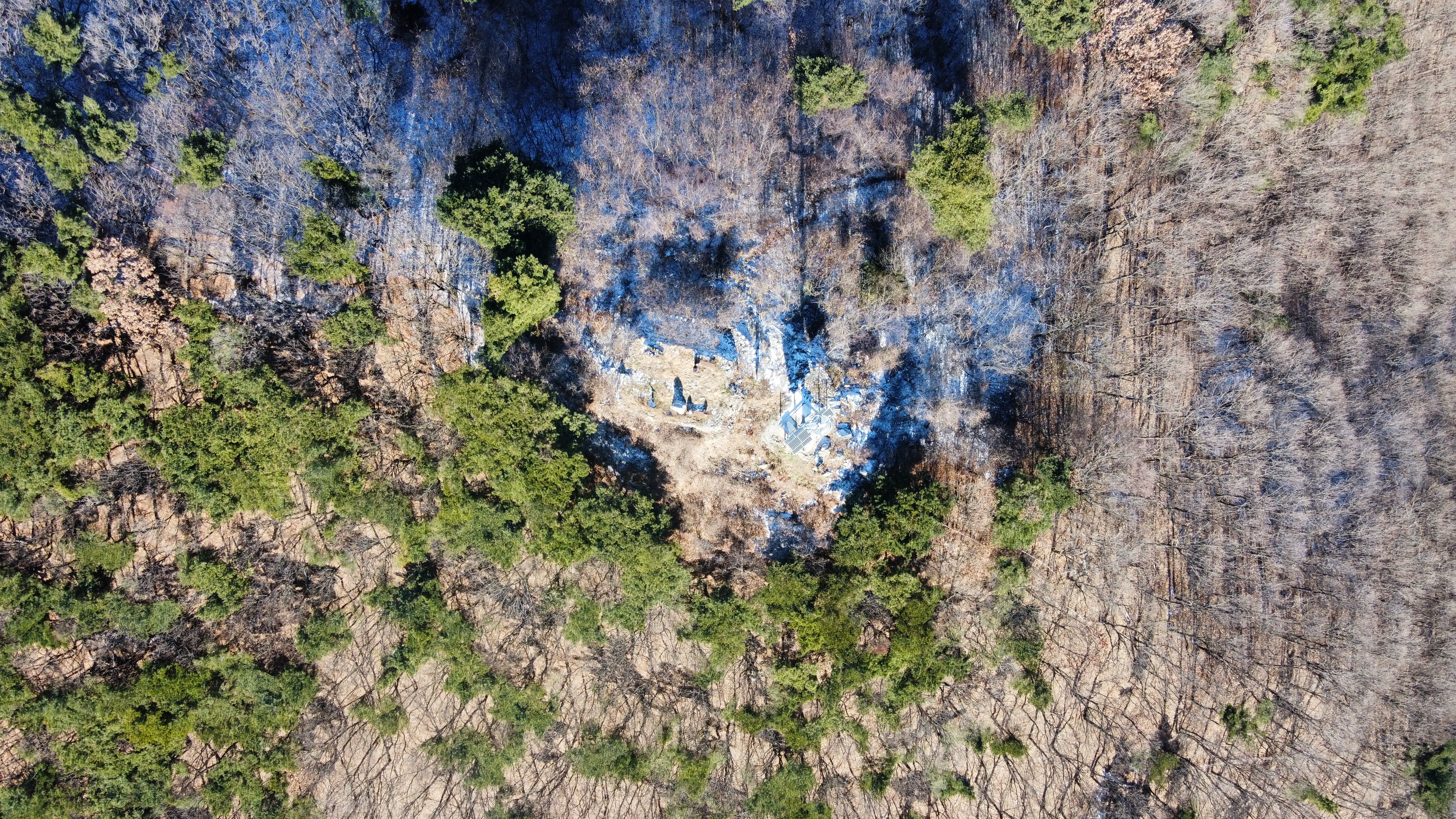 밤사이에 살짝 눈이 왔는지 도로도 부분적으로 염화칼슘으로 제설이 된 듯하고 산길 음지녘에는