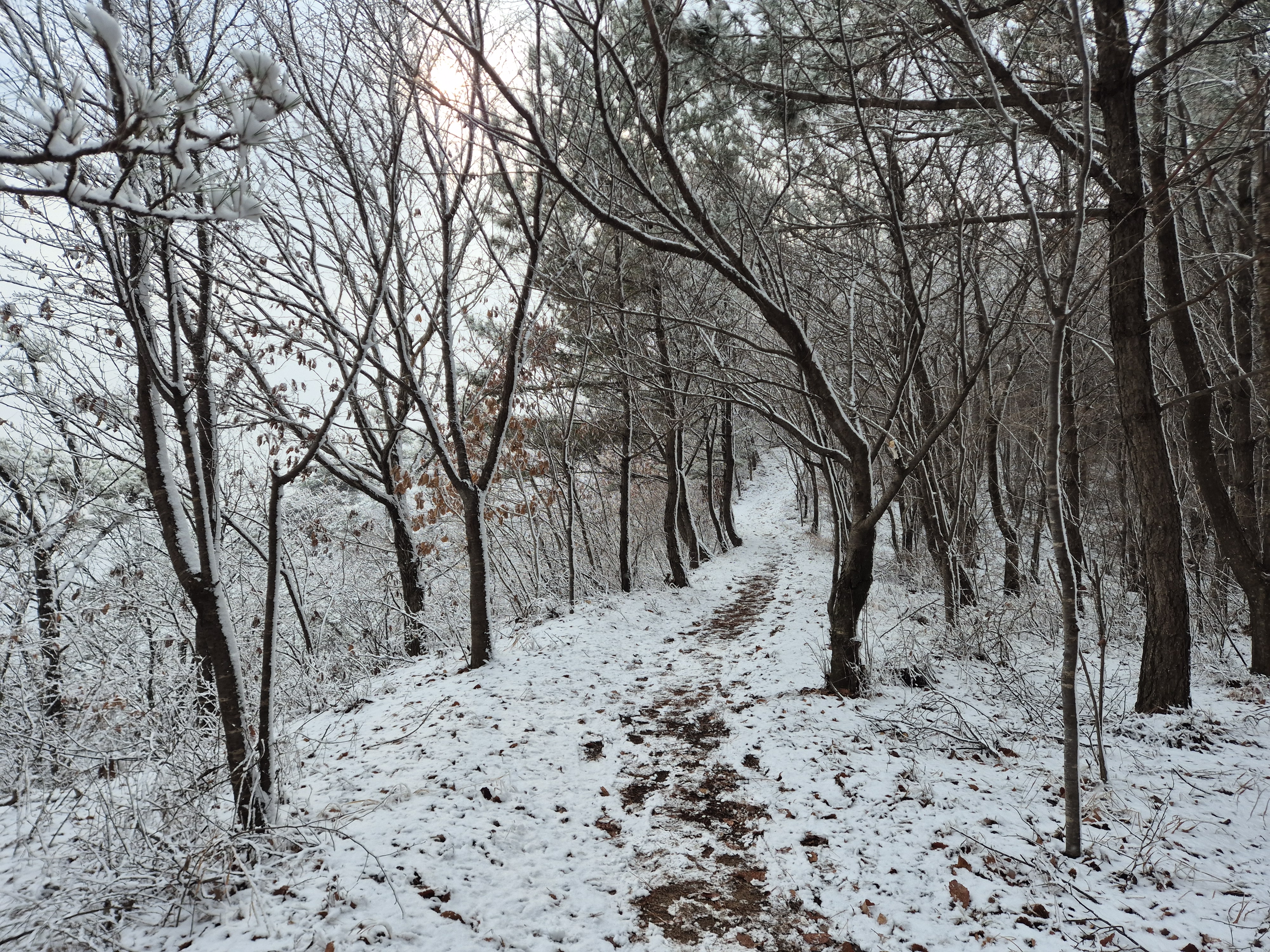 눈내리는 산길은 호젓하고도 걷기에 좋다.