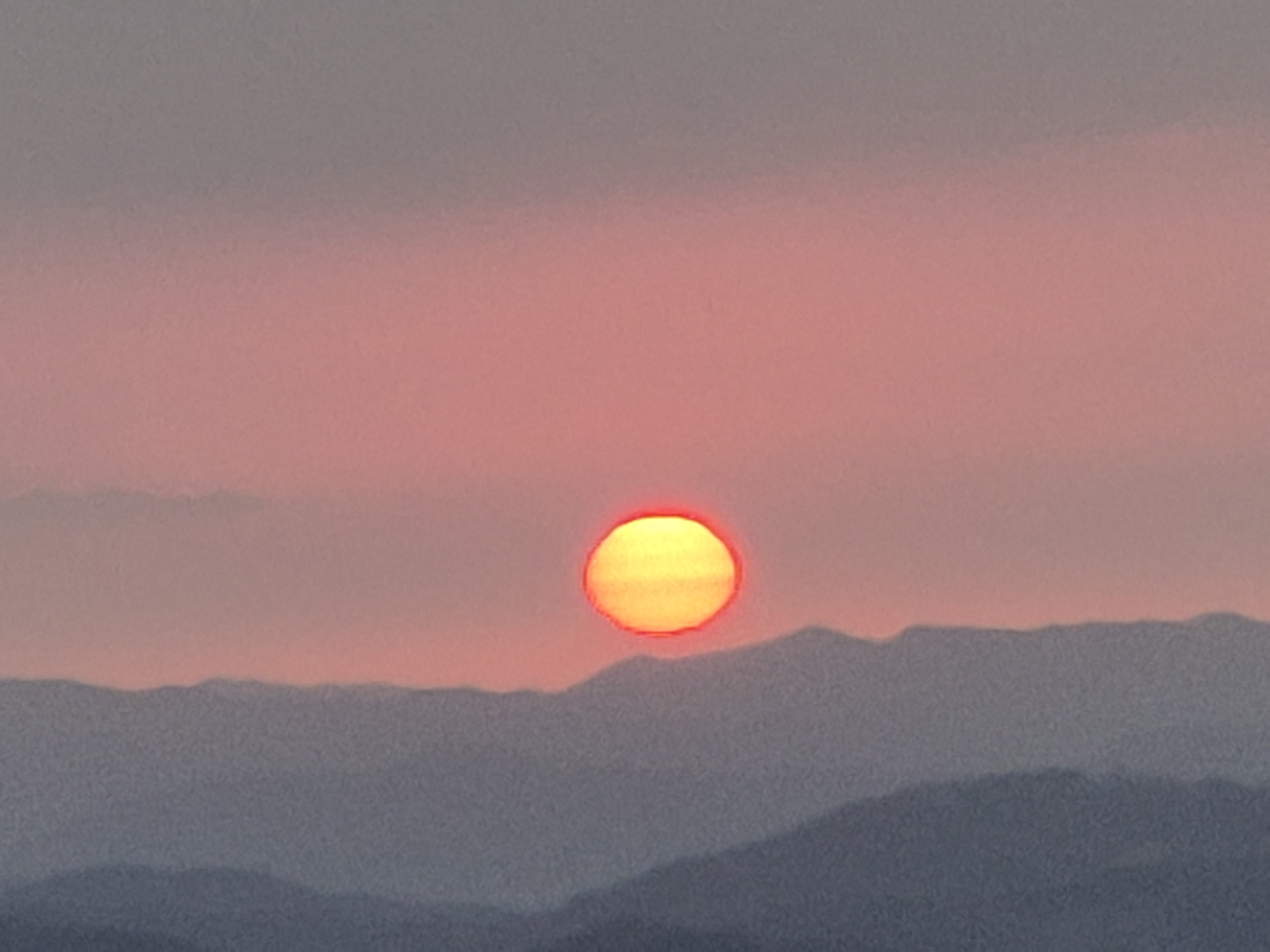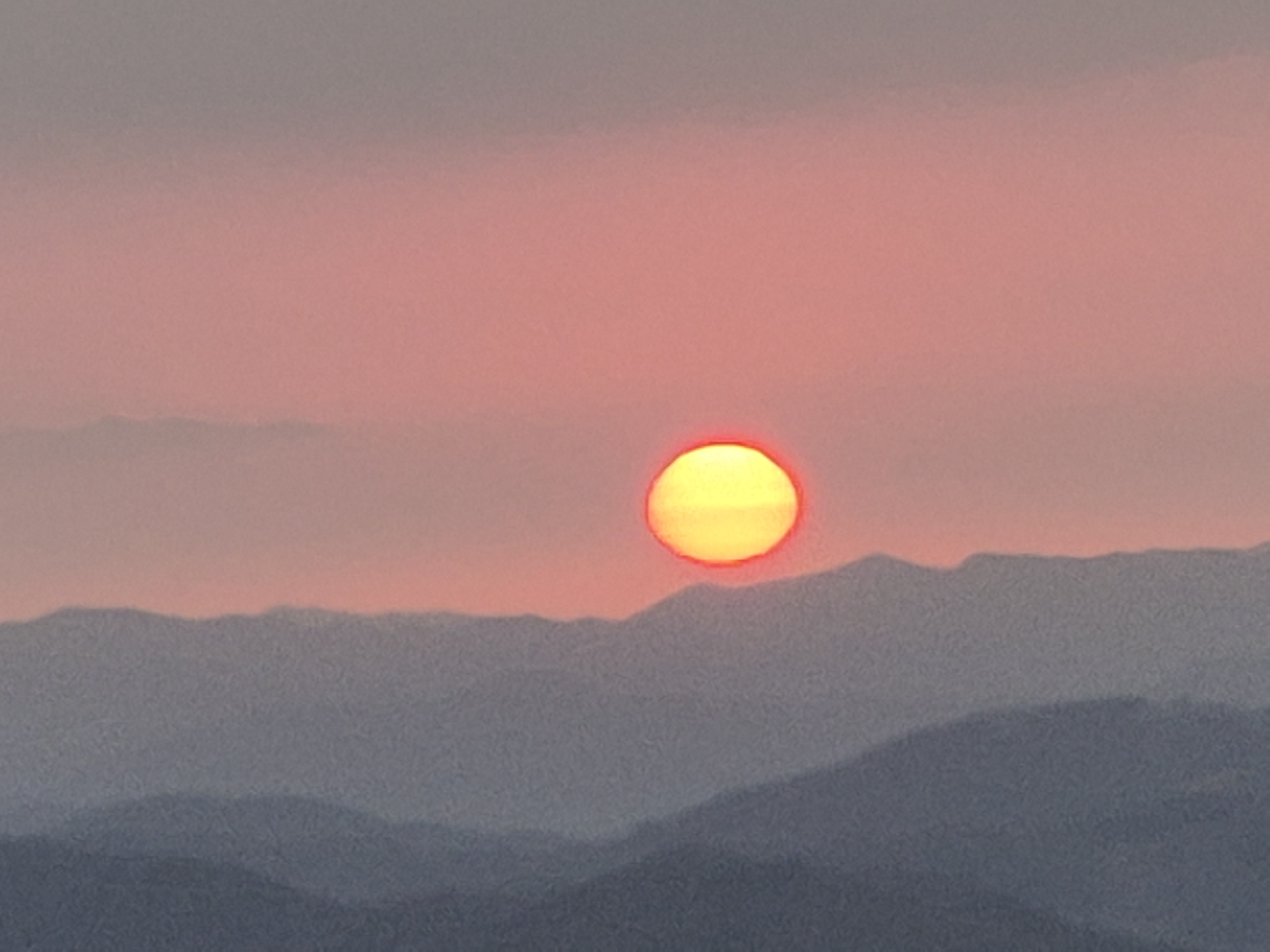 이윽고 산위로 붉은 반점이 보이더니 생각보다도 빠르게 산위로 떠오른다.