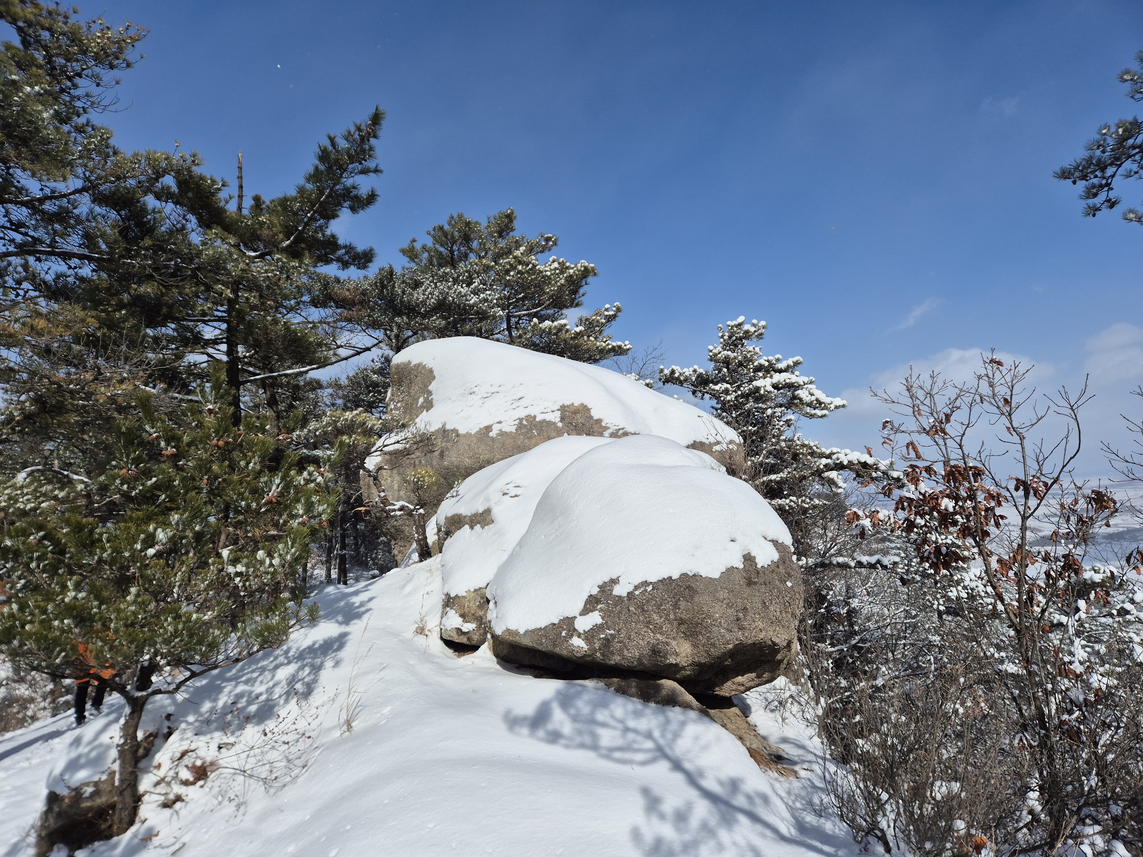능선길을 따라 걸으며 눈산행을 즐기는데, 금년겨울의 눈구경을 제대로 한껏 해본다.