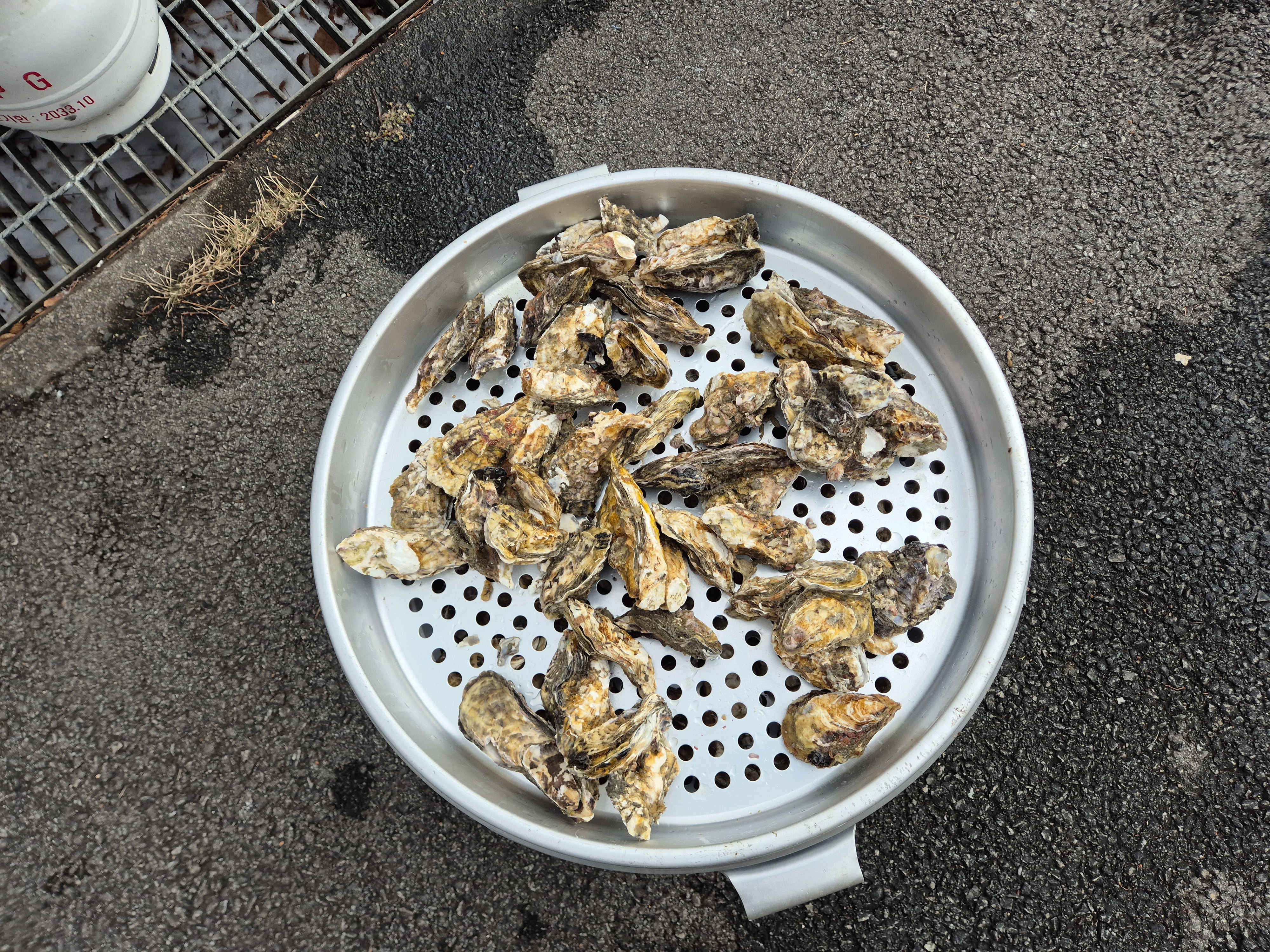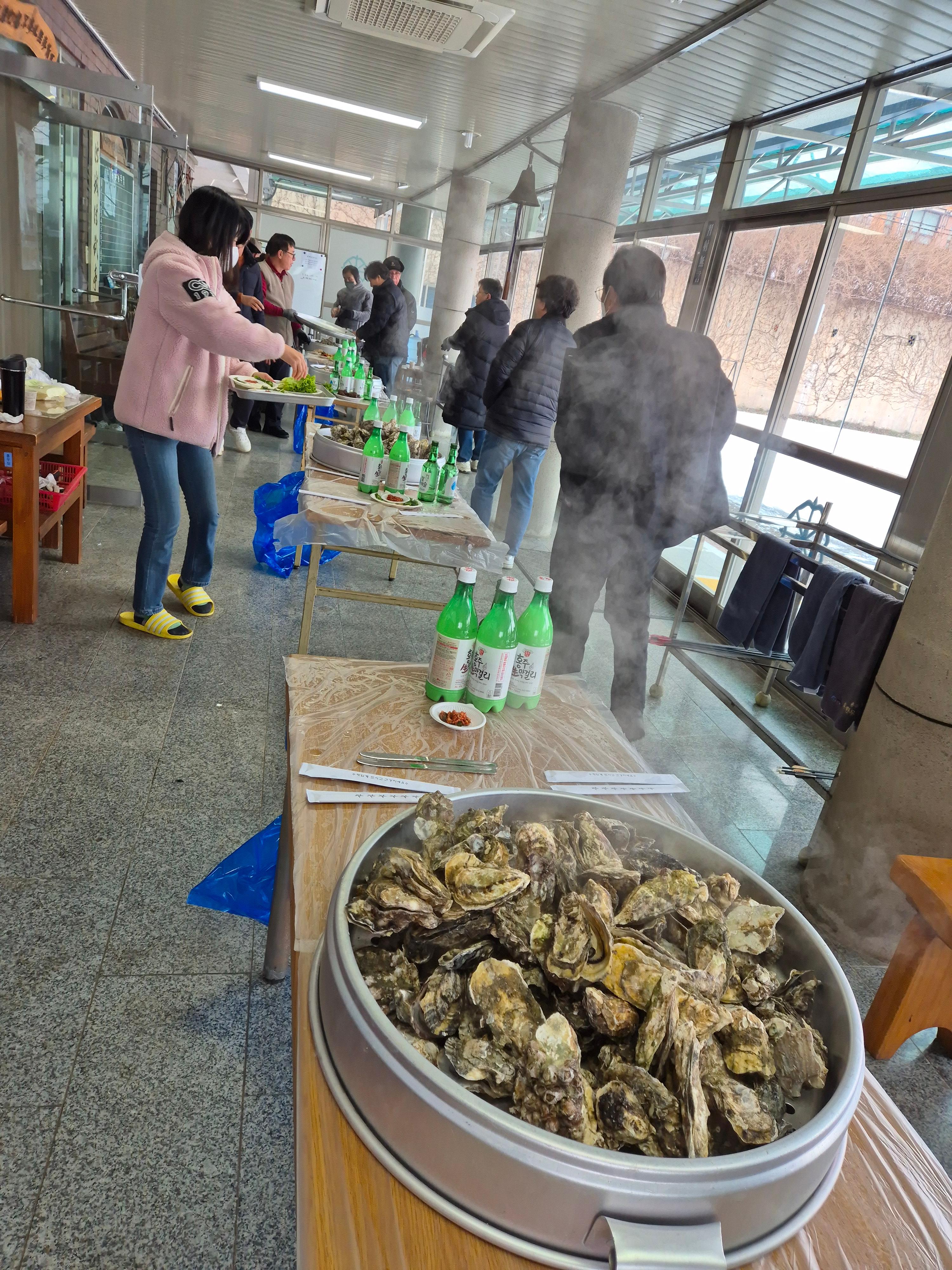 푸짐하게 마련한 음식과 주류가 펼쳐지나 굴찜과 수육등 준비한 것이