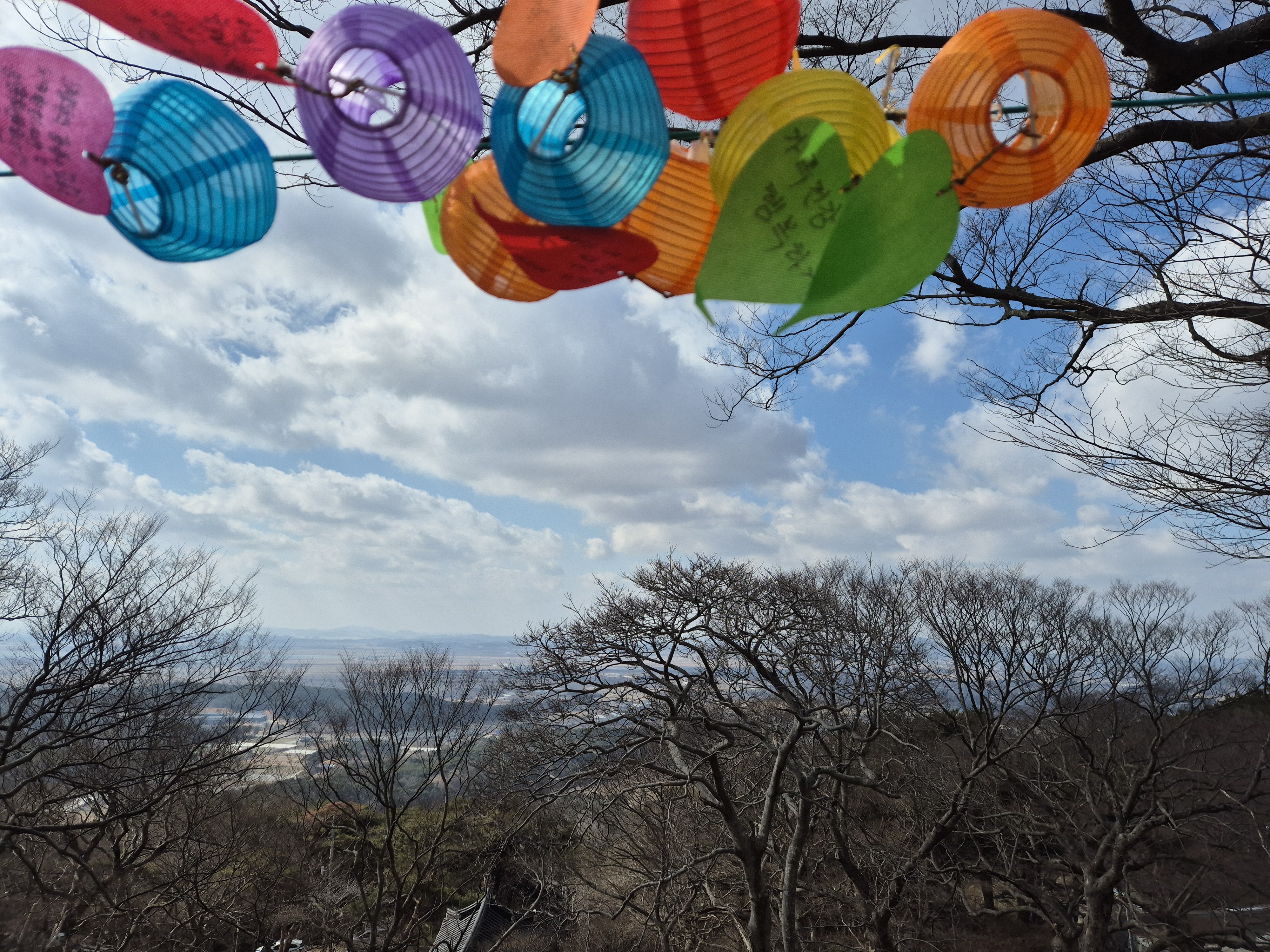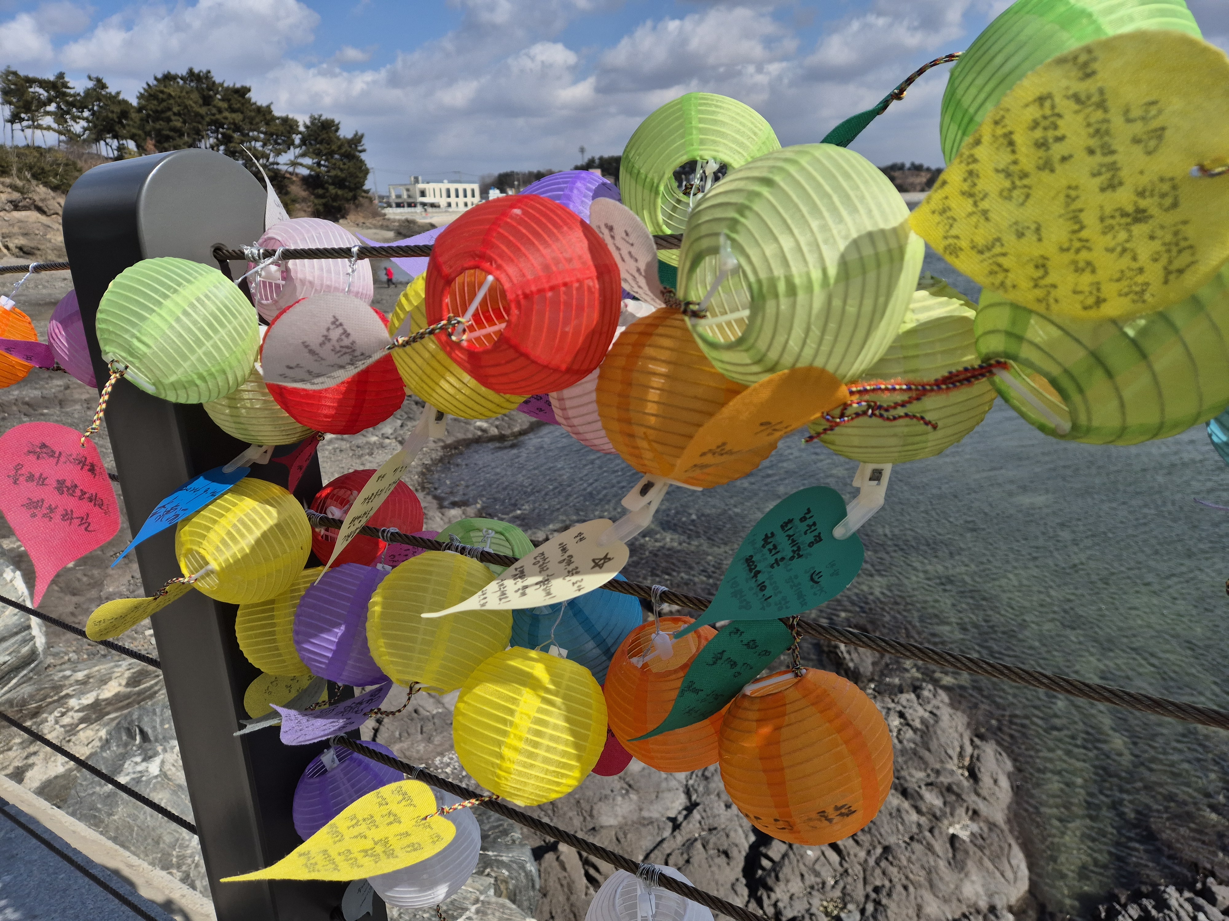 작년 가을에 달아놓은 소원등이 여전히 바람에 흔들리며 메달려있다.