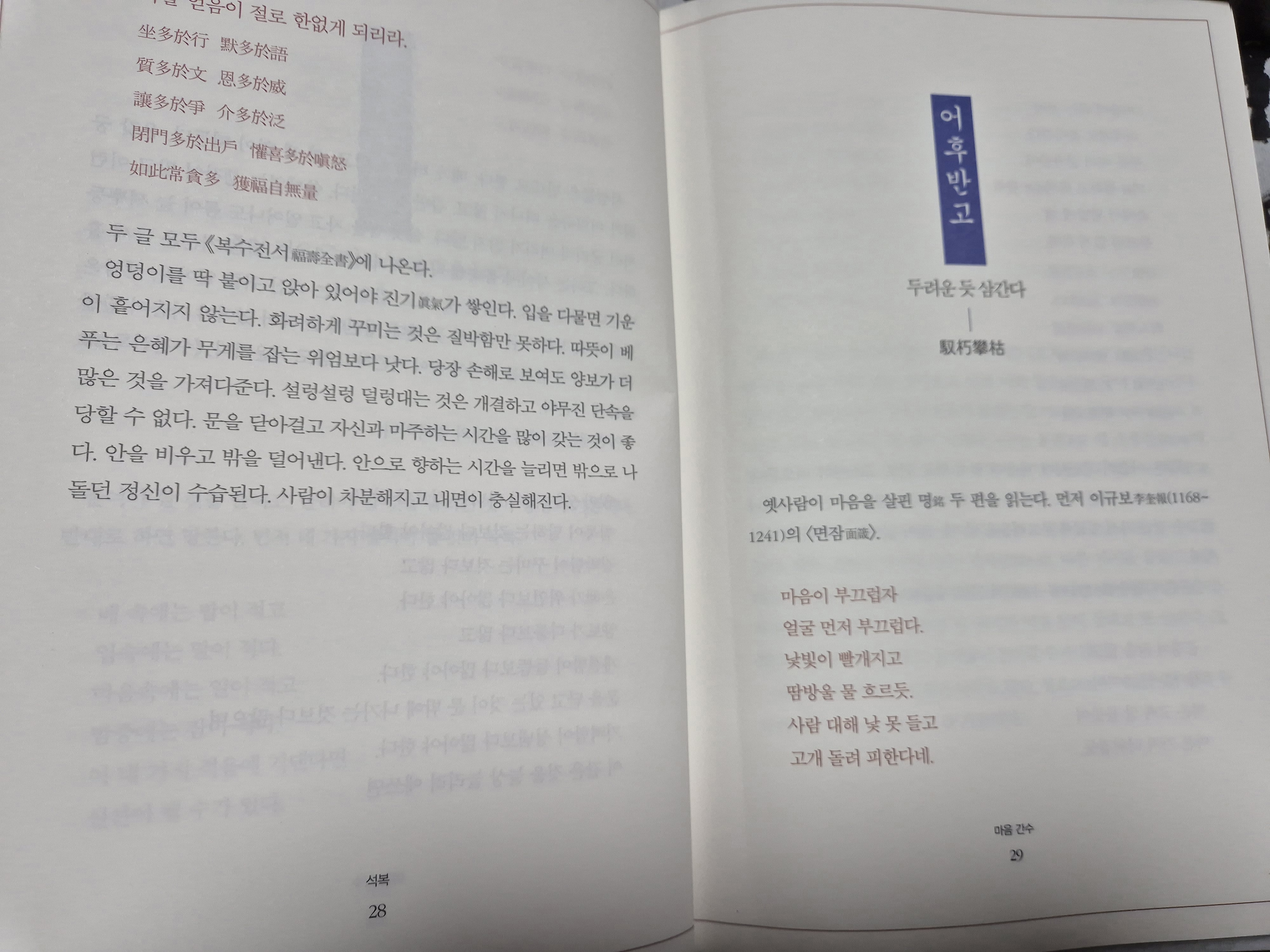정민의 석복이라는 책을 대여하여 며칠간 옮겨 써본다.