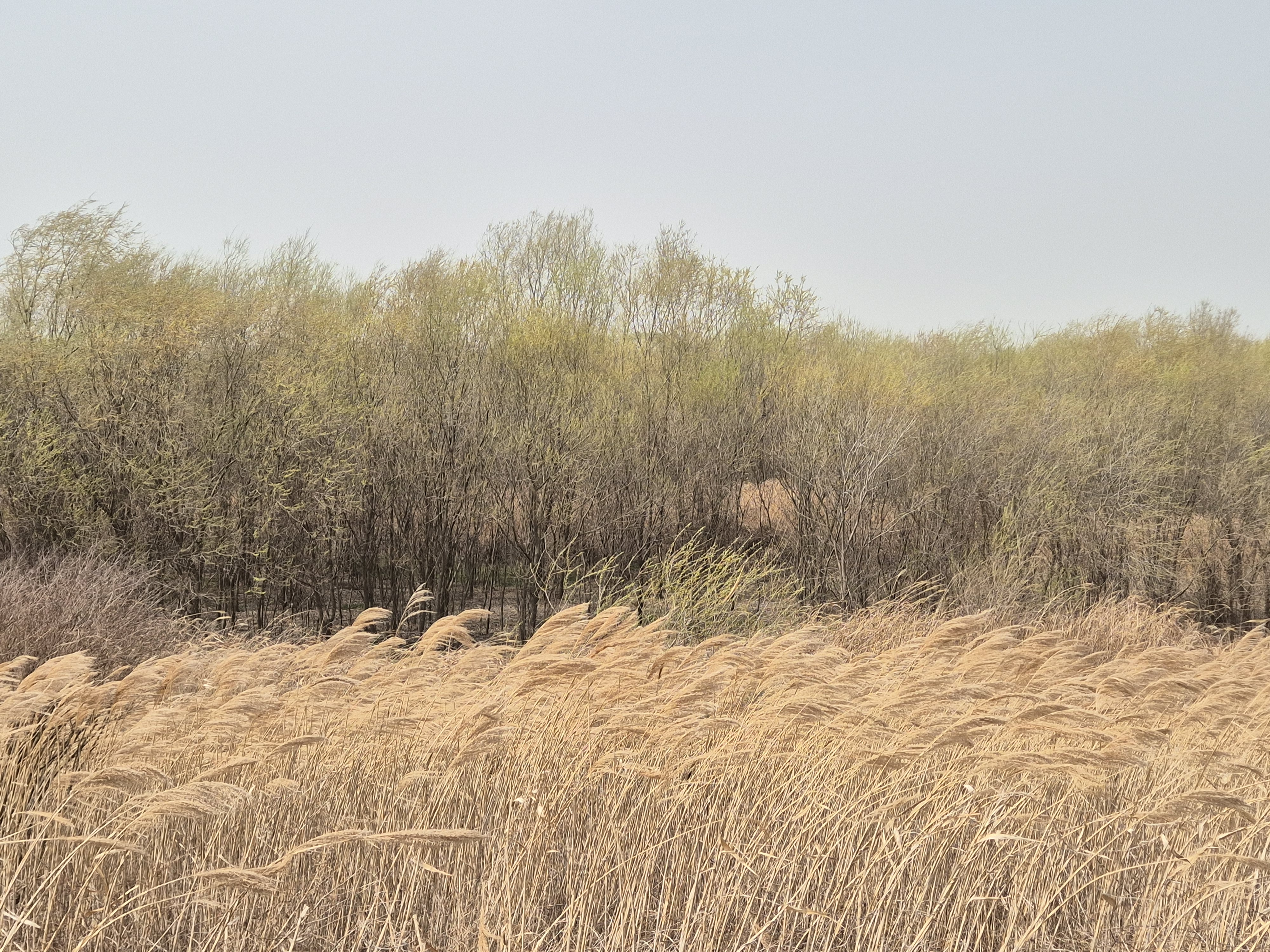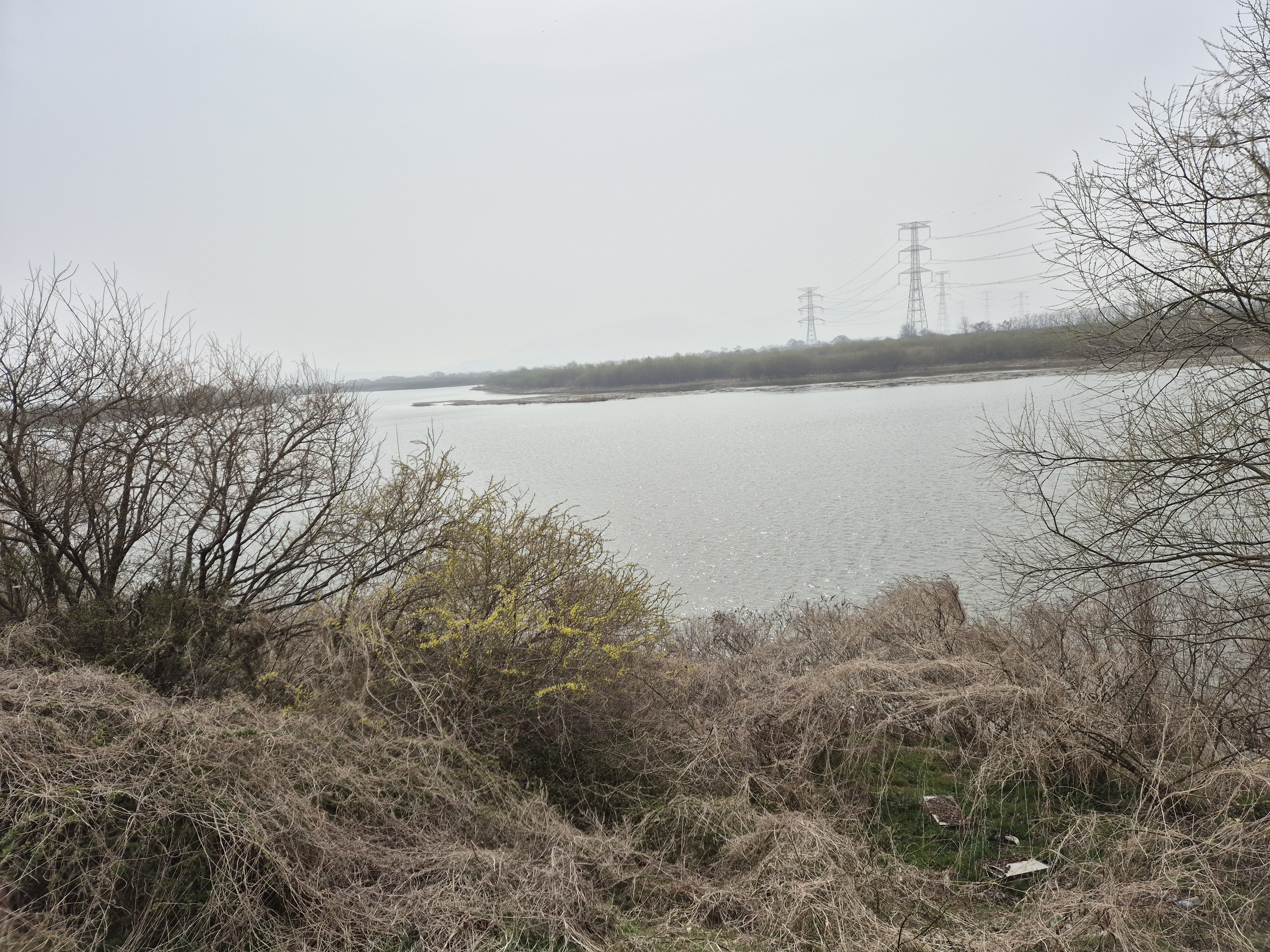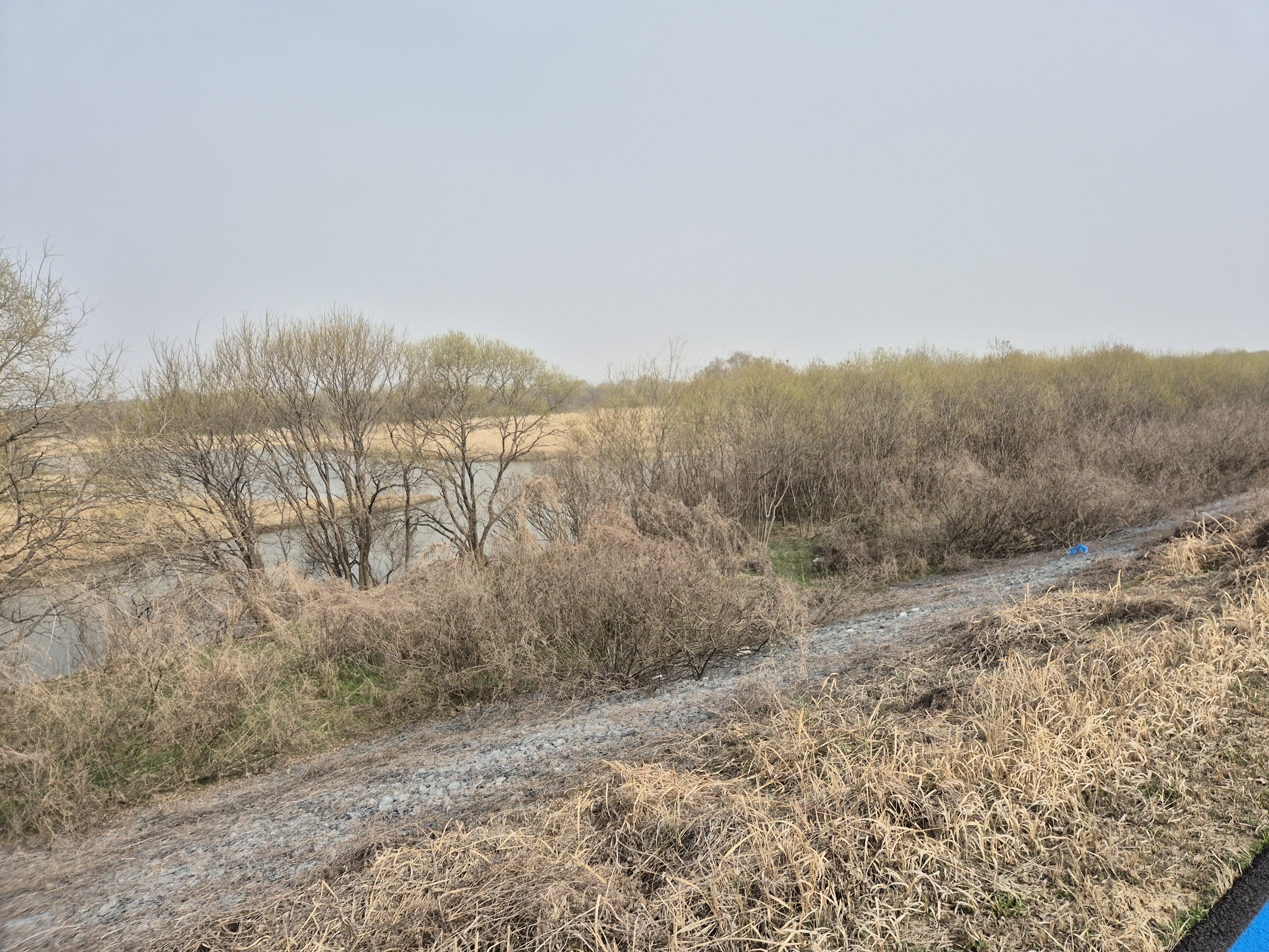 천변의 버드나무를 비롯한 초목들이 푸르러지기 시작하는 화창한 계절인데,미세먼지로 시계가 제대로 확보되지