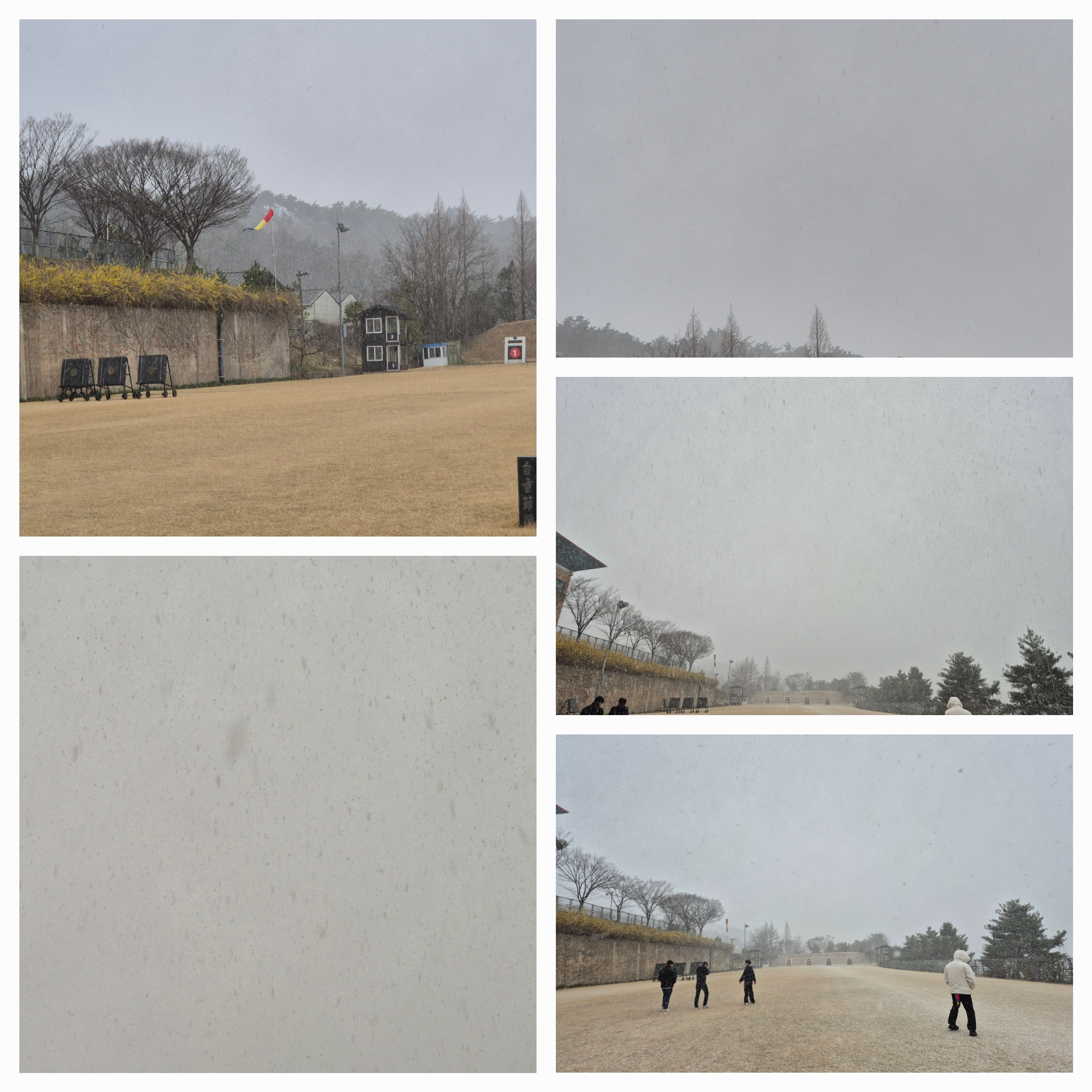 잠시후에는 활터 잔디에 눈이 쌓이기 시작한다.