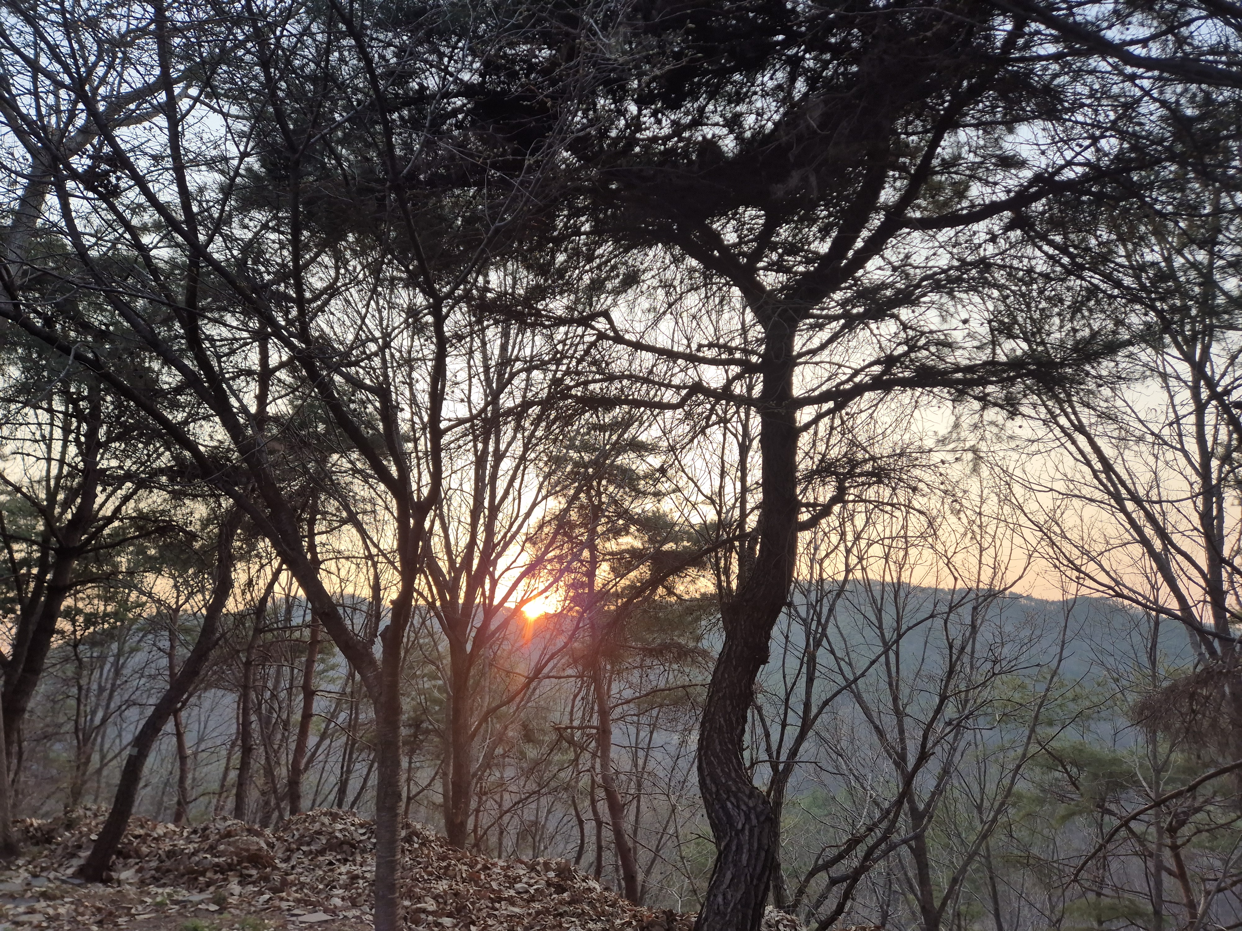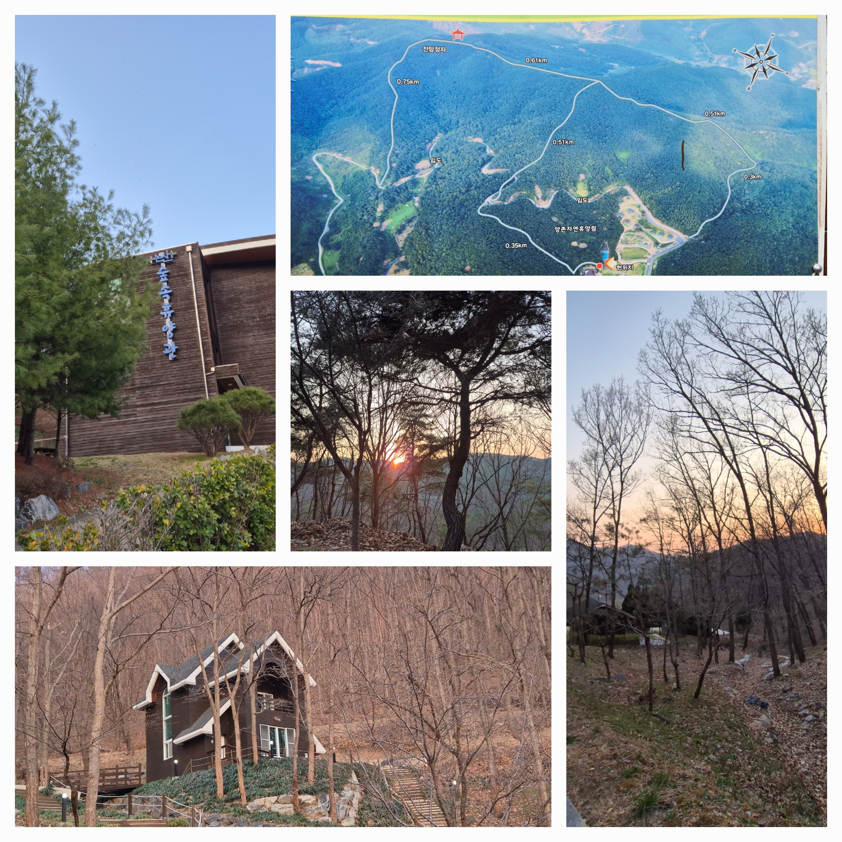 휴양림임도길을 한바퀴 걷고나니 이미 석양이 기울고 해는 서산으로 넘어간다.