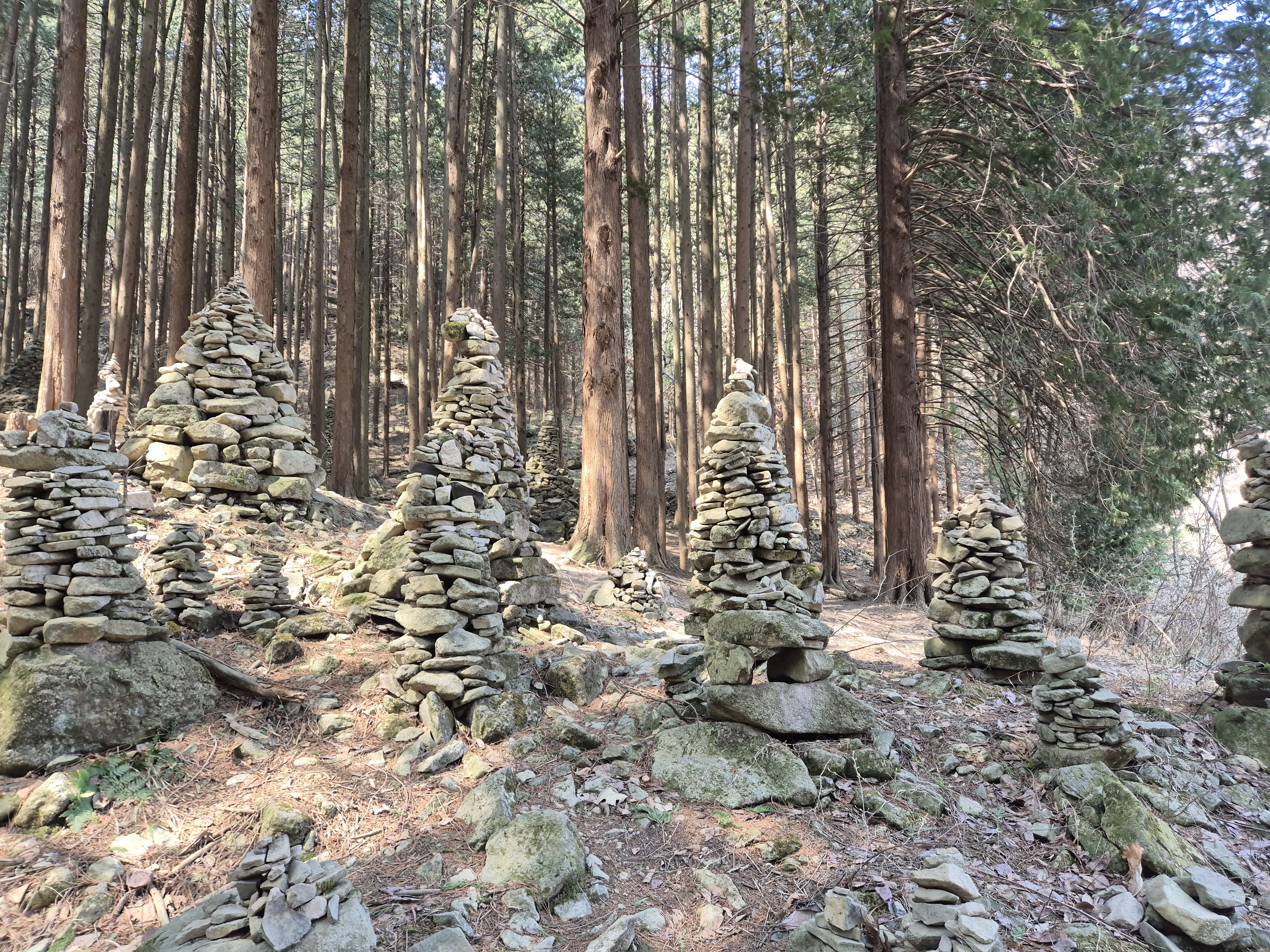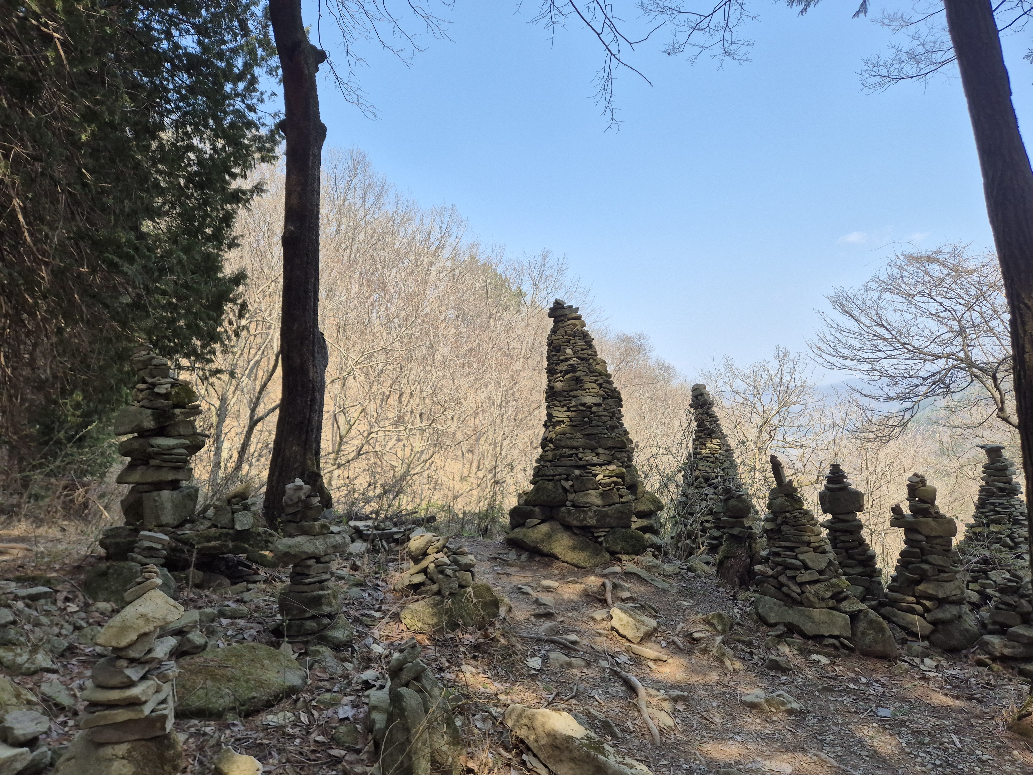 중간 돌탑이 즐비한 곳에서 잠시 머물렸으나 시간이 지남에 따라 은근히 추워지니