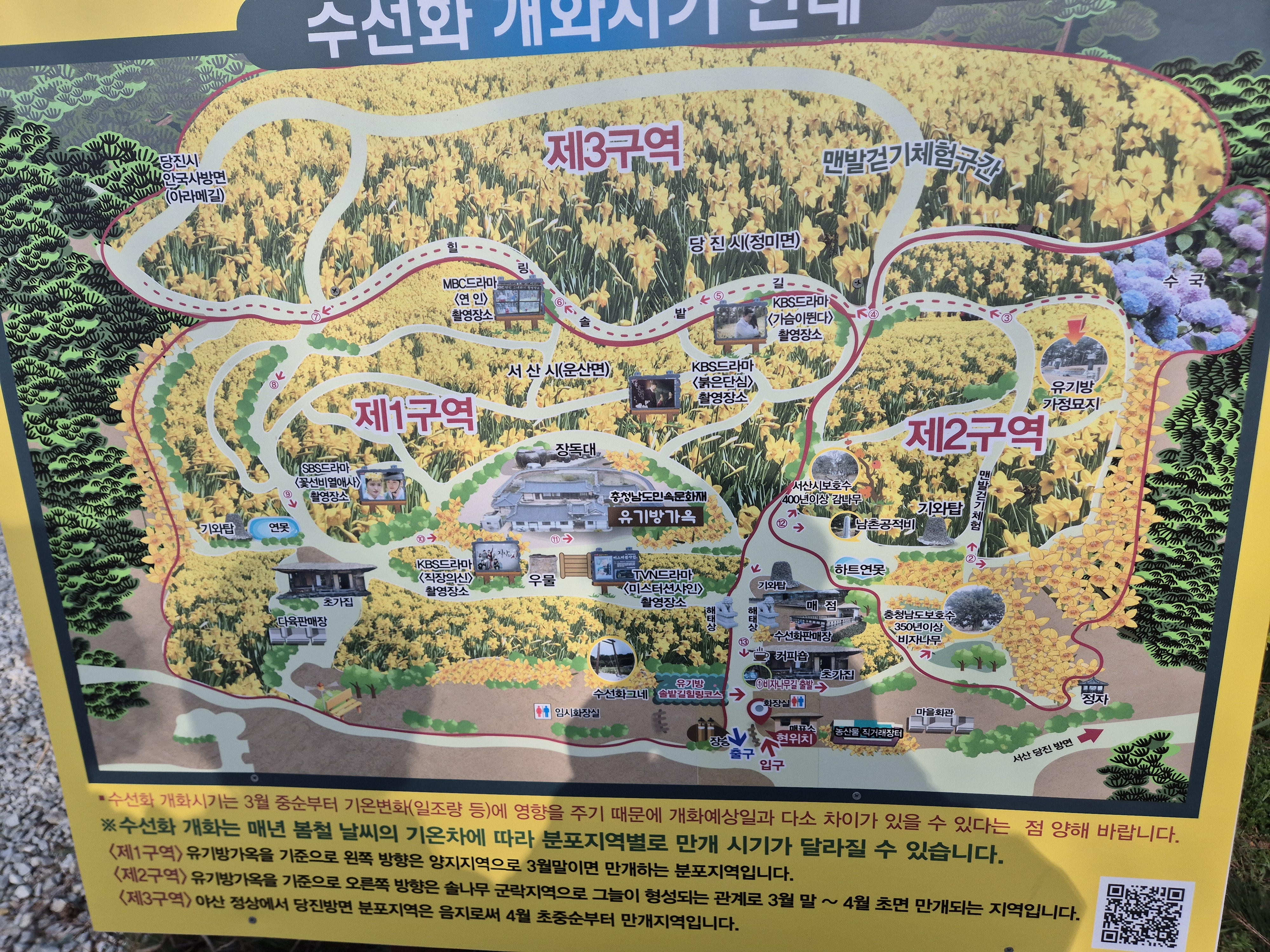 언젠가 인터넷에서 보았던 유기방가옥으로 이동하여 수선화군락을 둘러본다.