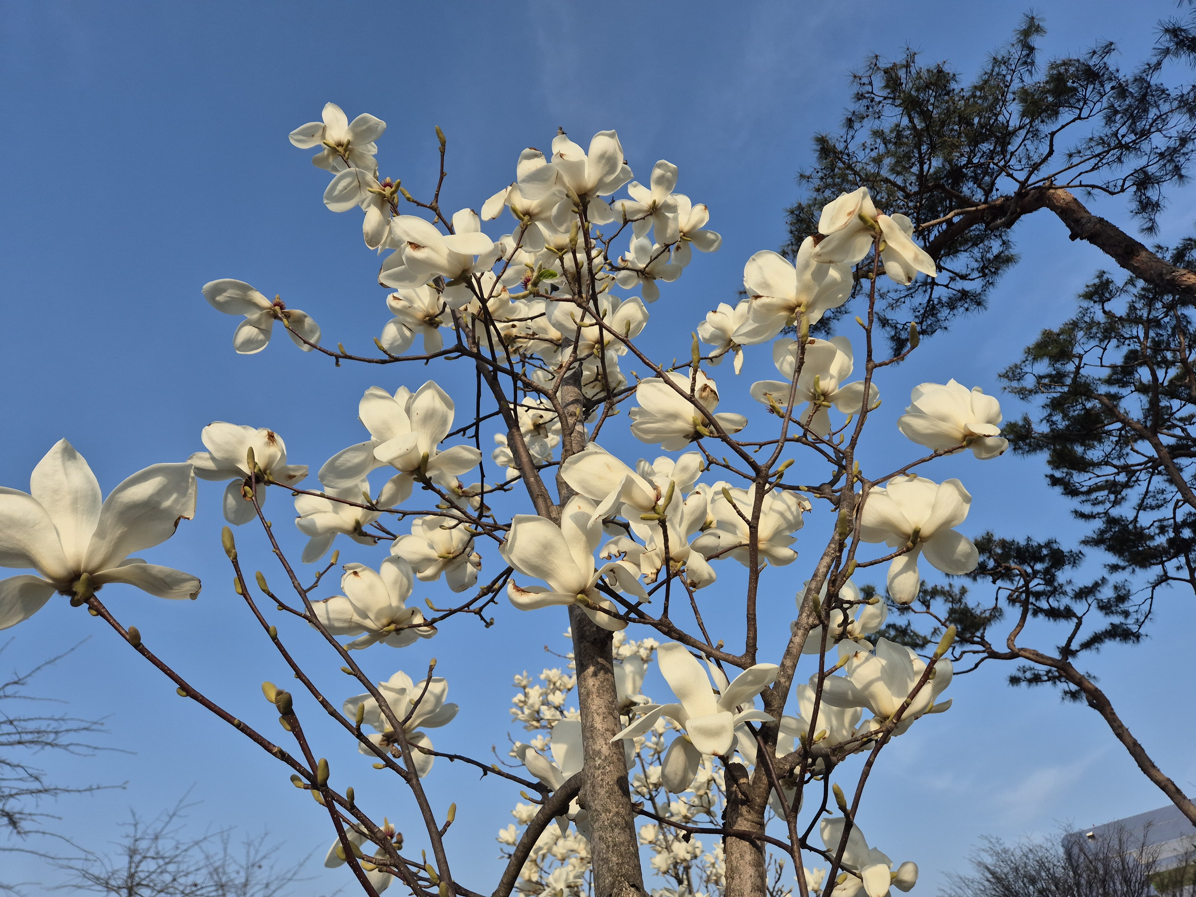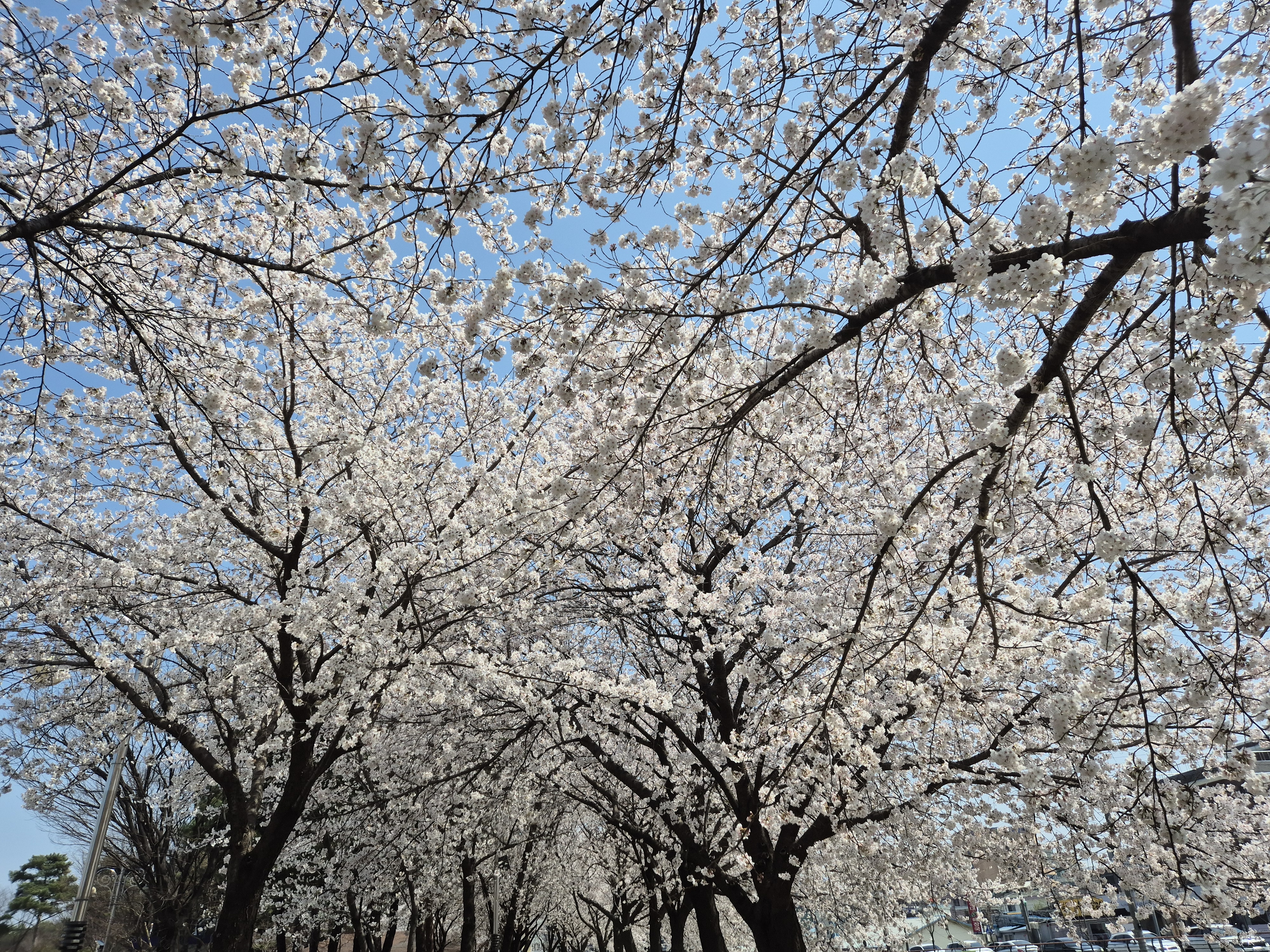 남녘은 벌써 벚꽃이 지고 파란잎사귀가 나온다는데,이곳은 이제 벚꽃이 만개가
