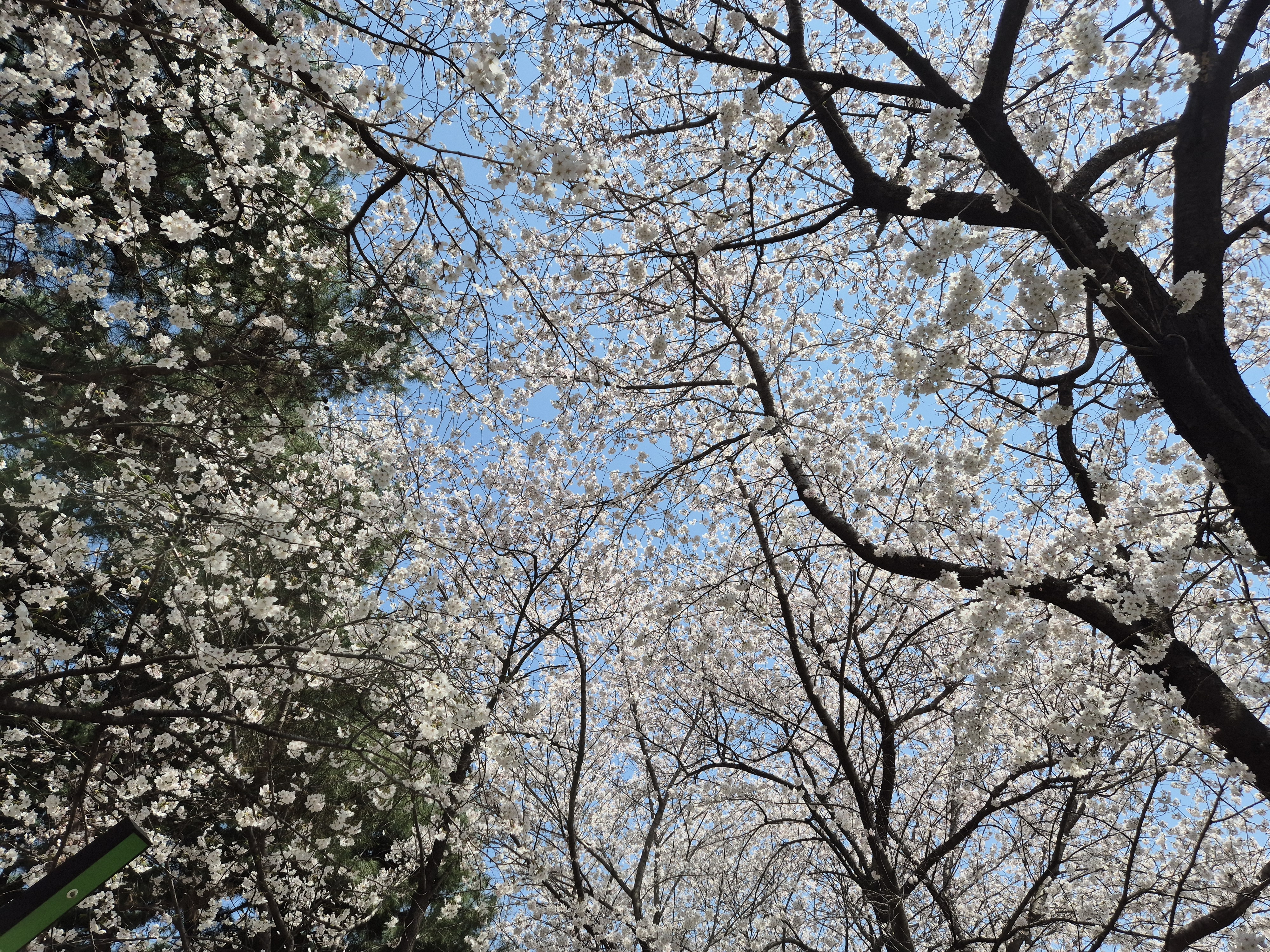 남녘은 벌써 벚꽃이 지고 파란잎사귀가 나온다는데,이곳은 이제 벚꽃이 만개가