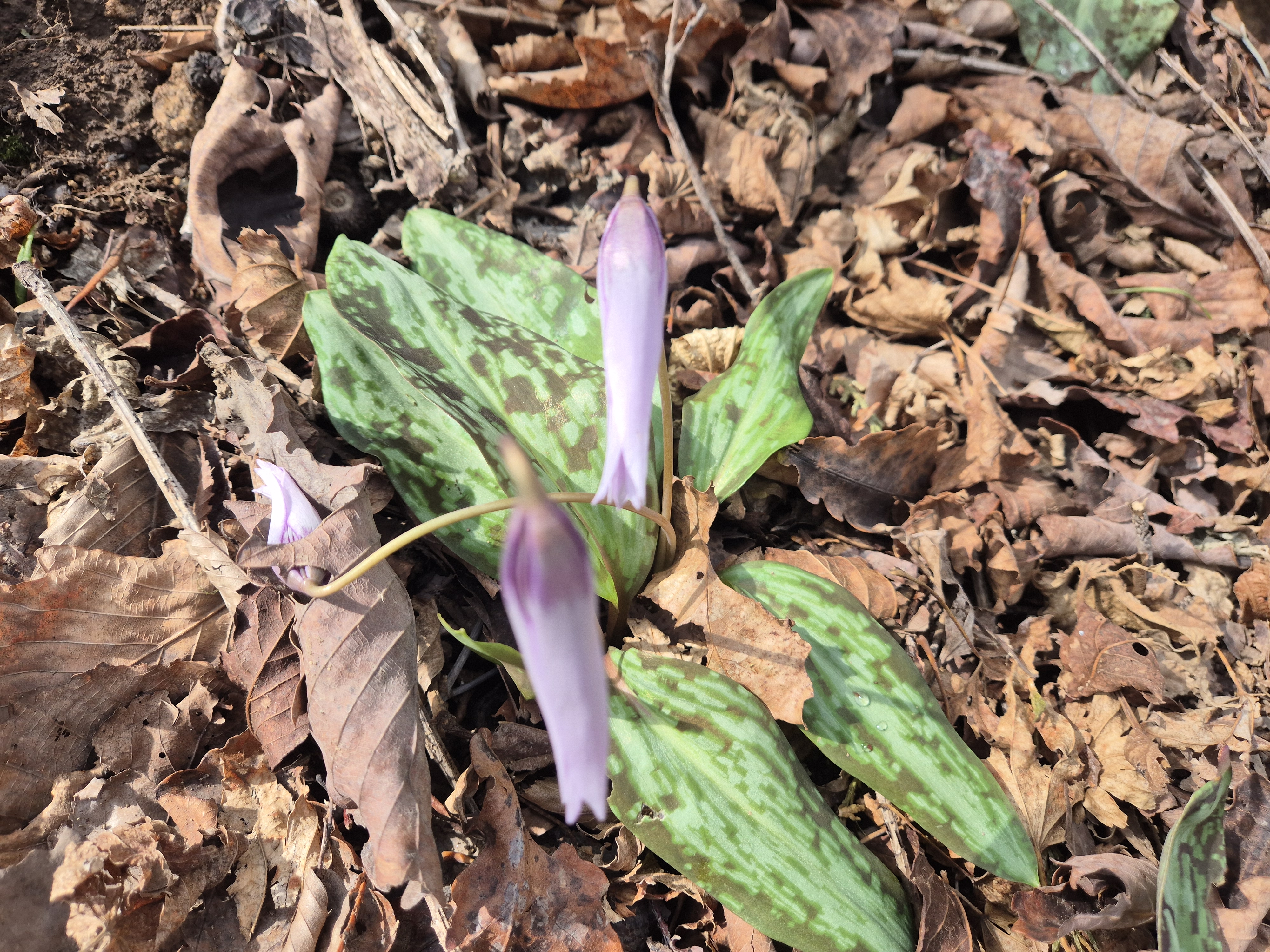 오랫만에 보는 얼레지와 붉게 핀 동백꽃이 주위와 어우러져 아름답다.