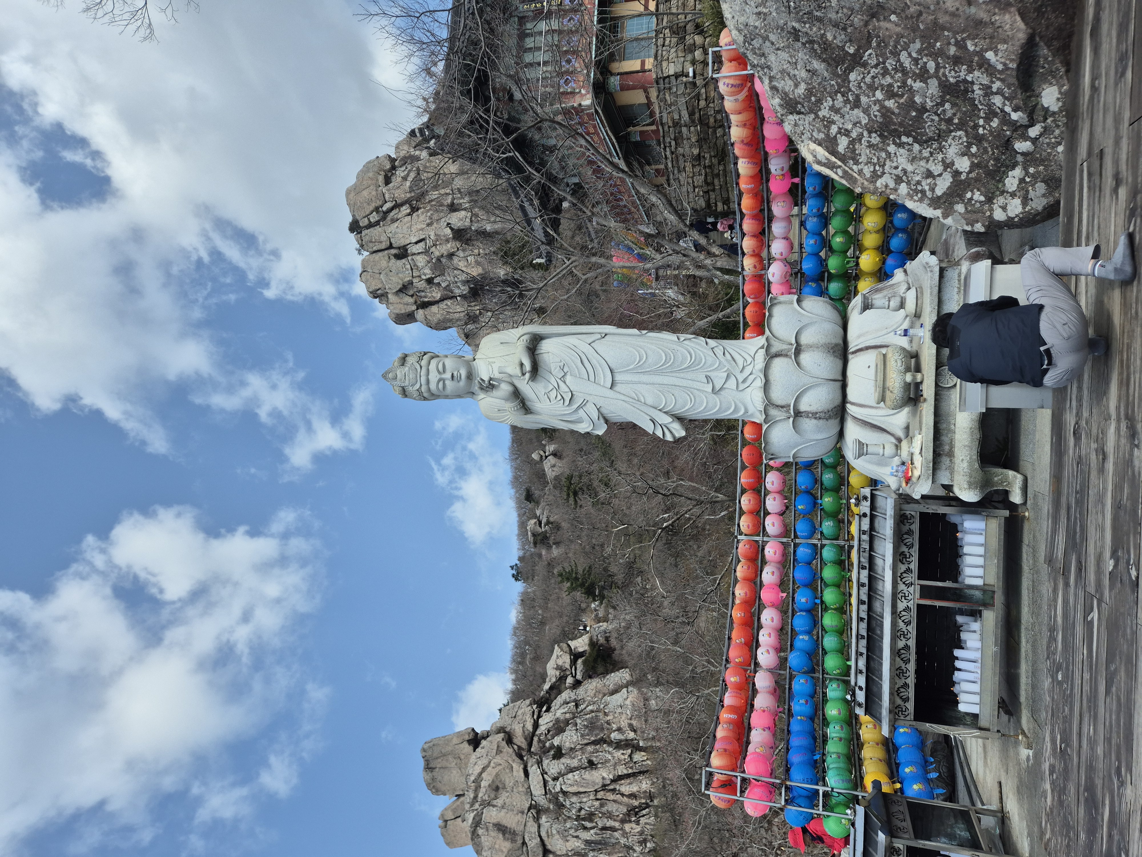 조금은 써늘한 기온에 다시 셔틀버스를 타고 보리암부근에 내려 걸어오른다.