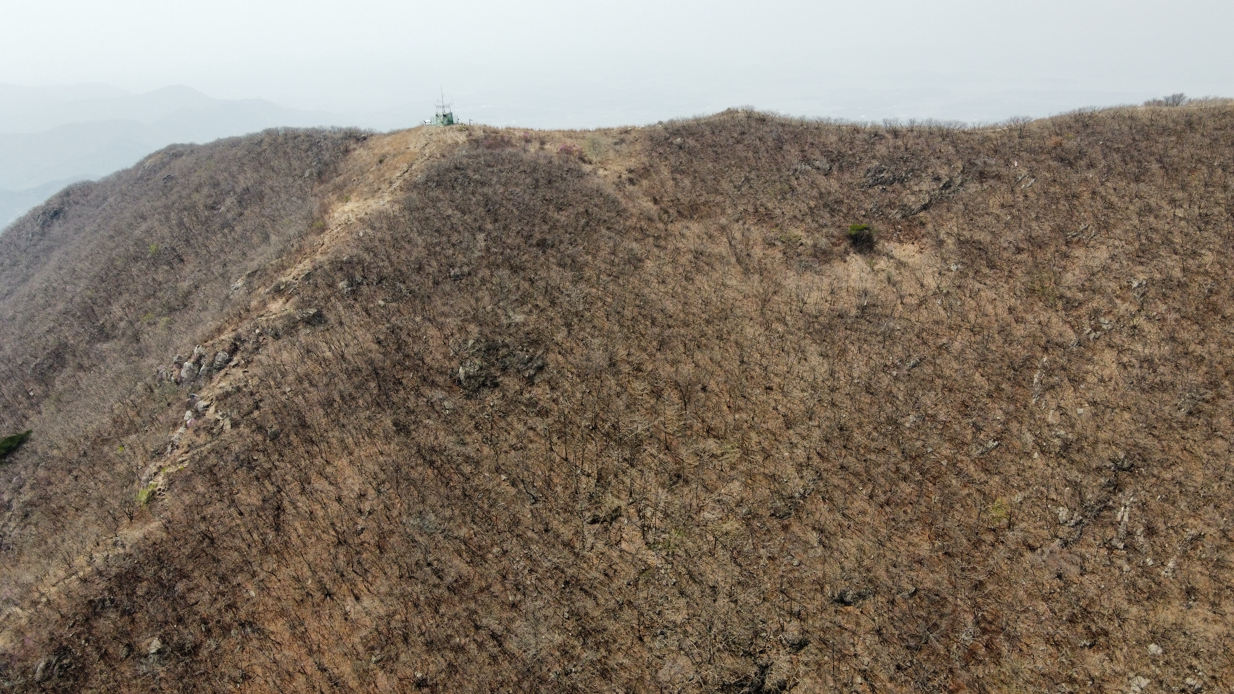 드론을 날려 몇장의 사진을 찍고는 다시 진행하여 휴양림방향으로 내린다.