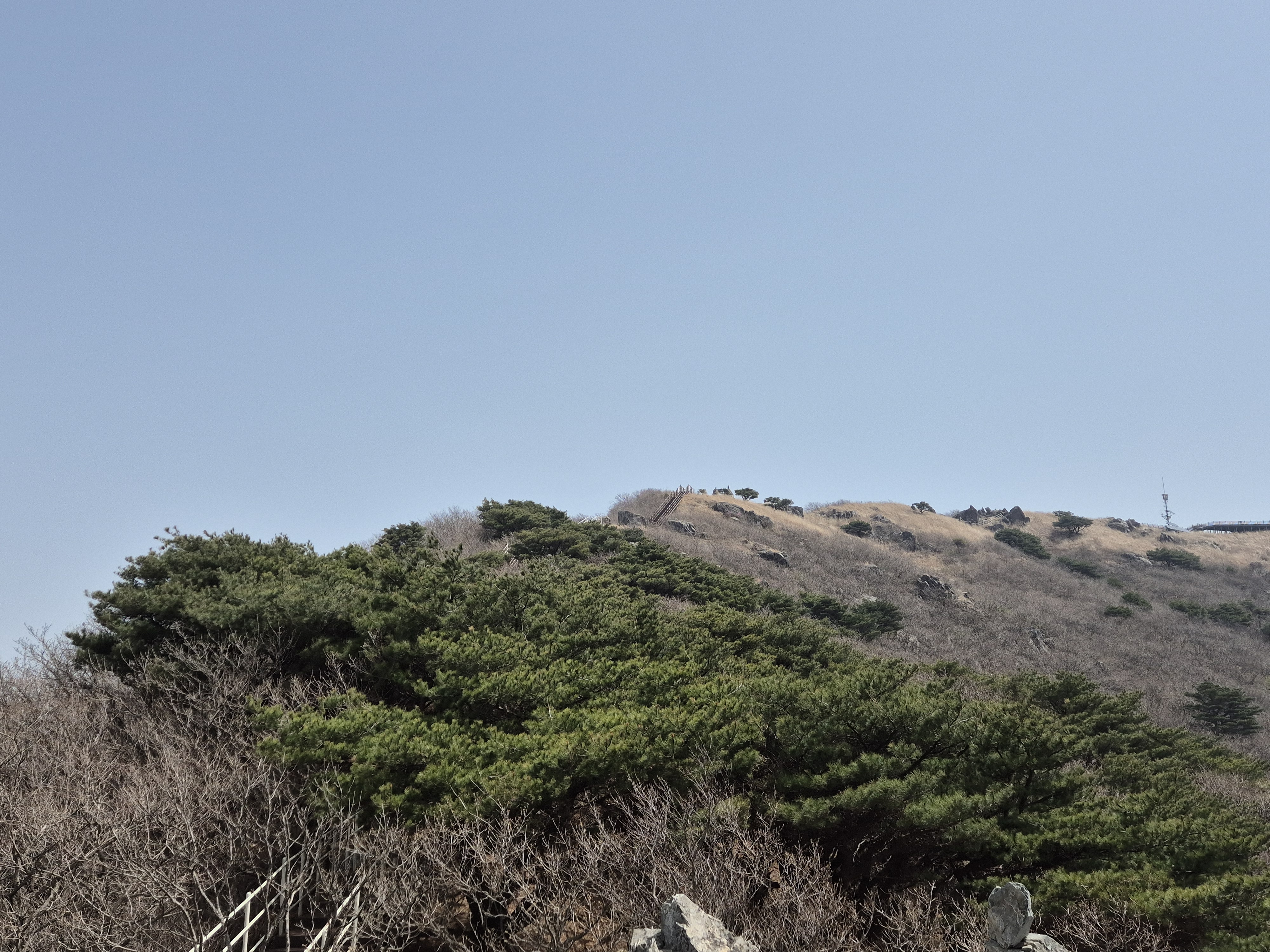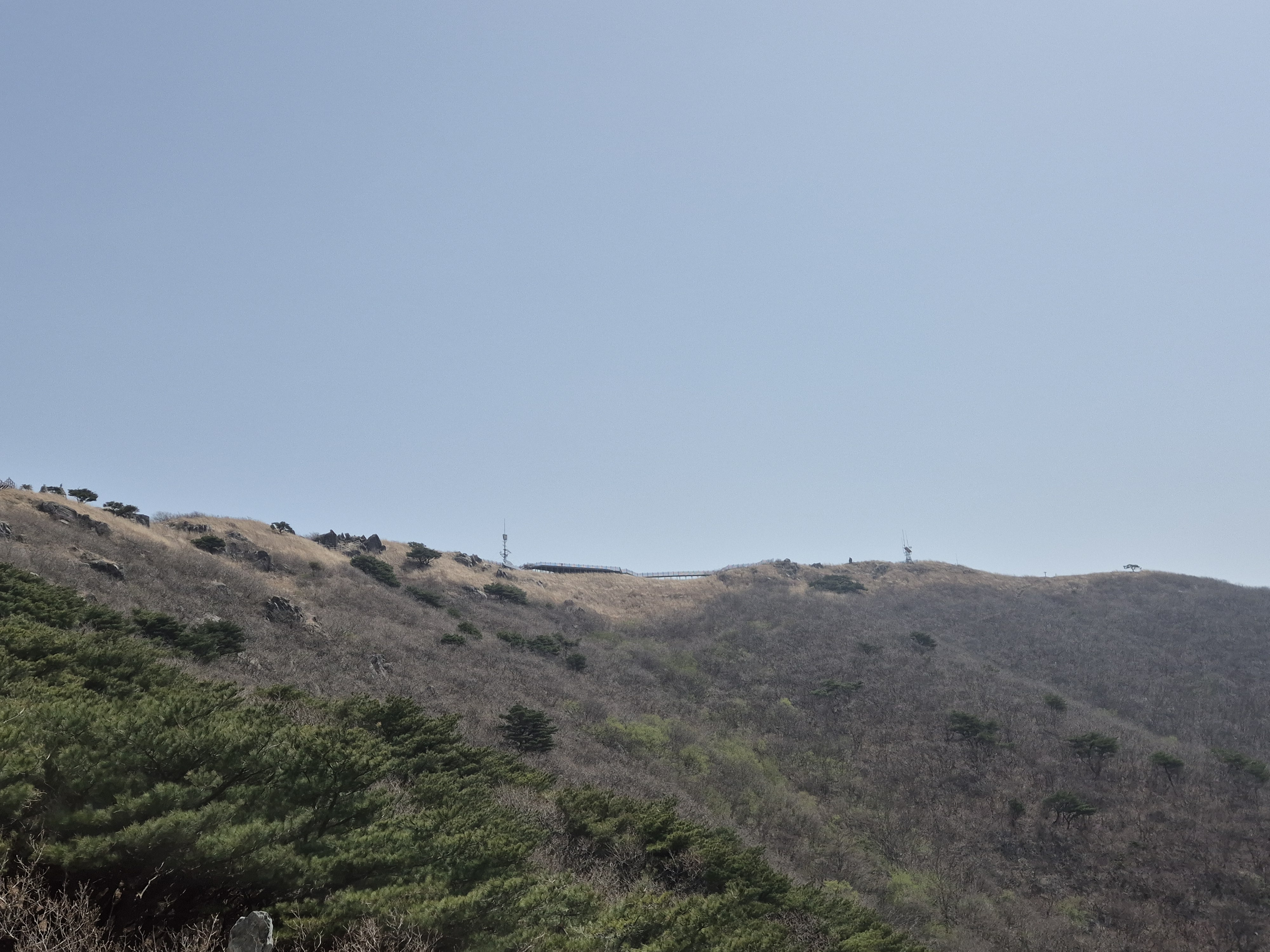 아래쪽은 푸르게 물들었는데 정상부는 아직 겨울의 모습이다.