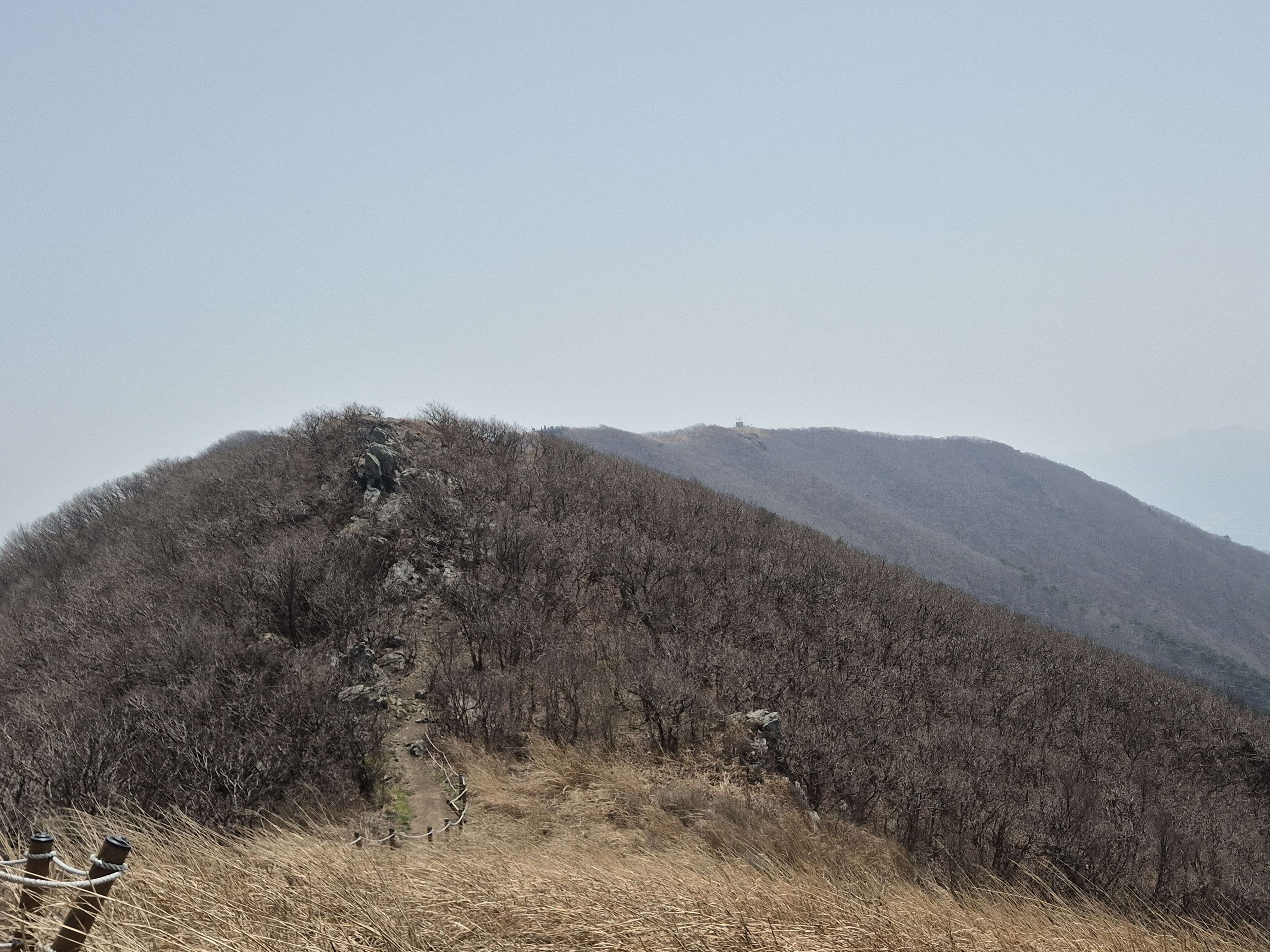 헐떡이며 땀을 수차레 닦아가며 오르다보니 어느새 능선이 나타난다.