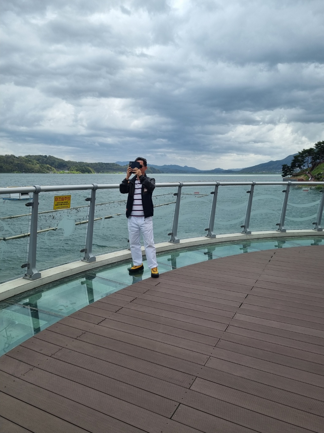 승용차팀을 반갑게 조우하고는 예당호수로 이동하는데 날이 흐려진다.