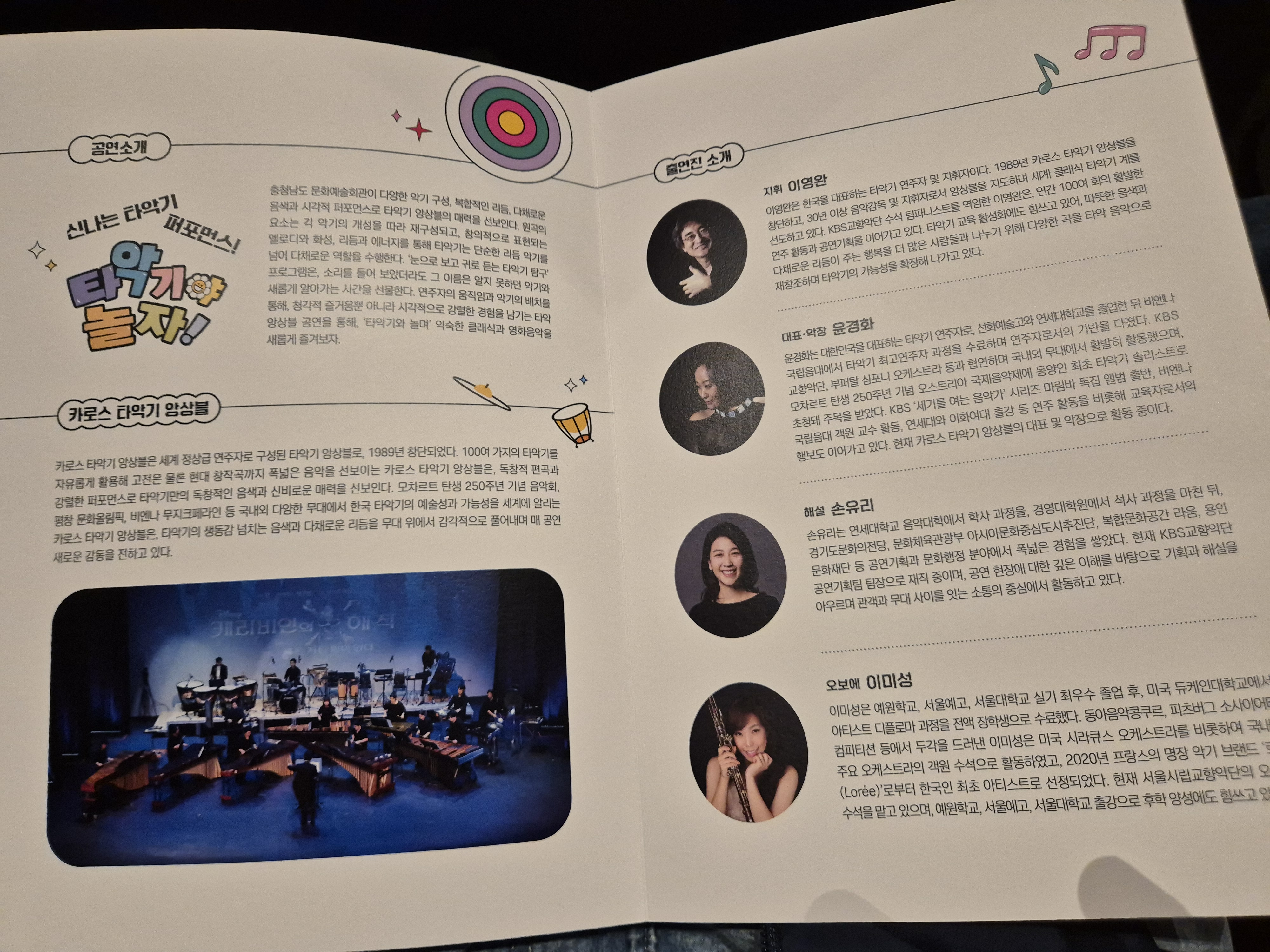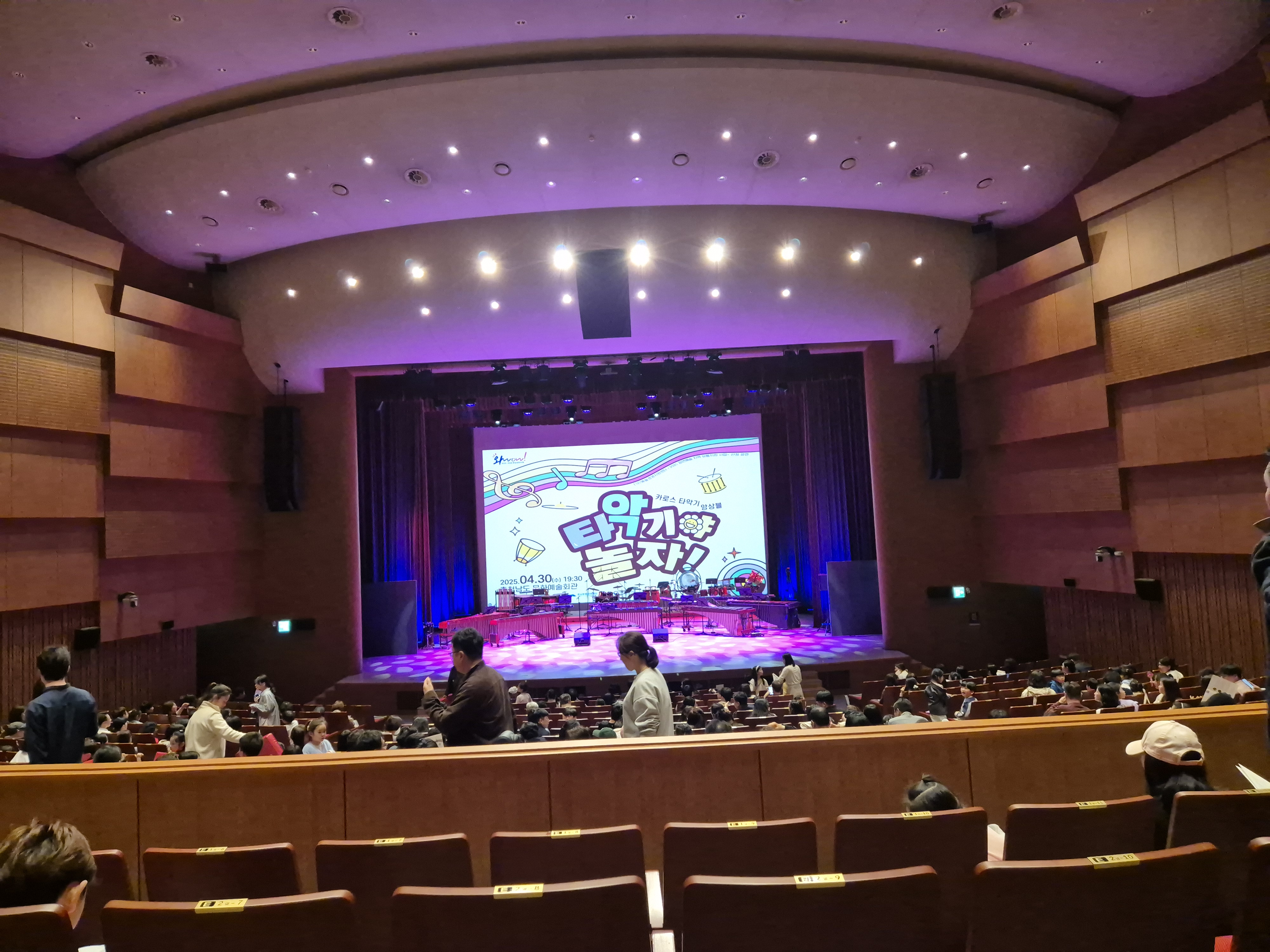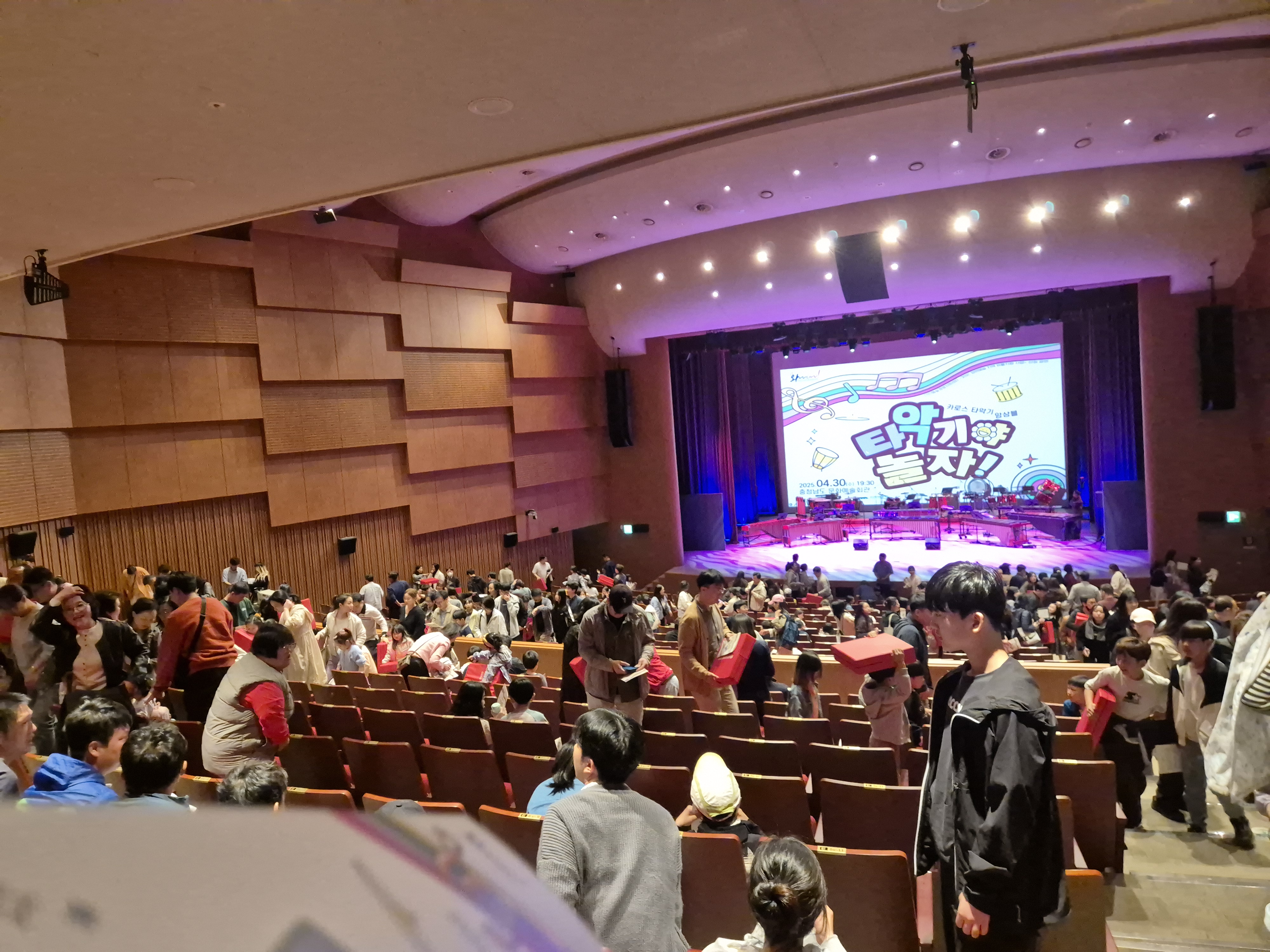 프로그램이 '타악기야 놀자'로 되어있어 어린학생들이 많이 입장해있다.