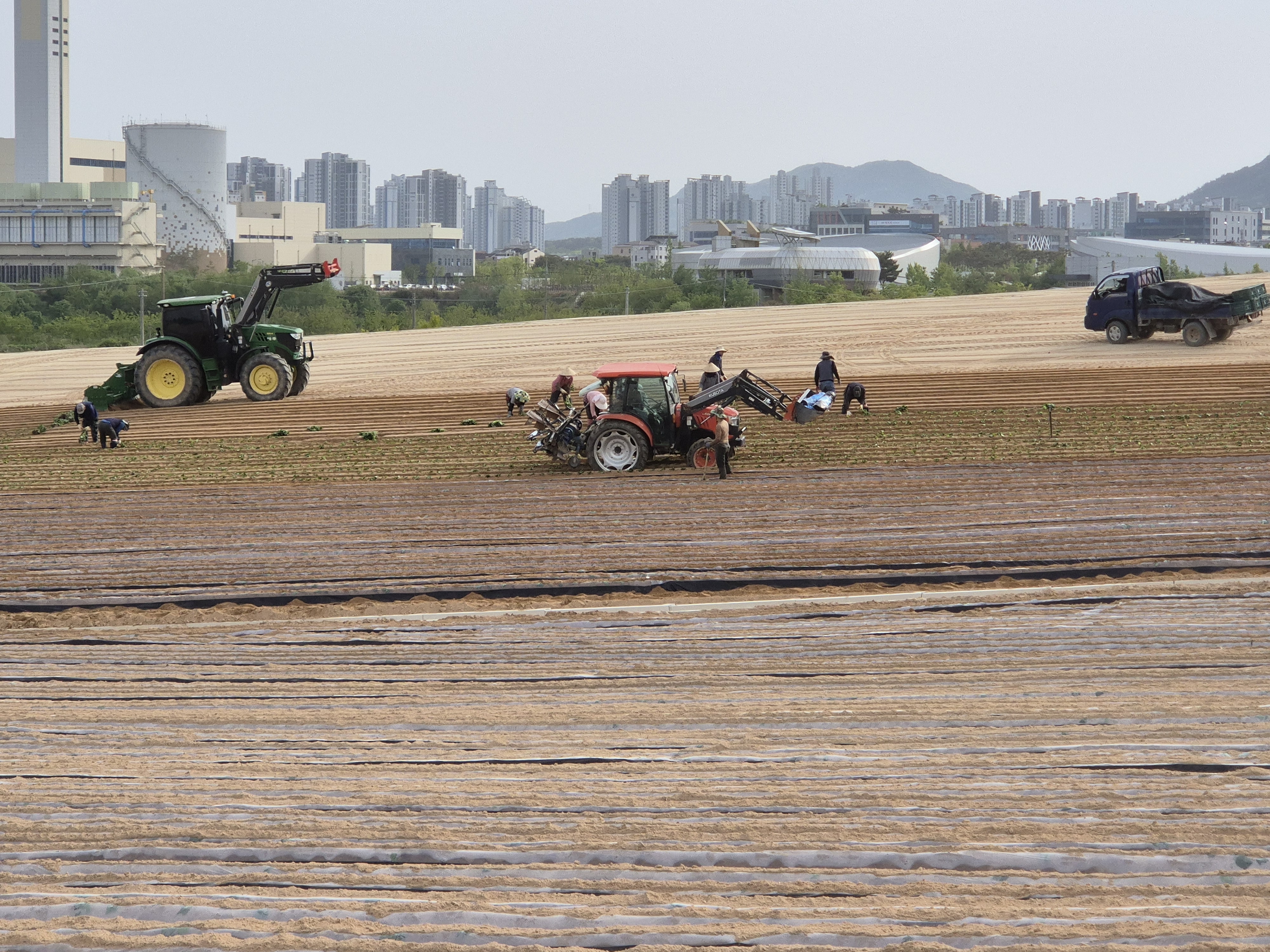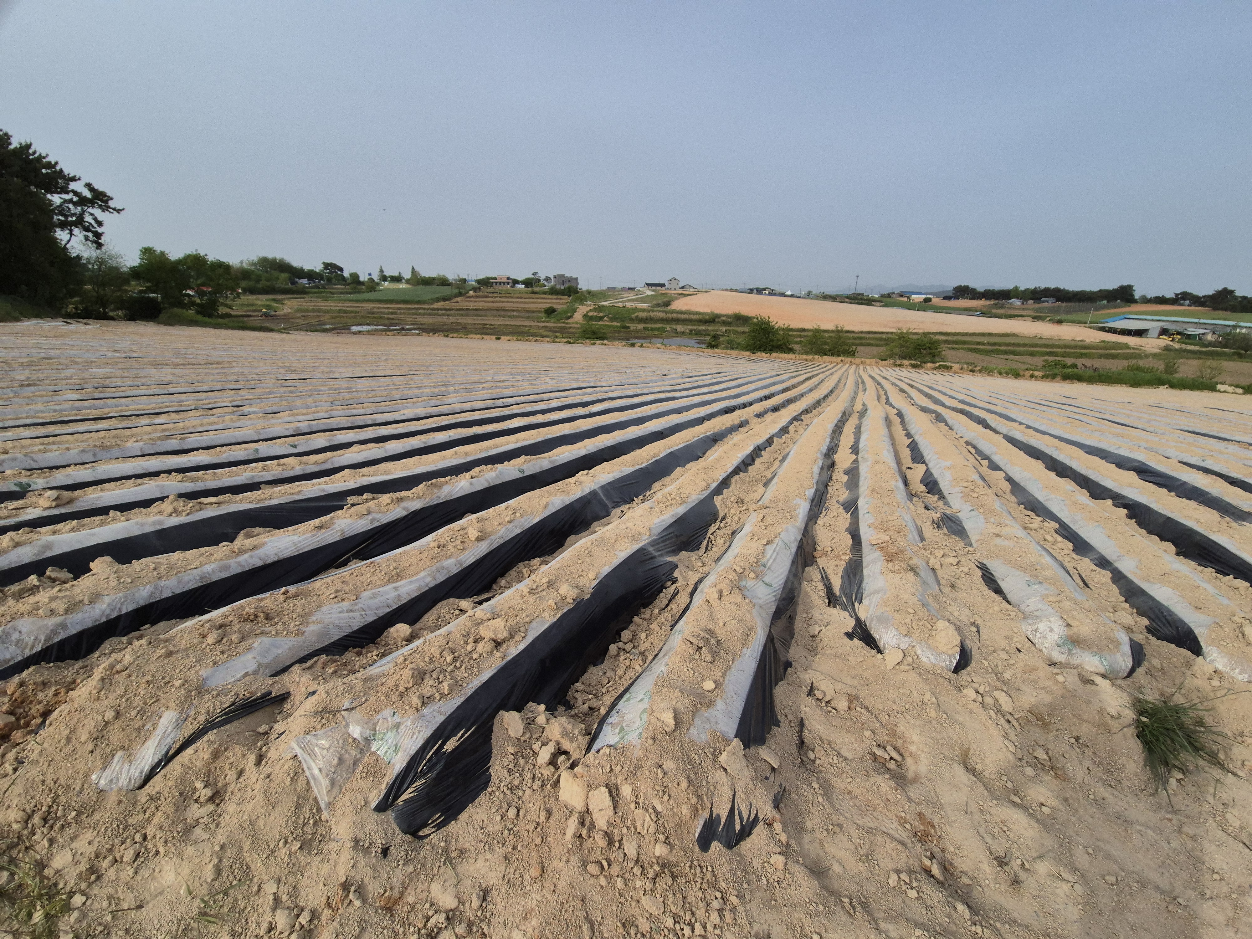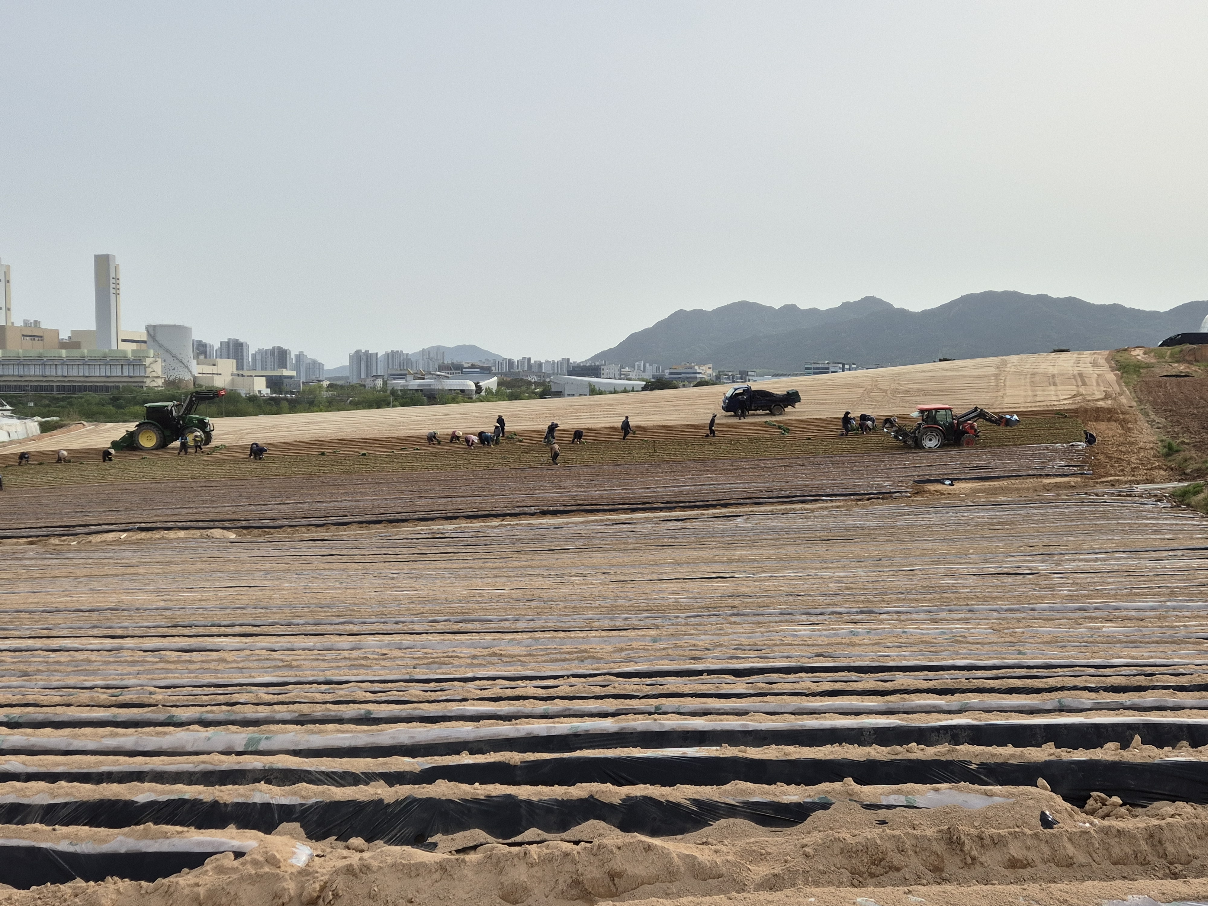 동원되어 무언가를 심고 비닐을 덮는 작업을 하고있다.