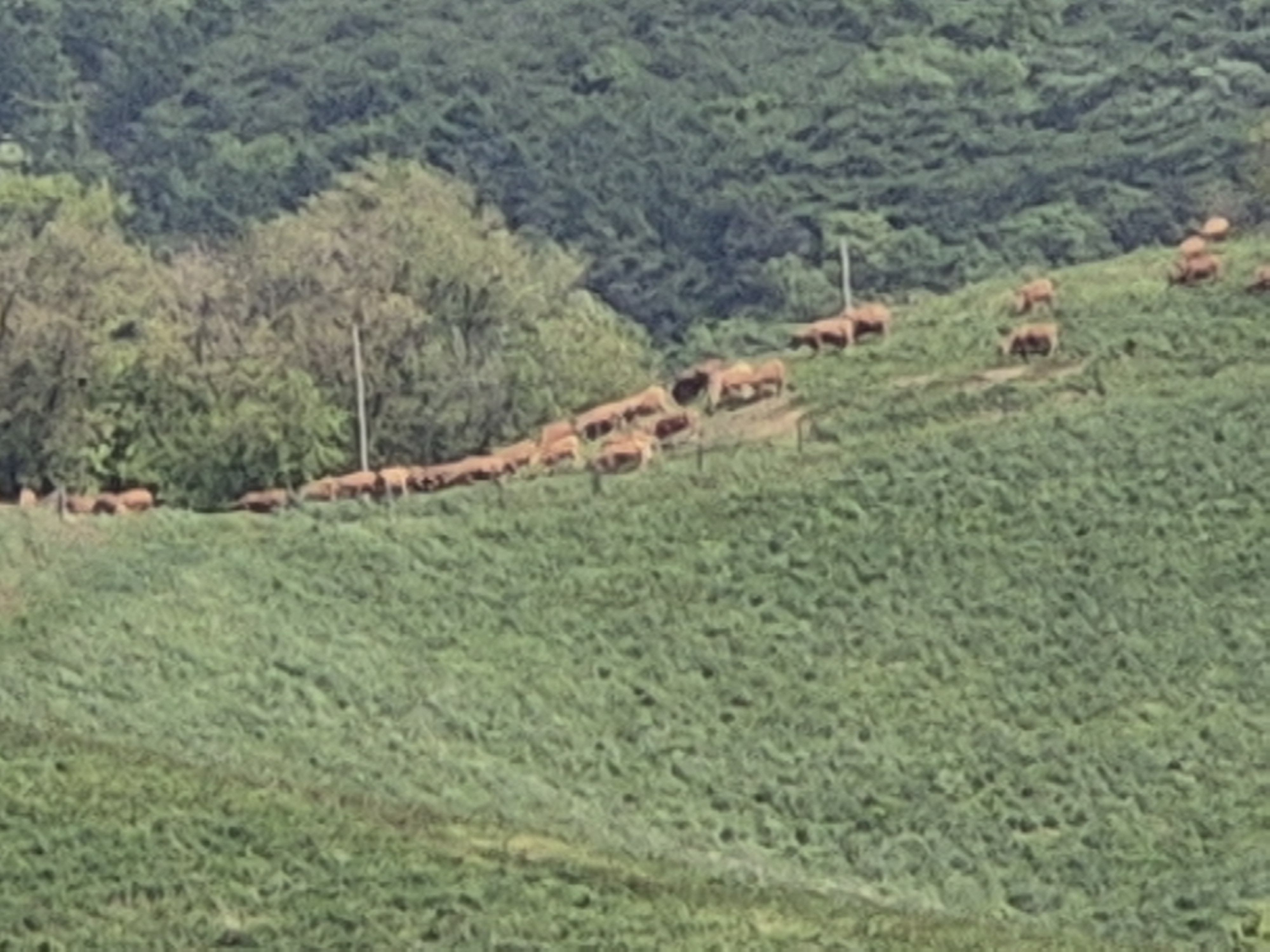 목장에 소들이 없어 의아하였는데 멀리 능선을 보니 소떼들이 줄지어 풀을 뜯고있다.