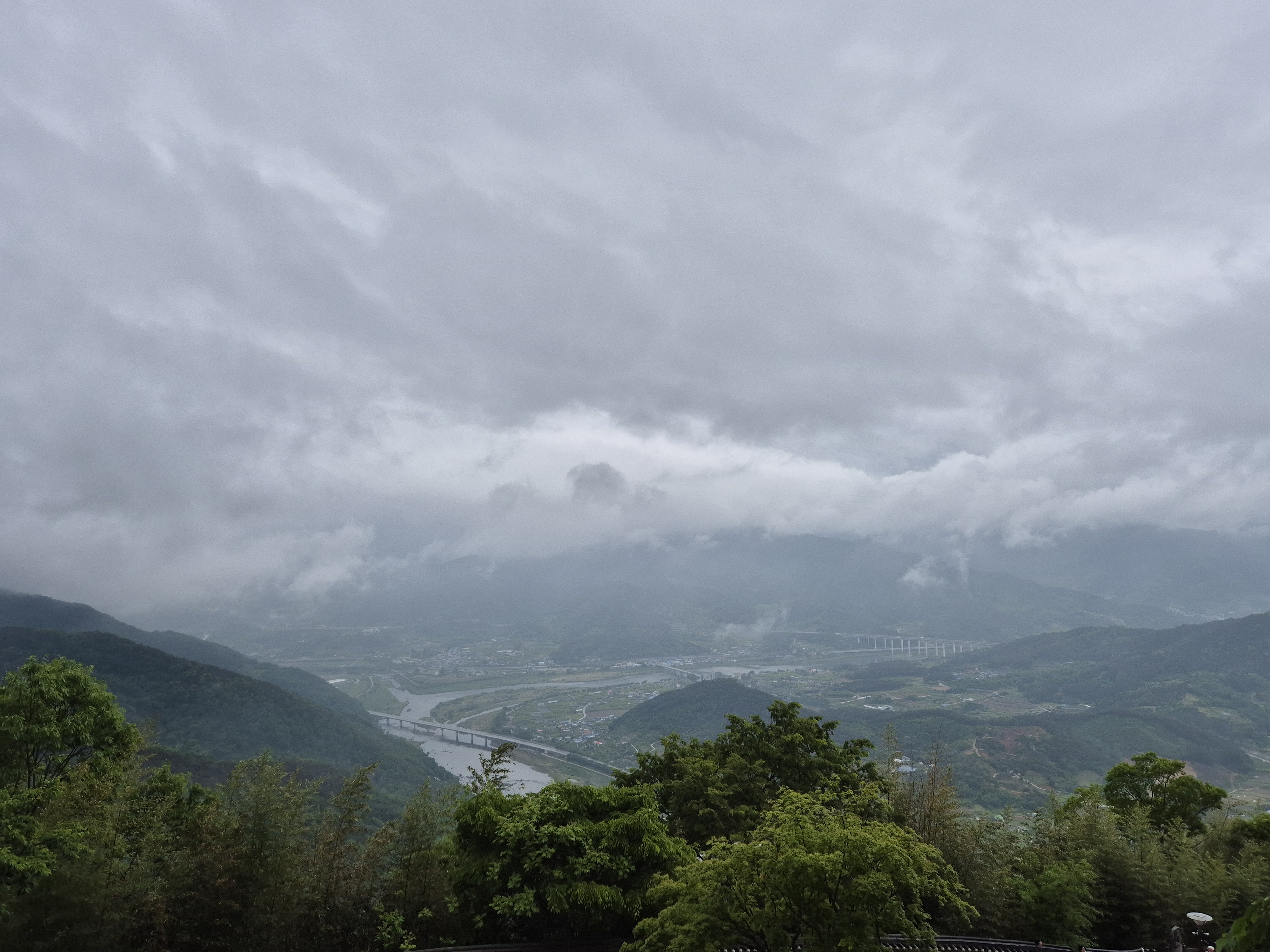 안개가 자욱하게 드리운 섬진강과 구례를 내려보는 경관이 장관이다.