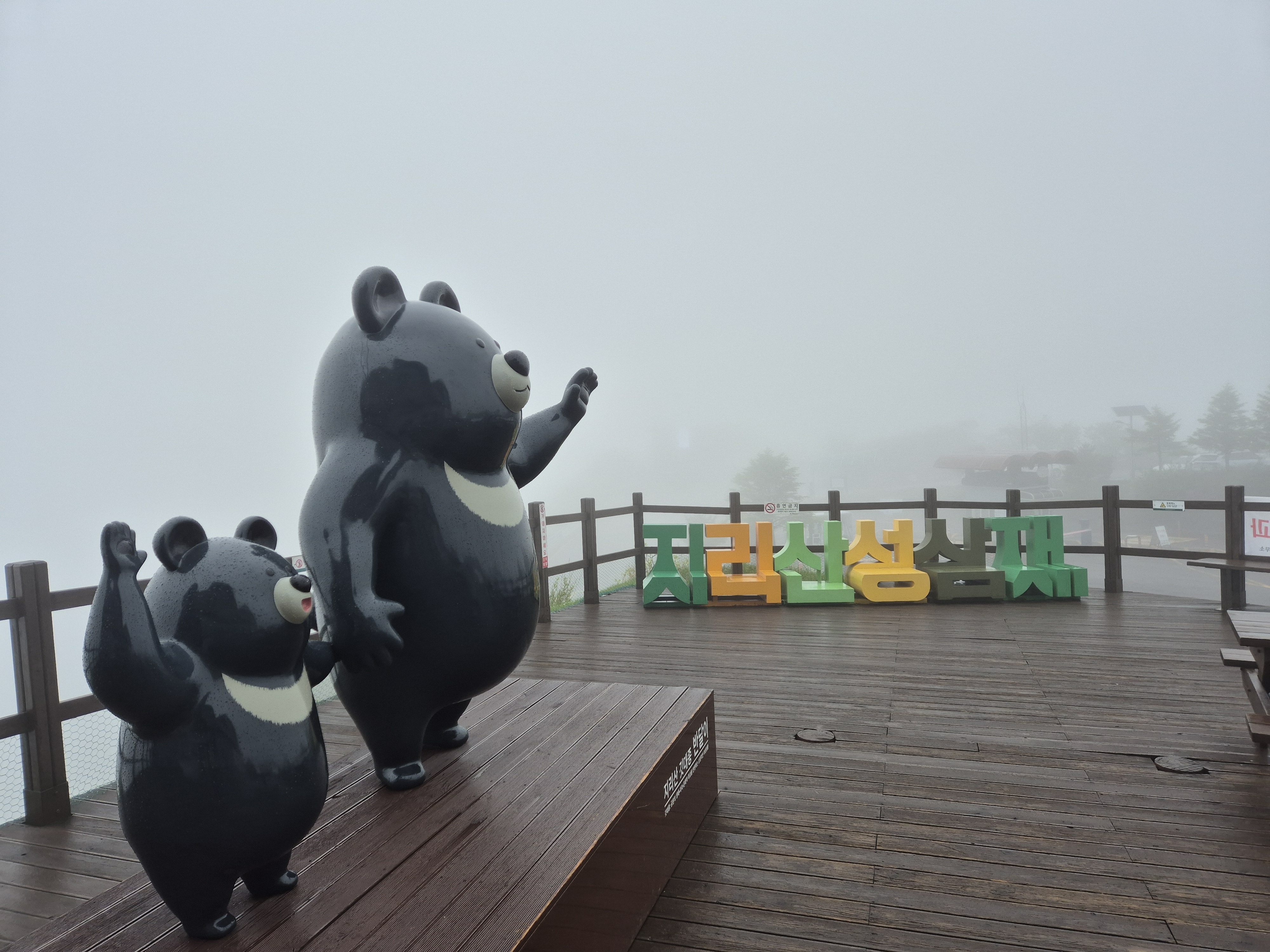 구름이 사라졌다 몰려오니 건너편의 지리능선은 보이지를 않는다.