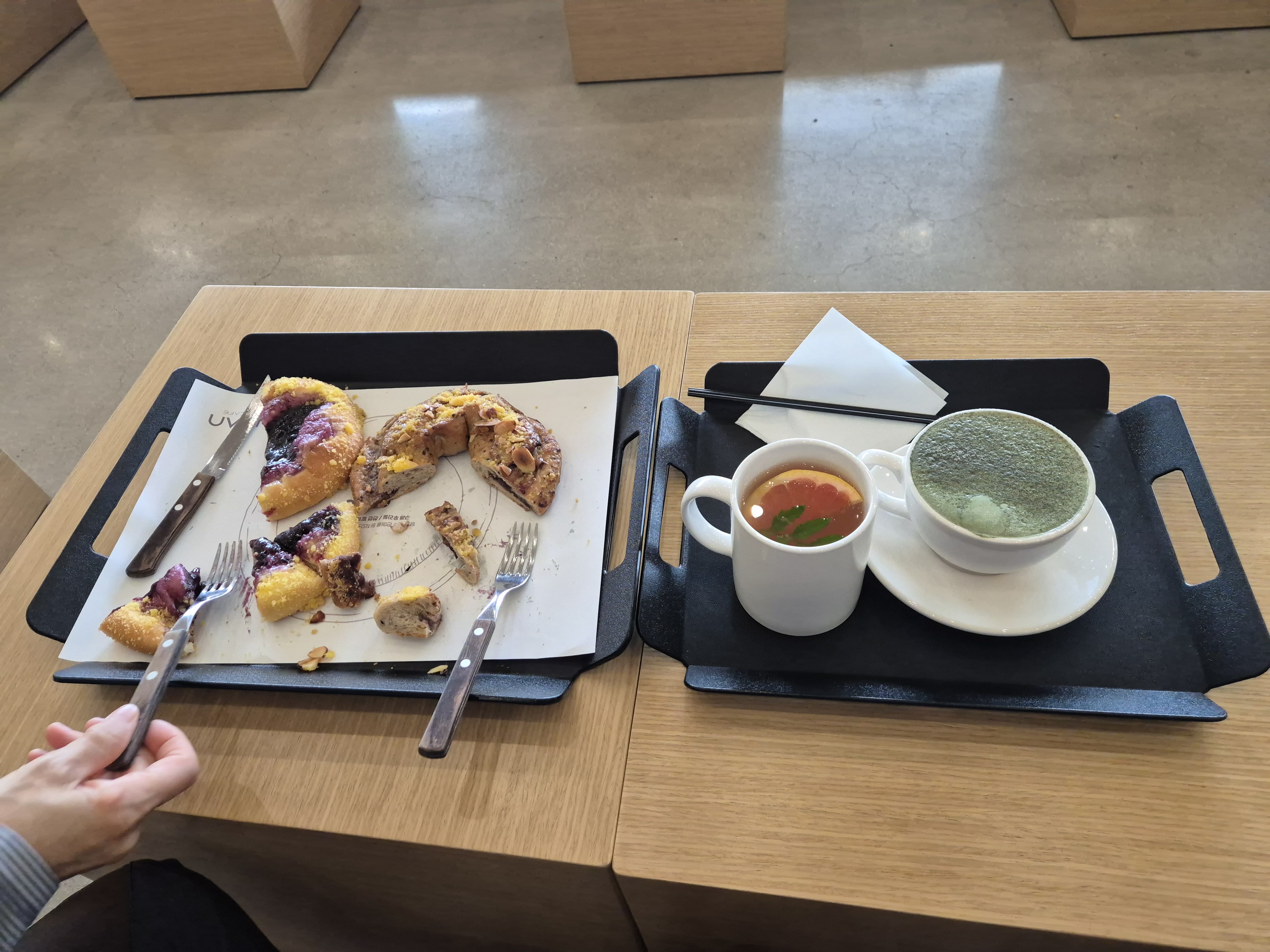 건너편에 대형 커피샵에 들려 빵과 커피한잔을 마시며 잠시 여유를 부려보는데,