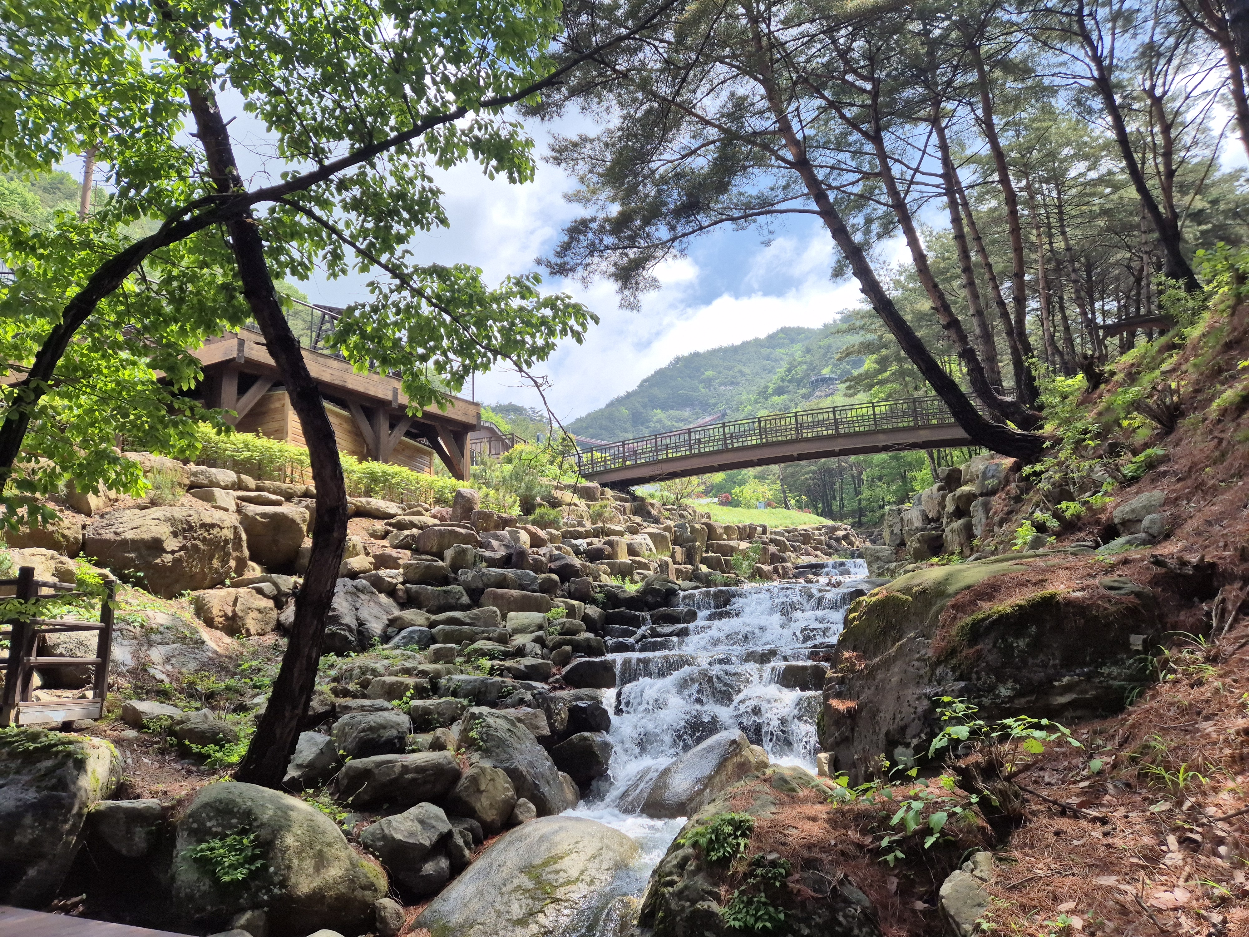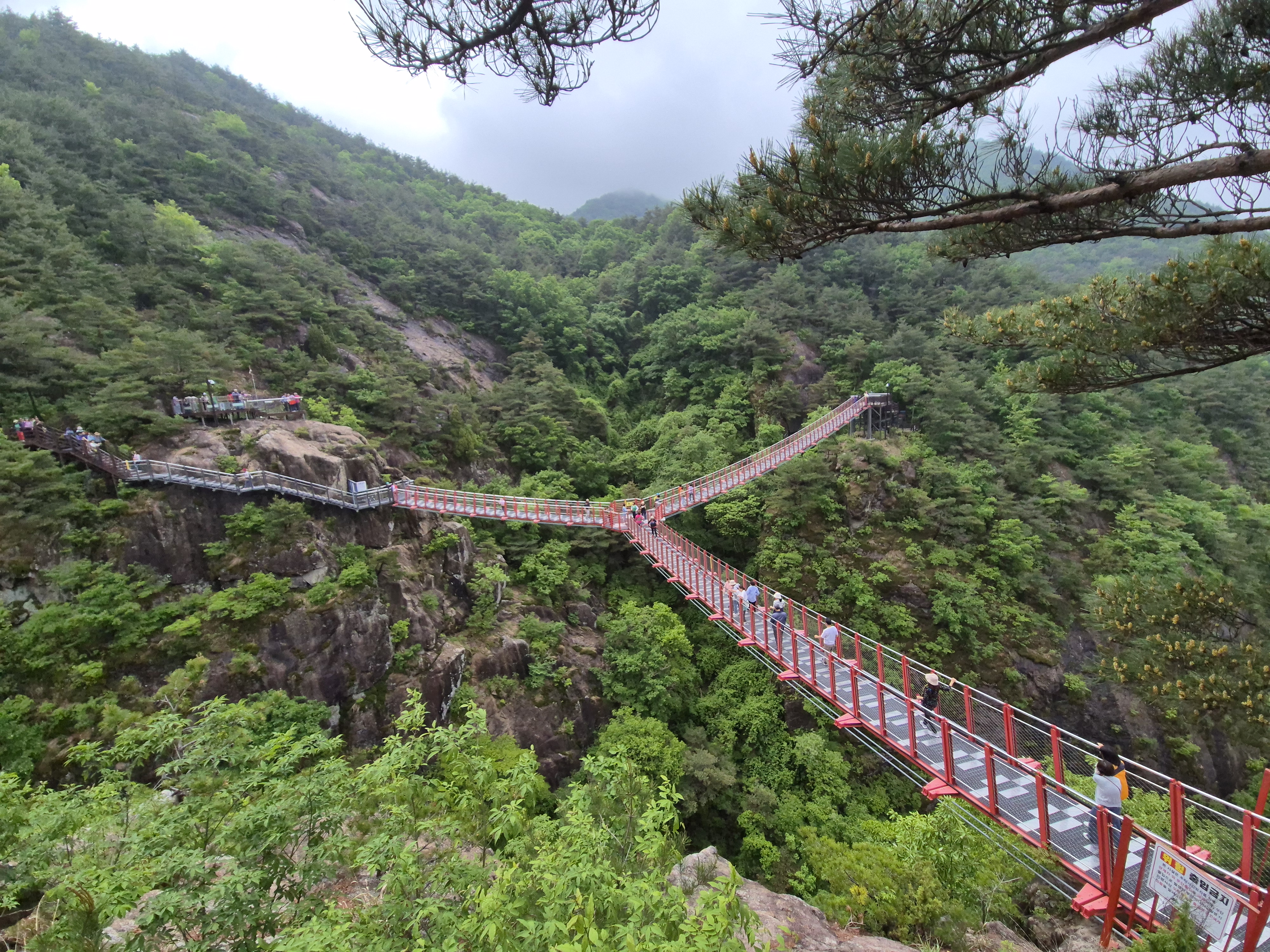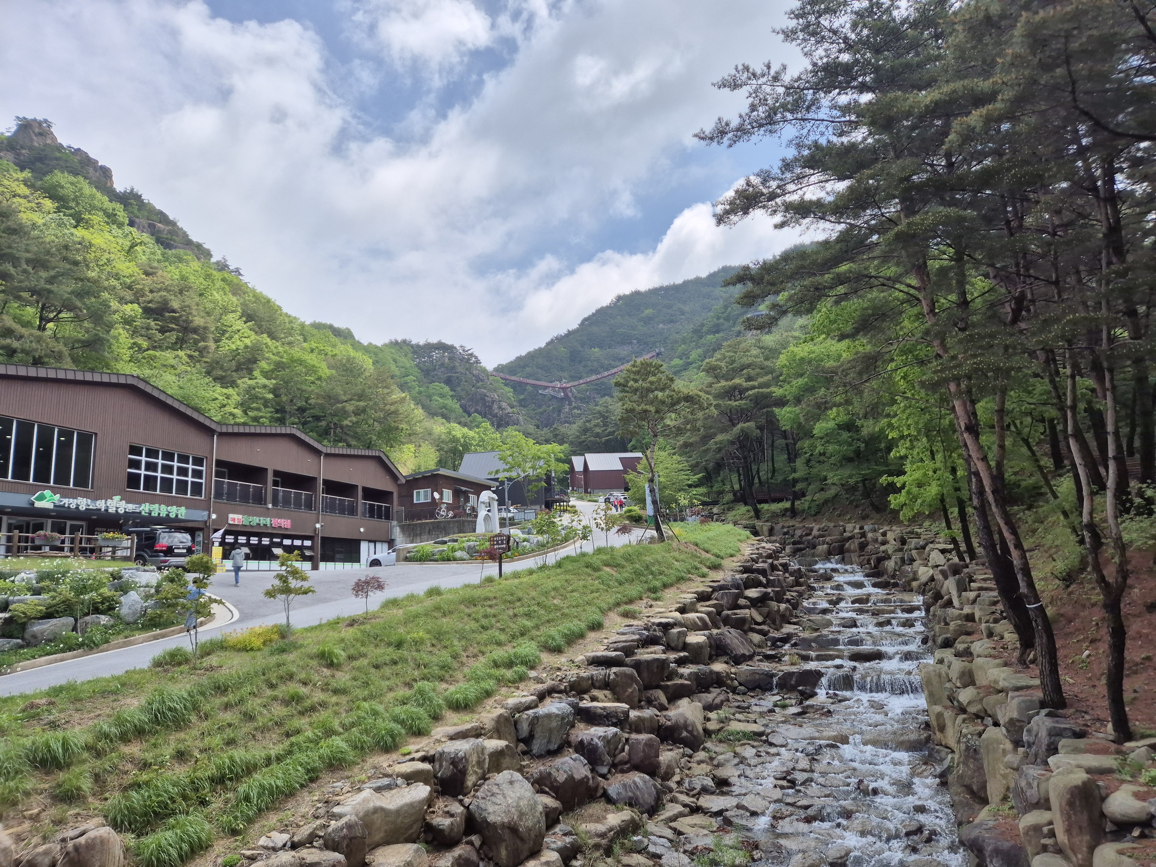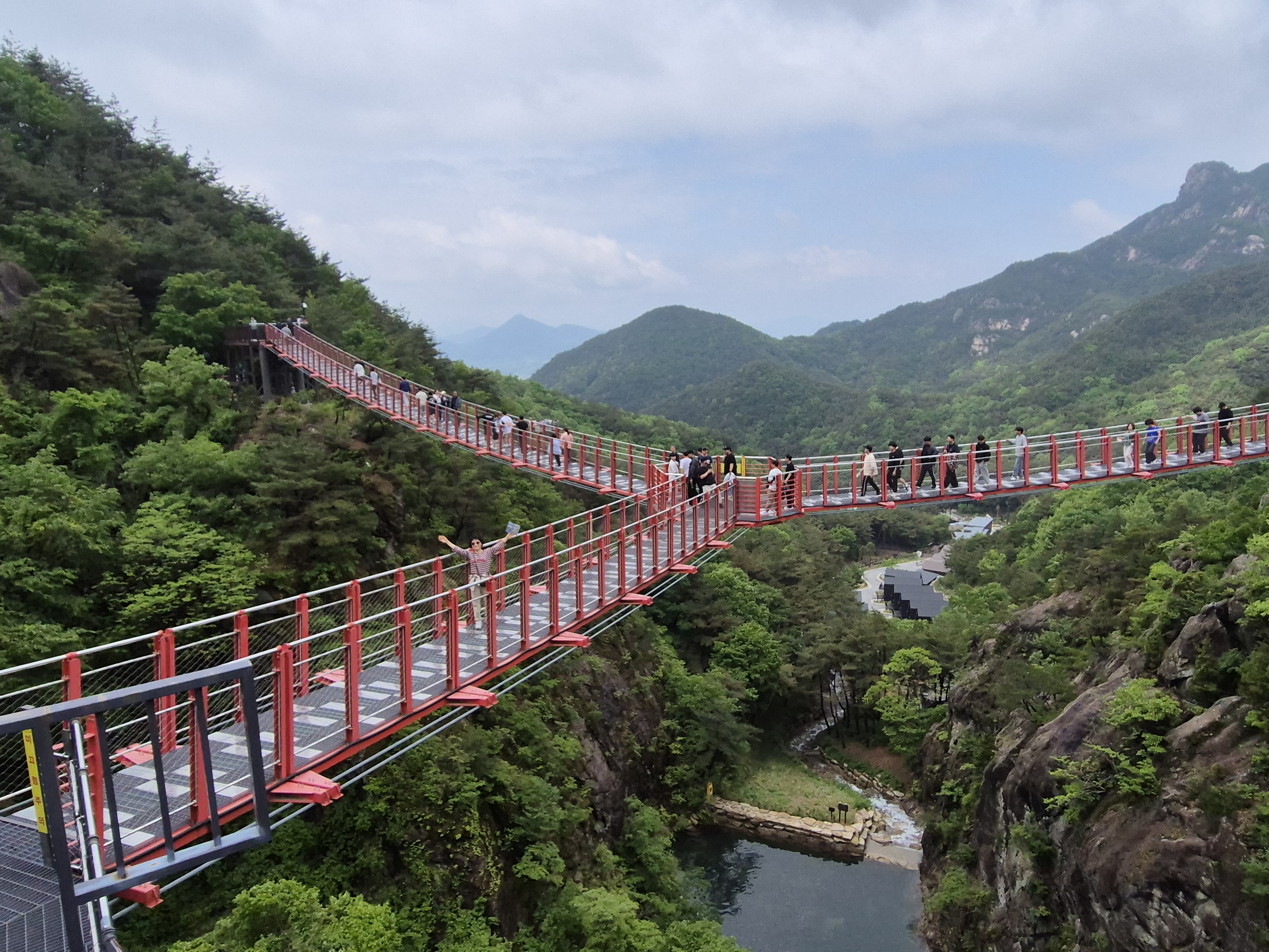 이곳 출렁다리도 멋진 산과 산에걸린 구름,그리고 계곡과 맑은 물에 어우러진 멋진 곳이다.