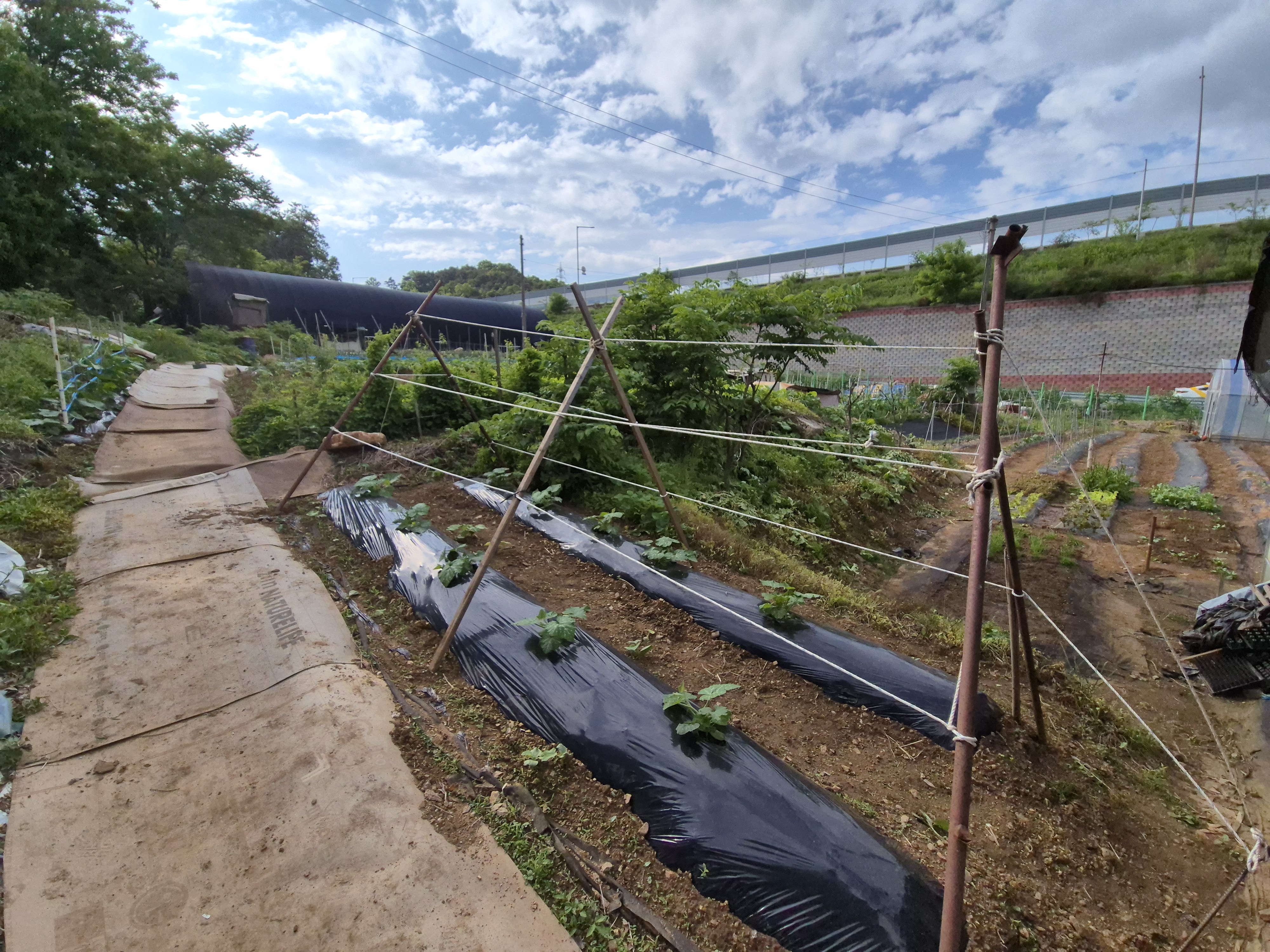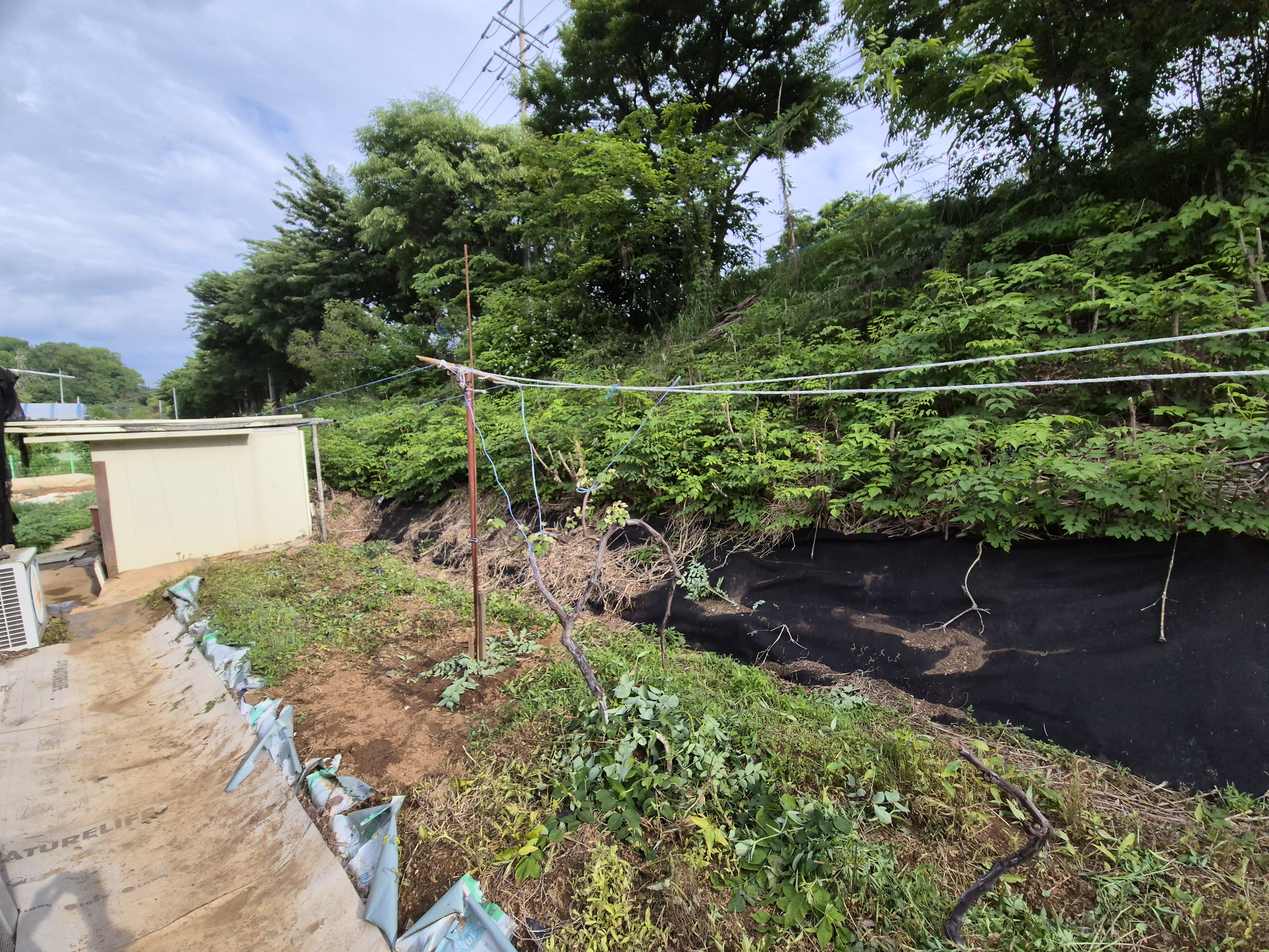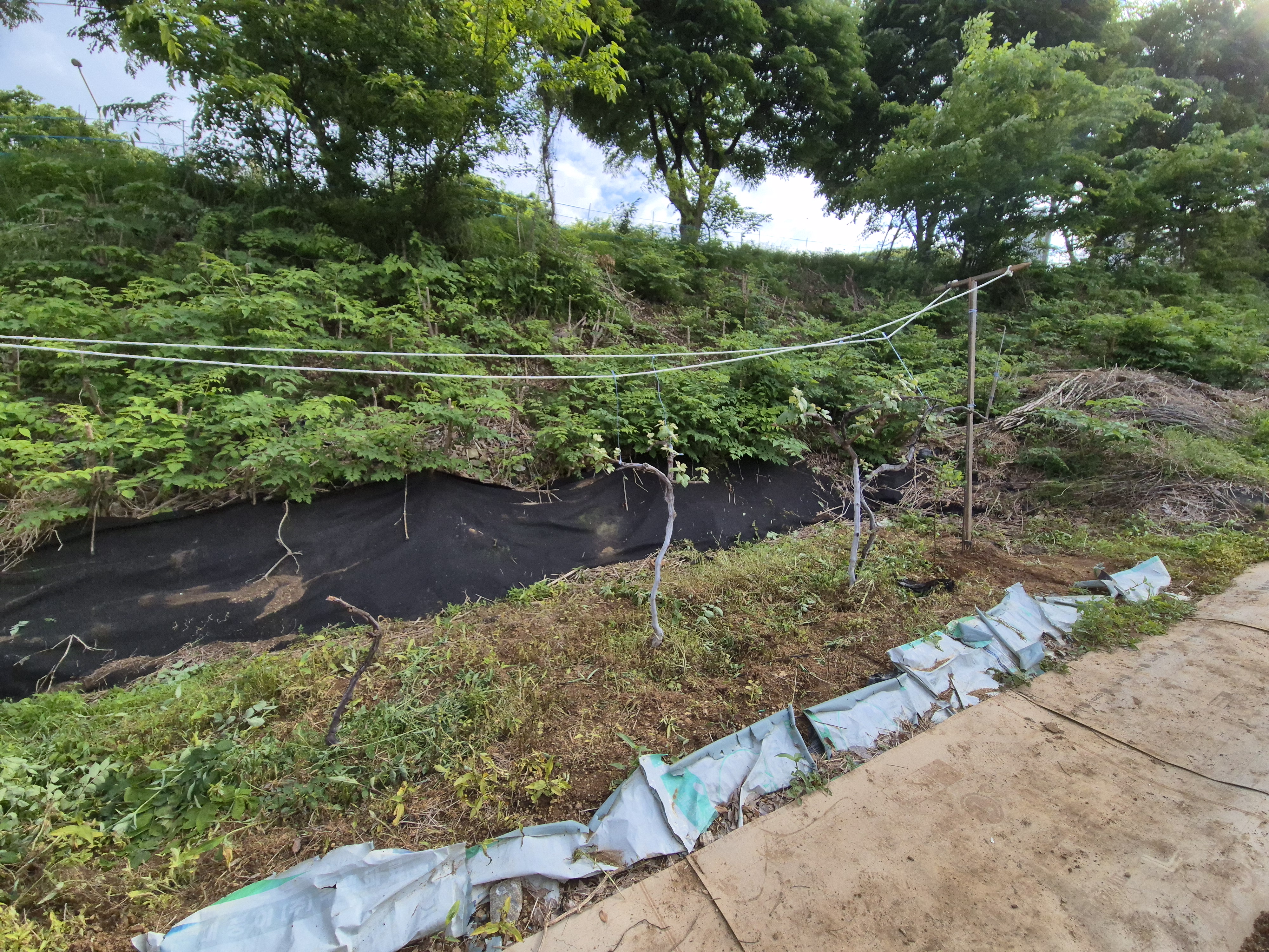 처남이 사용하는 기구라고 철거해버리니 할 수없이 다른 장대를 이용하여 지지대를 세운다.